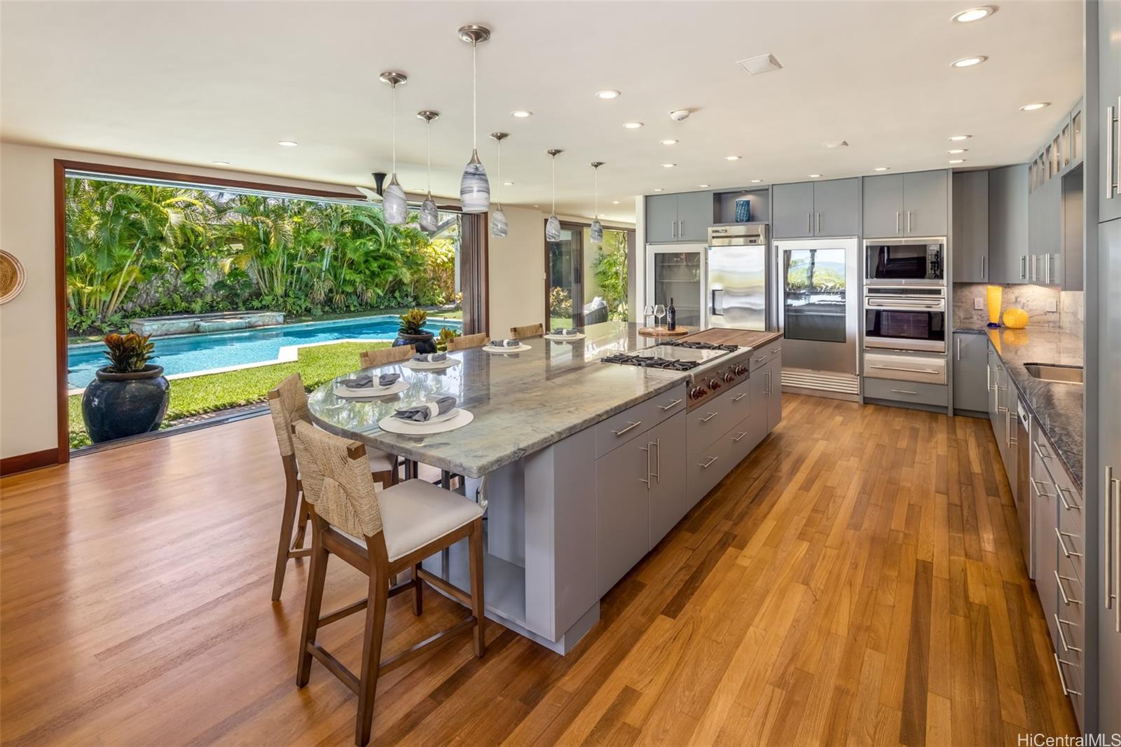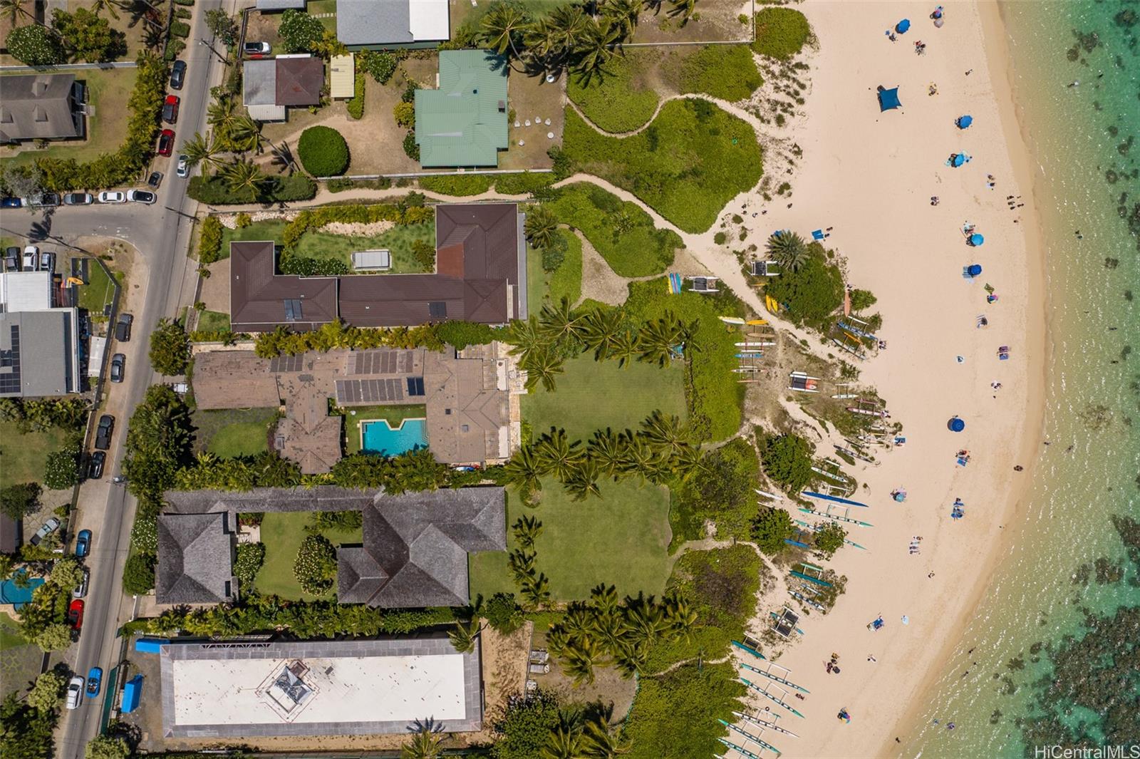 プウホヌア - 世界的に有名なラニカイビーチの中でも屈指のオーシャンフロント、砂浜のサンクチュアリ。誰もが羨む半エーカーの広大な敷地に、広々とした海辺の芝生が、静寂と静寂、そして究極のプライバシーを保証します。贅沢なアイランドライフを体現したこの邸宅には、プライベートオーシャンビューのラナイを備えた広々とした主寝室があります。全室にバスルーム付き。美しく整えられたオープンキッチンは、家族や友人が集う中心的な空間。最高級の家電製品と設備が揃っています。ビーチでリラックスした一日を過ごした後は、屋外ダイニングでくつろいだり、中庭のプールで日光浴を楽しんだり。この由緒ある邸宅は、まさにワンダフルなひとときへの最高の逃避行であり、ラニカイならではの特別な精神とコミュニティ意識を体感できる絶好の機会です。穏やかで透き通るようなターコイズブルーの海、きらめく白い砂浜、そしてすぐそばにはプレミアゴルフコースがあります。