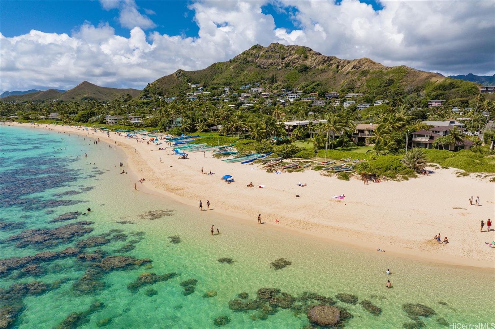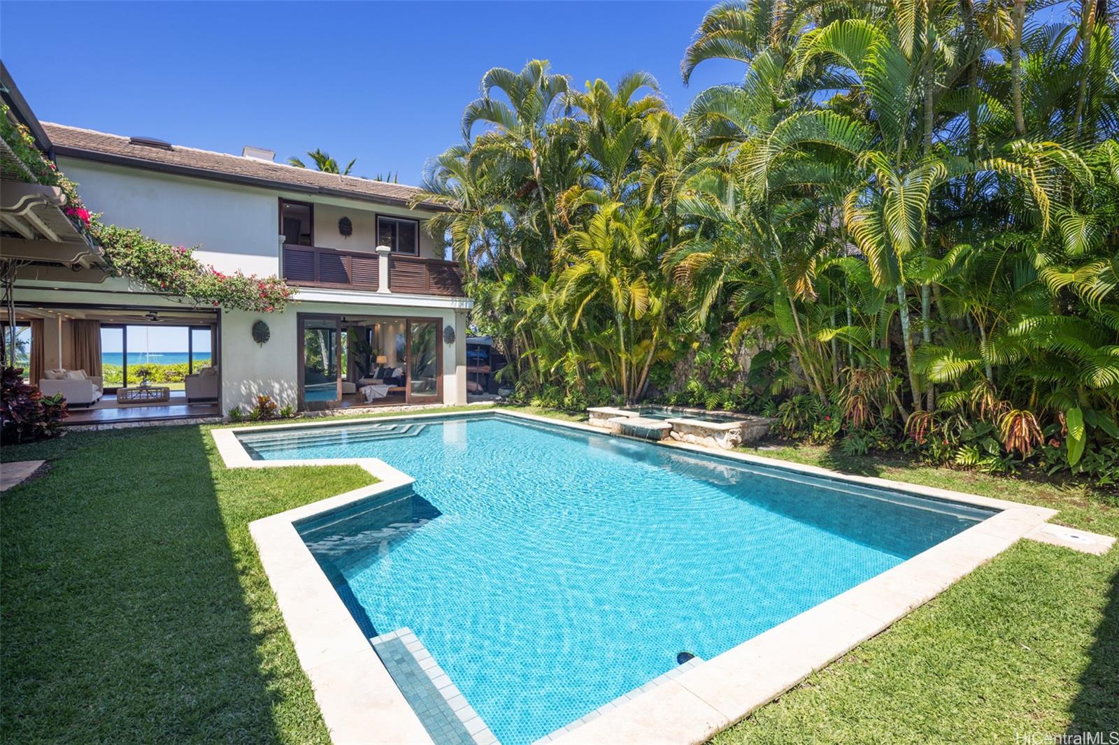 PUUHONUA - An oceanfront sandy beach sanctuary on the most desired spot of world renowned Lanikai Beach. The expansive oceanside lawn ensures peace, tranquility, and the utmost privacy on the envious half acre of land. The home is a celebration of luxurious island living, and features an ultra-spacious primary suite with its own private ocean view lanai. All bedrooms are ensuite. The beautifully appointed open kitchen is the central place for family and friends to gather, and features only the best in appliances and appointments. Outdoor dining after a relaxing day at the beach, or sunning by the courtyard pool – This legacy property is a Great Escape to Wonderful, and an opportunity to embrace the very special spirit and sense of community that is Lanikai. Calm, translucent, turquoise waters, glistening white sand beach, and its own premier golf course just steps away.