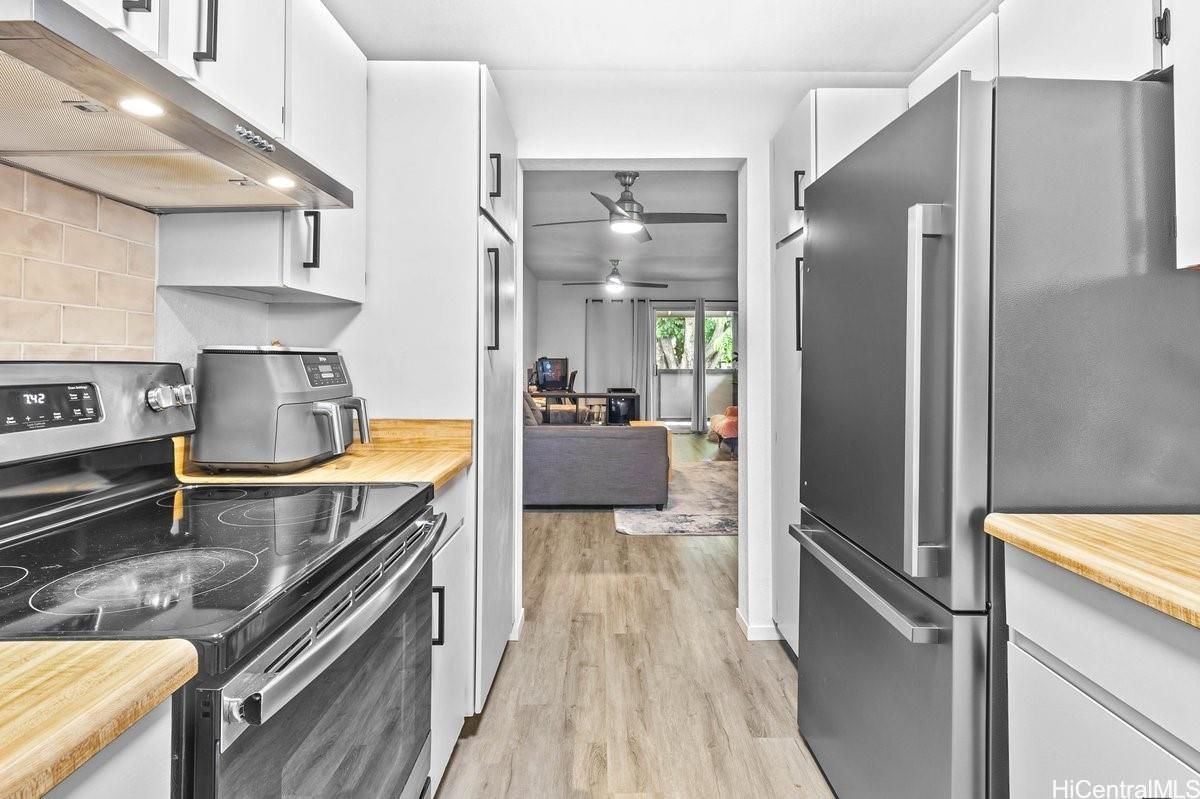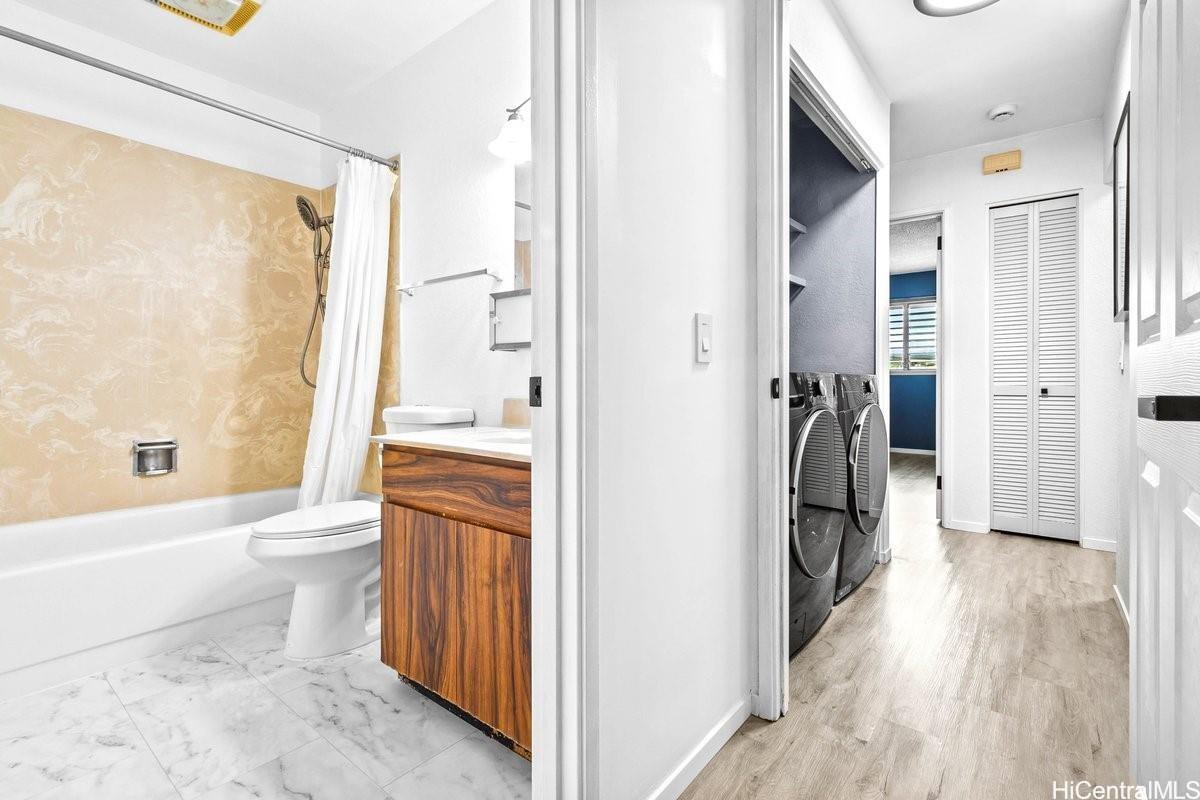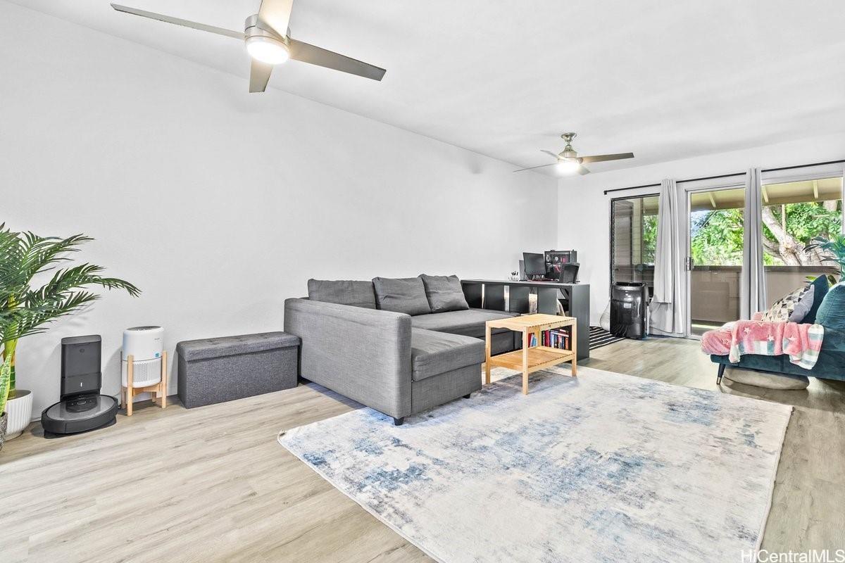 E komo mai! This 2-bedroom, 2-bath home is move in ready, making this space truly feel like home. 2 ASSIGNED PARKING STALLS for this unit. Enjoy newer flooring, updated appliances (washer & dryer included) and a second floor unit perfectly positioned in the front of the complex allowing you to pull right up to your parking stall and enter the home. Conveniently located in central Pearl City, close to shopping, school, and freeway access, and short walk-in distance to the Skyline rail system. Easy access to the freeway is also a plus! VA assumable loan is available.