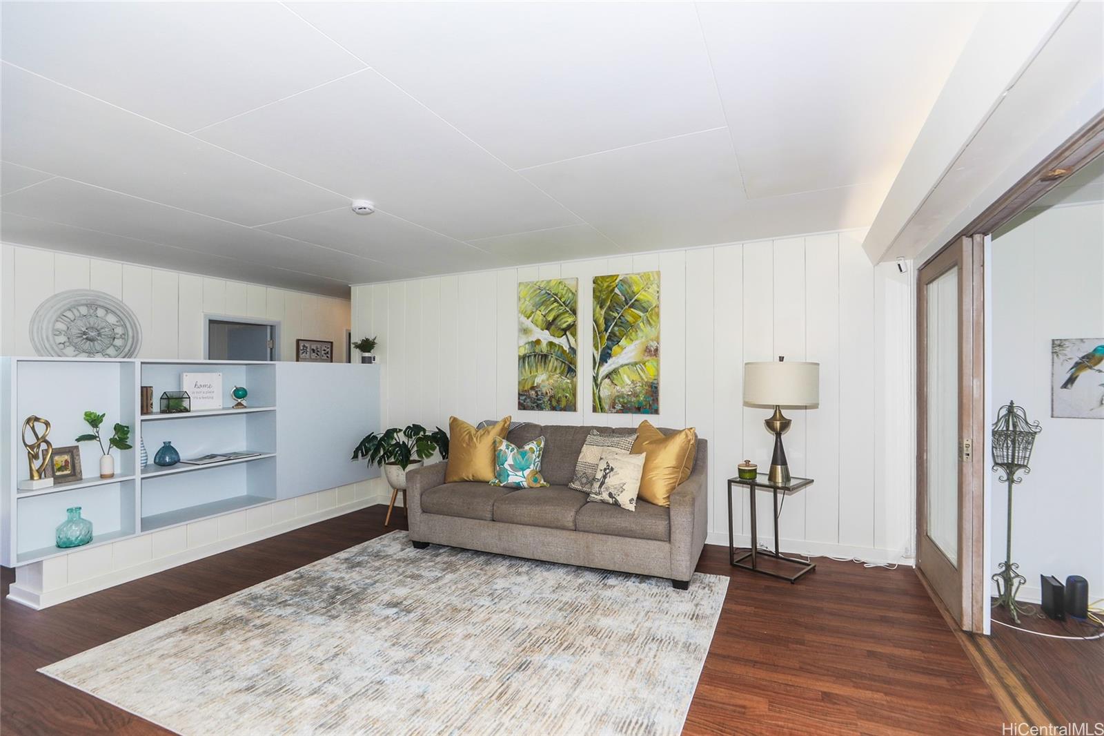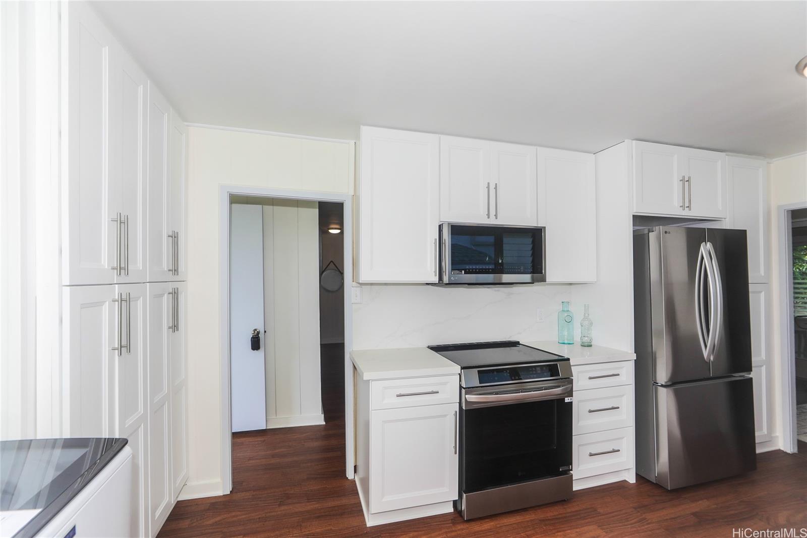 Nicely renovated 3 bedroom 2 bath single-level home featuring new flooring, paint, cabinets and all new appliances, high ceiling garage with level backyard. Conveniently located near UH Manoa and Punahou School, with easy access to bus line and H-1 Freeway. Home has been staged. To be sold "As Is".