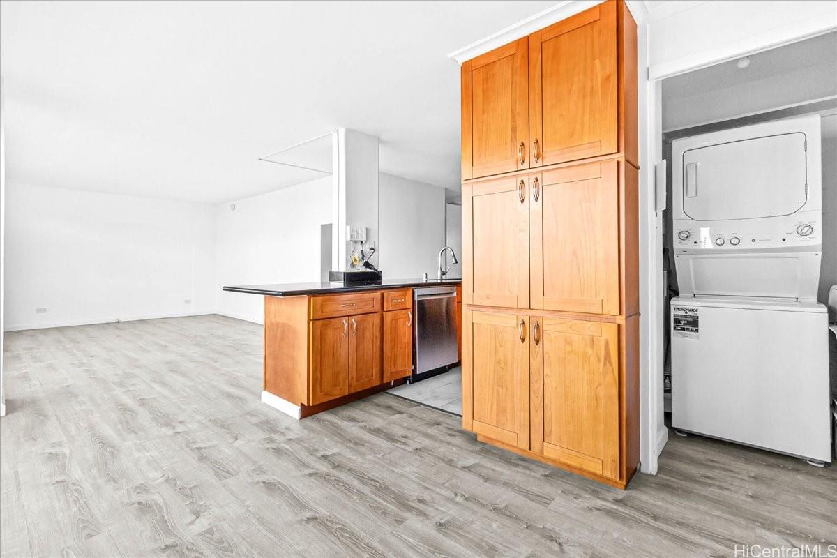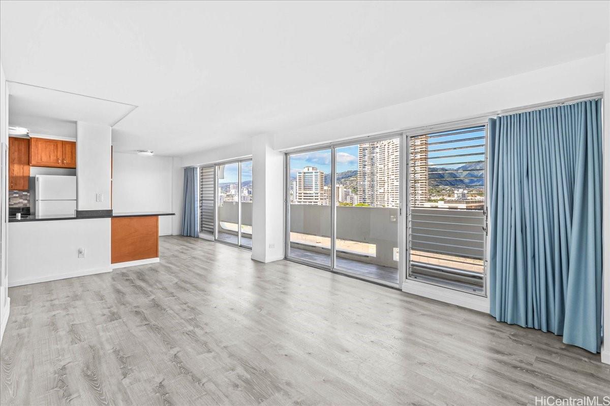 Beautifully renovated 2-bedroom, 1.5-bathroom unit offering 977 sq. ft. of interior living space plus an additional 108 sq. ft. of outdoor balcony with panoramic views of the Ala Wai, golf course, and Honolulu skyline.