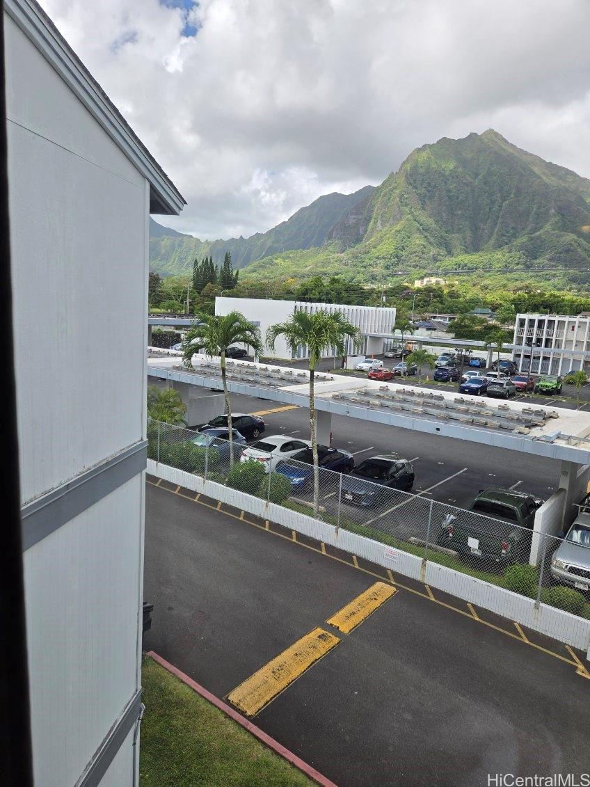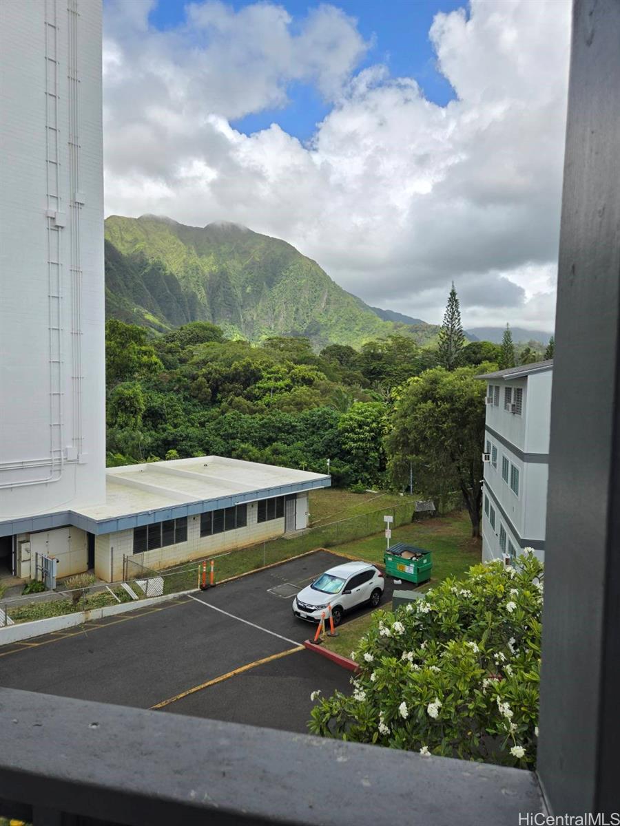 Top floor unit with views of the lush Koolau mountains from the living room. Covered parking, storage area, playground and BBQ pits in common area and pet friendly. Close to Windward Mall, Kaneohe Bay Shopping Center, schools, bus line and easy freeway access. One or more photos have been virtually staged.