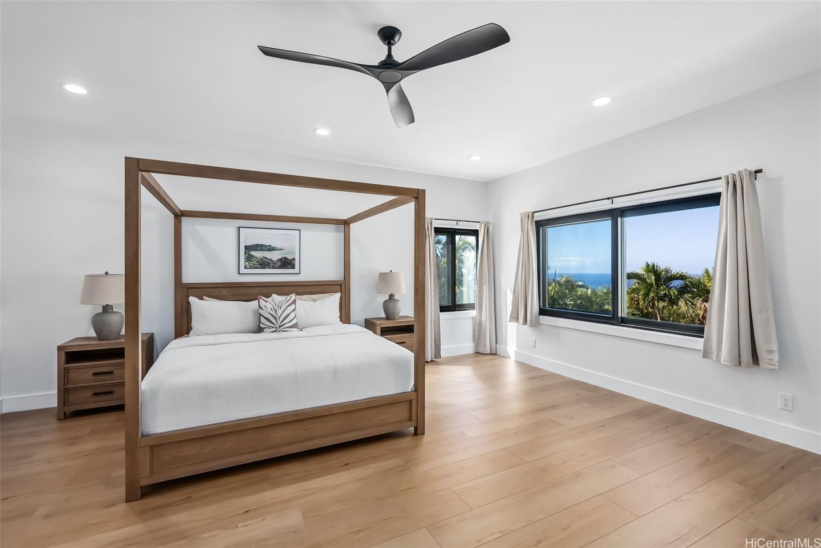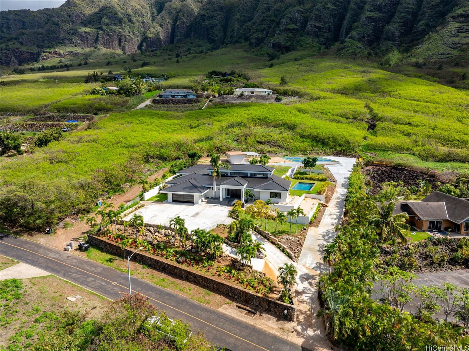 Luxury Modern Retreat in the gated community of Mauna'Olu Estates. Enjoy over 2 acres of land with Breathtaking Ocean Views and Mountain Views. Experience the ultimate in modern luxury with this stunning custom-built home, nestled against the breathtaking backdrop of Makaha Valley. This spacious open-concept home is designed for elegance and comfort, offering high ceilings, expansive windows, and an abundance of natural light. A chef’s dream, the kitchen boasts a custom walk-in pantry, premium appliances(Thermador), custom cabinetry, and a large island—ideal for both casual dining and entertaining. The primary suite features a spa-inspired bathroom with modern fixtures and elegant finishes. Oversized sliding doors open to a private backyard oasis, featuring a pristine pool, lush landscaping, and 2 pickleball courts perfect for entertaining or simply soaking in the serene surroundings. The beautifully designed outdoor lounge area and patio are perfect for dining under the stars and enjoying morning coffee. This home is an architectural masterpiece, offering the perfect blend of luxury, privacy, and natural beauty. Experience this one-of-a-kind paradise for yourself!