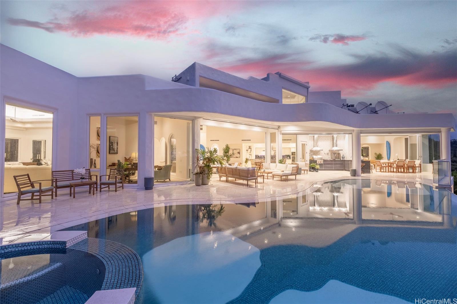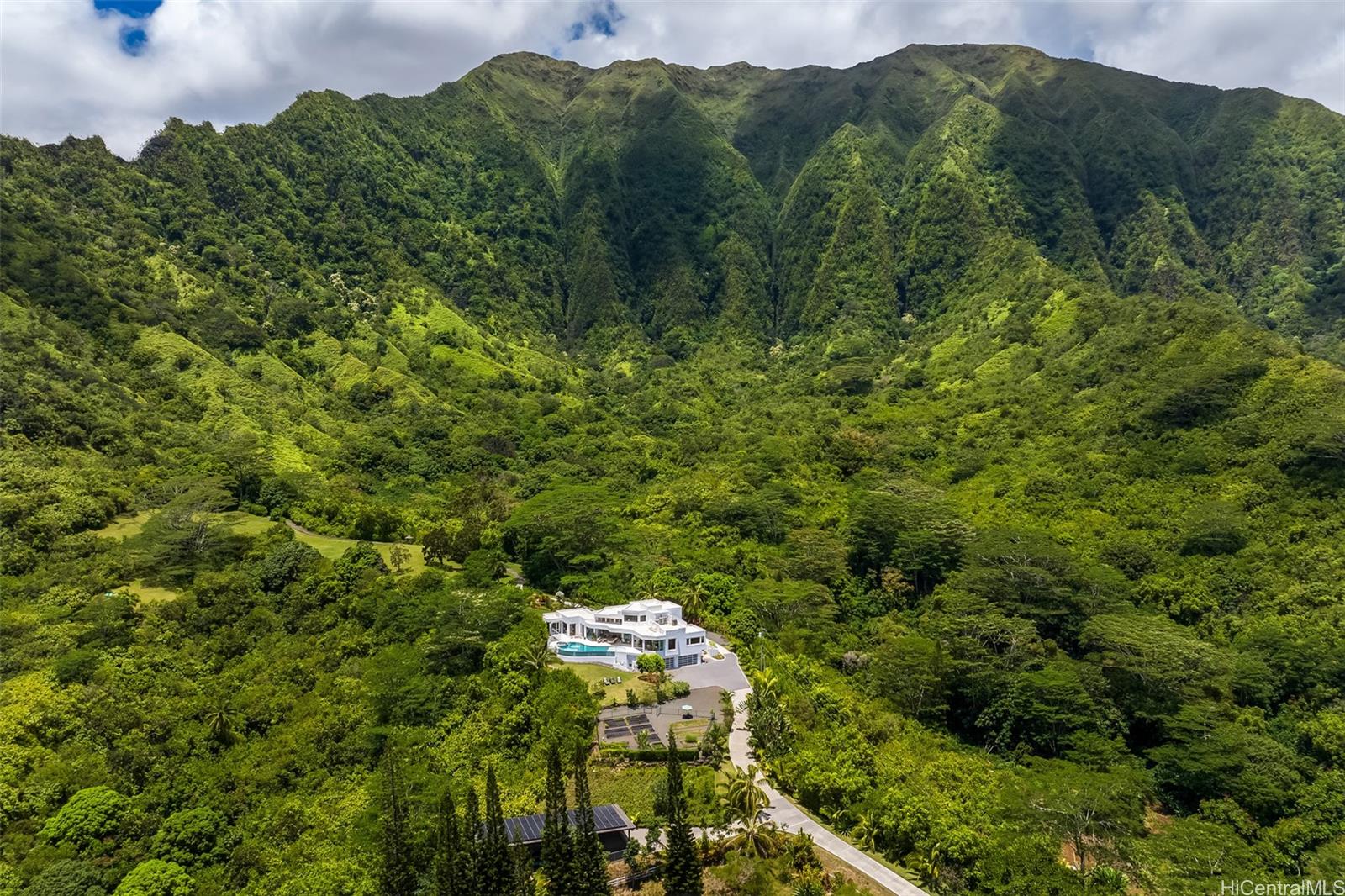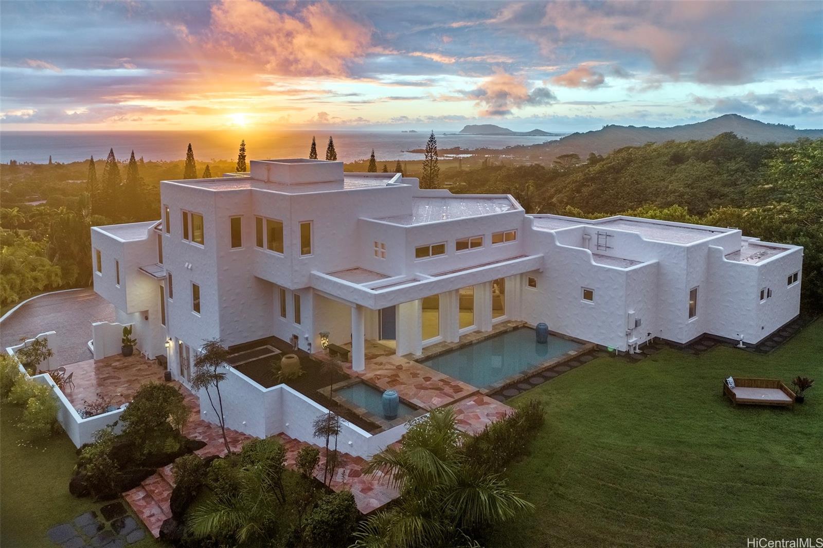 Prominently situated against the majestic Ko'olau Mountains, this extraordinary 23+ acre estate is a rare opportunity to own a true legacy property. Hidden behind gates & elevated above the coastline, it offers breathtaking panoramic views of Kaneohe Bay, the Pacific Ocean & verdant mountain cliffs - a setting that truly feels worlds away. The custom-designed smart home spans over 5,500 sq ft of sophisticated living space with 5 bedrooms, 5 full baths & 2 half baths. Designed for seamless indoor-outdoor living, expansive glass doors open to stunning lanais, a sundeck with resort-style infinity-edge pool, a full outdoor kitchen & BBQ pavilion - perfect for entertaining or quiet reflection. This self-sustaining haven has a spring-fed water system, 120-panel PV system & 6 Tesla Powerwalls. Other exceptional highlights include: Miele appliances, 140" theater room with wet bar, elevator, central AC, fire sprinklers, 3-car garage with parking courtyard & much more. The possibilities are endless across this expansive parcel of highly coveted land. A unicorn estate & once-in-a-generation opportunity...only one buyer will inherit this treasure! *Sale pending Final Public Report