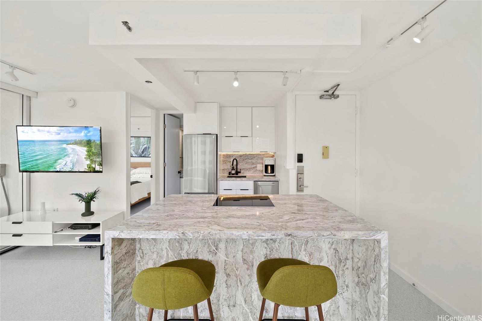 有名なワイキキビーチまで徒歩数分の場所にある、見事に改装された1ベッドルームのユニットです。このユニットはAirbnbで高評価を得ている、人気のバケーションレンタルユニットです。初日から収入を得たい投資家に最適です。売主は自ら管理を行い、新オーナーのためにユニットを管理する用意があります。ユニットは2023年に全面改装を完了しました。アップグレードには、セラミックタイルの床、ヨーロピアンスタイルのキッチン、フローティングカスタムワンピースクォーツ洗面台/シンク、高級クォーツカウンターなどがあります。照明/電気設備、配管もアップグレードされています。スプリットエアコンと新しい窓も設置されました。すべての家具が販売に含まれています。パシフィックモナークは、ハワイで最高のバケーションレンタルビルの1つと言えるでしょう。建物のアメニティも最近改装されました。建物には、最も高い屋上プール、ジャグジー、サウナ、バーベキューグリルのあるレクリエーションエリアがあります。建物にはワイキキで最大の駐車場もあり、ゲストとオーナーはリーズナブルな料金で駐車場を使用できます。ワイキキの中心部に位置し、ワイキキのあらゆるアクティビティが徒歩圏内にあり、美しいワイキキビーチもわずか数分です。まさに特別なお部屋です!