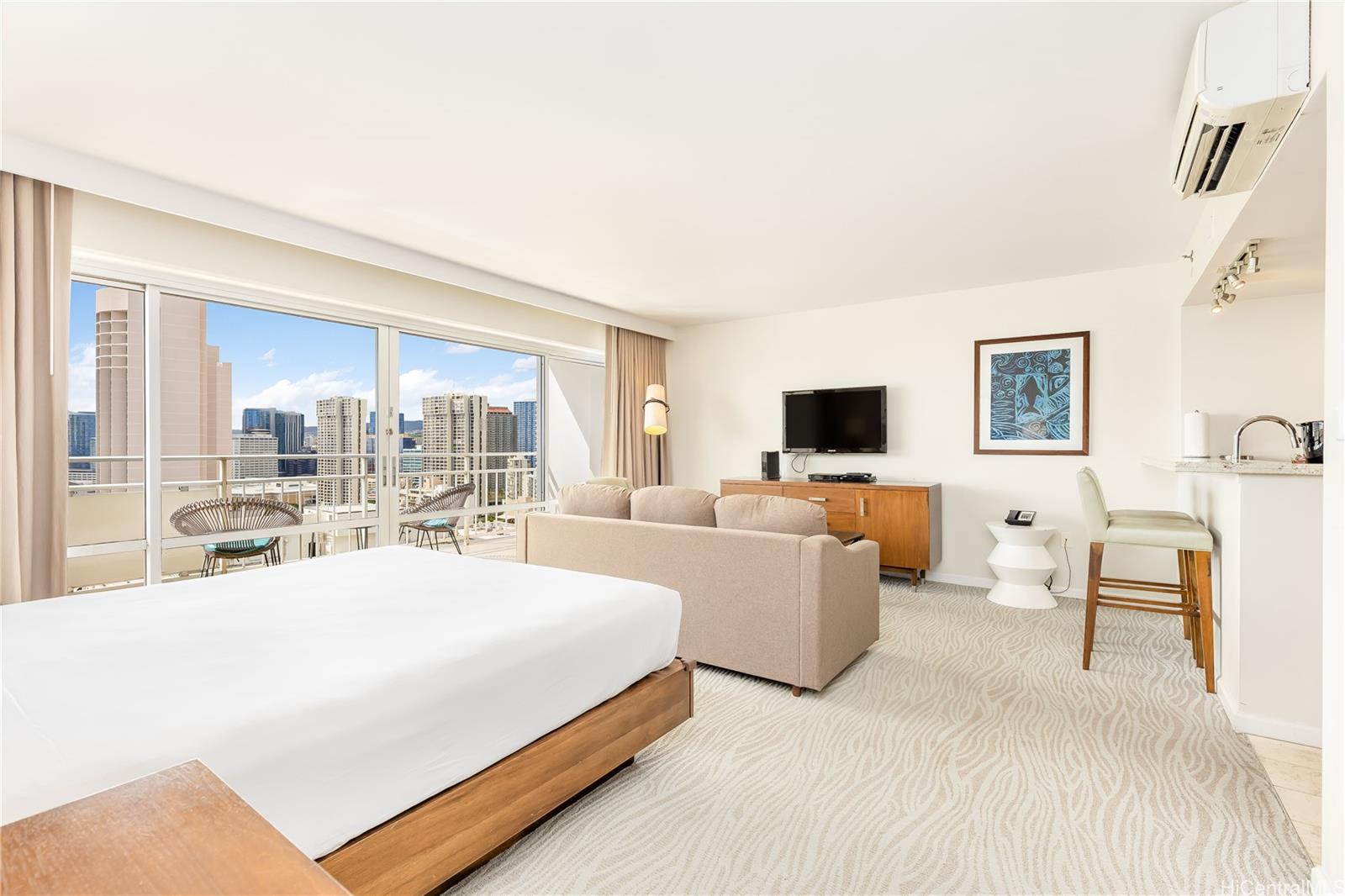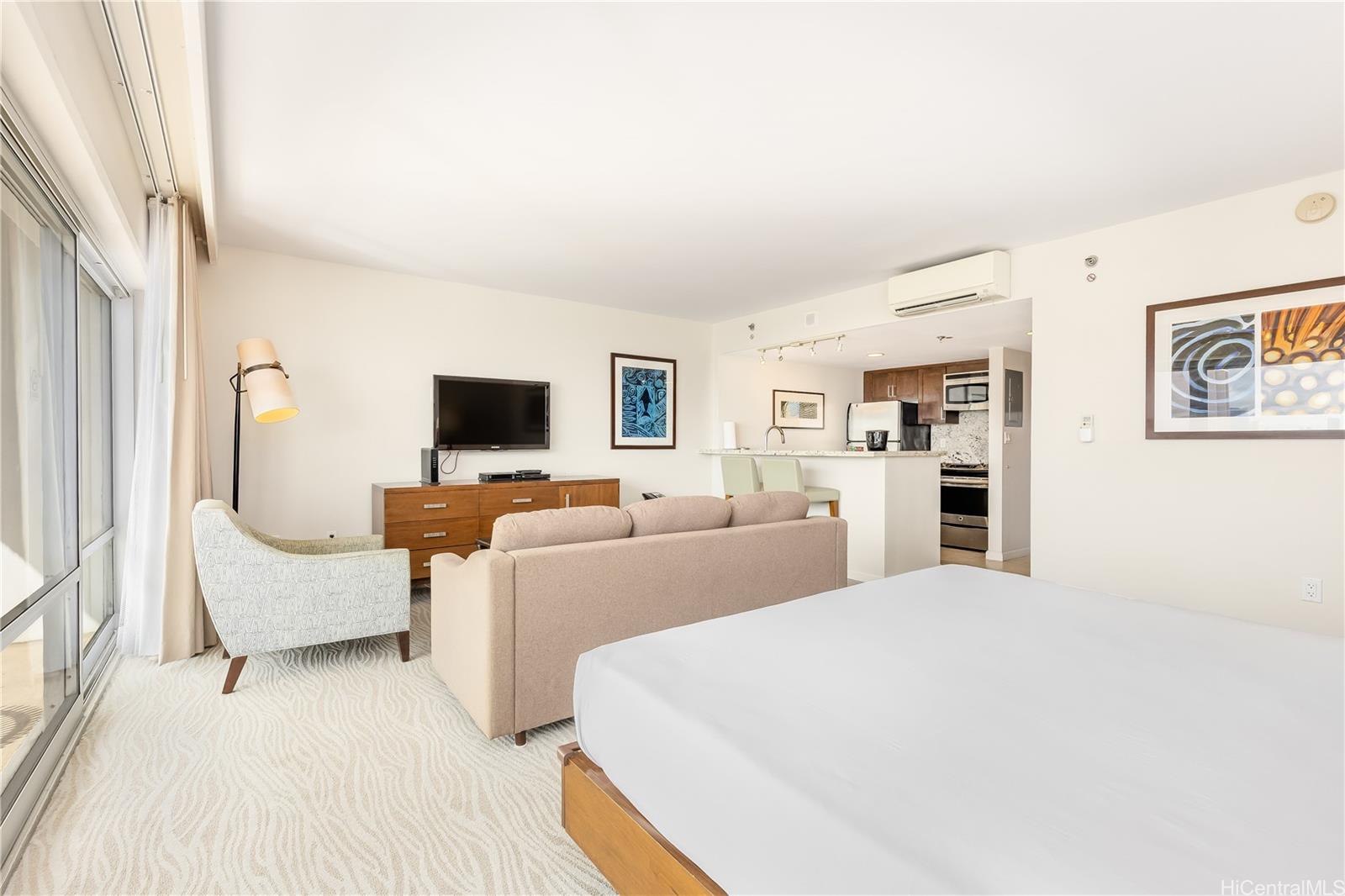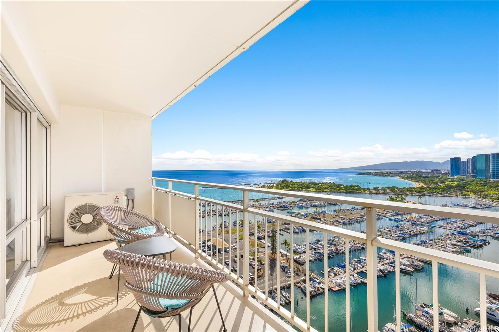 You can enjoy gorgeous Harbor/Ocean view as well as coastline with sunset. Easy access to the beach, very close to both Waikiki and Ala Moana. This unit is fully furnished and comes with great appliances, split AC, cable TV, and very spacious Lanai (Balcony). Currently it is in Aqua Hotel rental program. Perfect for part-time owners who want to rent their units while they are away!
