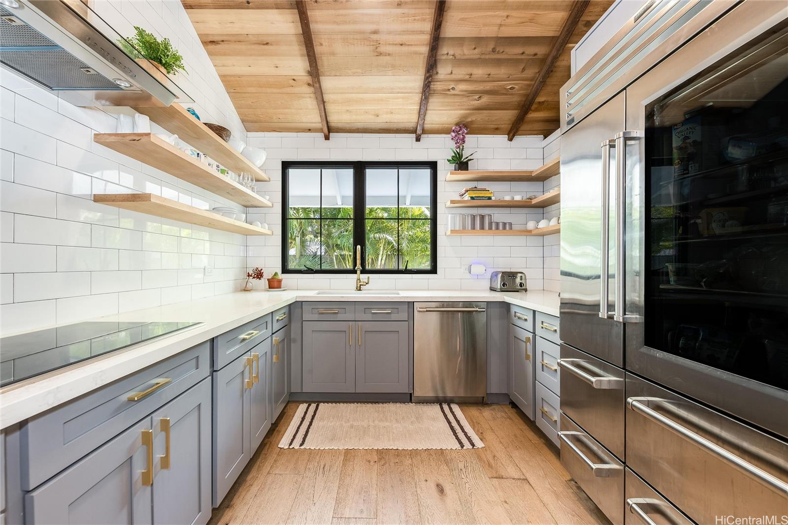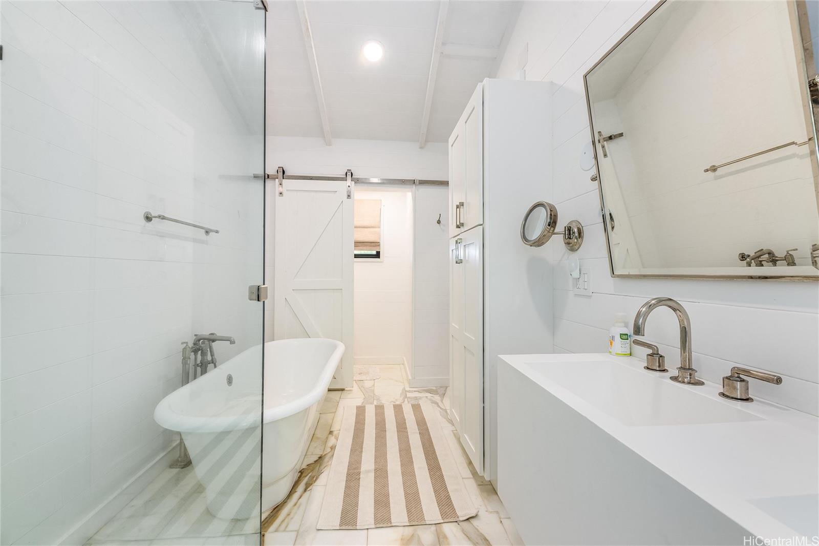 Imagine waking to the soothing rhythm of waves, stepping onto your private lanai, and gazing out at the iconic Mokulua Islands—this dream becomes your daily reality at this exquisite oceanfront estate on coveted Mokulua Drive in Lanikai. Tucked away at the serene end of Lanikai, this expansive 19,212 sq. ft. property offers unrivaled views and picture-perfect sunrises over the Pacific. Fully renovated in 2022, the residence blends timeless mid-century island architecture with luxurious modern upgrades, including wide-plank oak flooring, custom cabinetry, WaterWorks fixtures, Sub-Zero/Wolf appliances, Fleetwood sliding doors, updated plumbing and electrical systems, and a state-of-the-art home theater. This single-level beach house features three spacious bedrooms and four elegant bathrooms, all thoughtfully designed to embrace indoor-outdoor living. Step outside and the ocean is your backyard—perfect for snorkeling, kayaking, wing foiling, or simply enjoying the Lanikai loop while greeting friendly neighbors. Famed for its powdery white sands and crystal-clear waters, Lanikai is a sanctuary for water lovers and those seeking an elevated, yet laid-back island lifestyle.