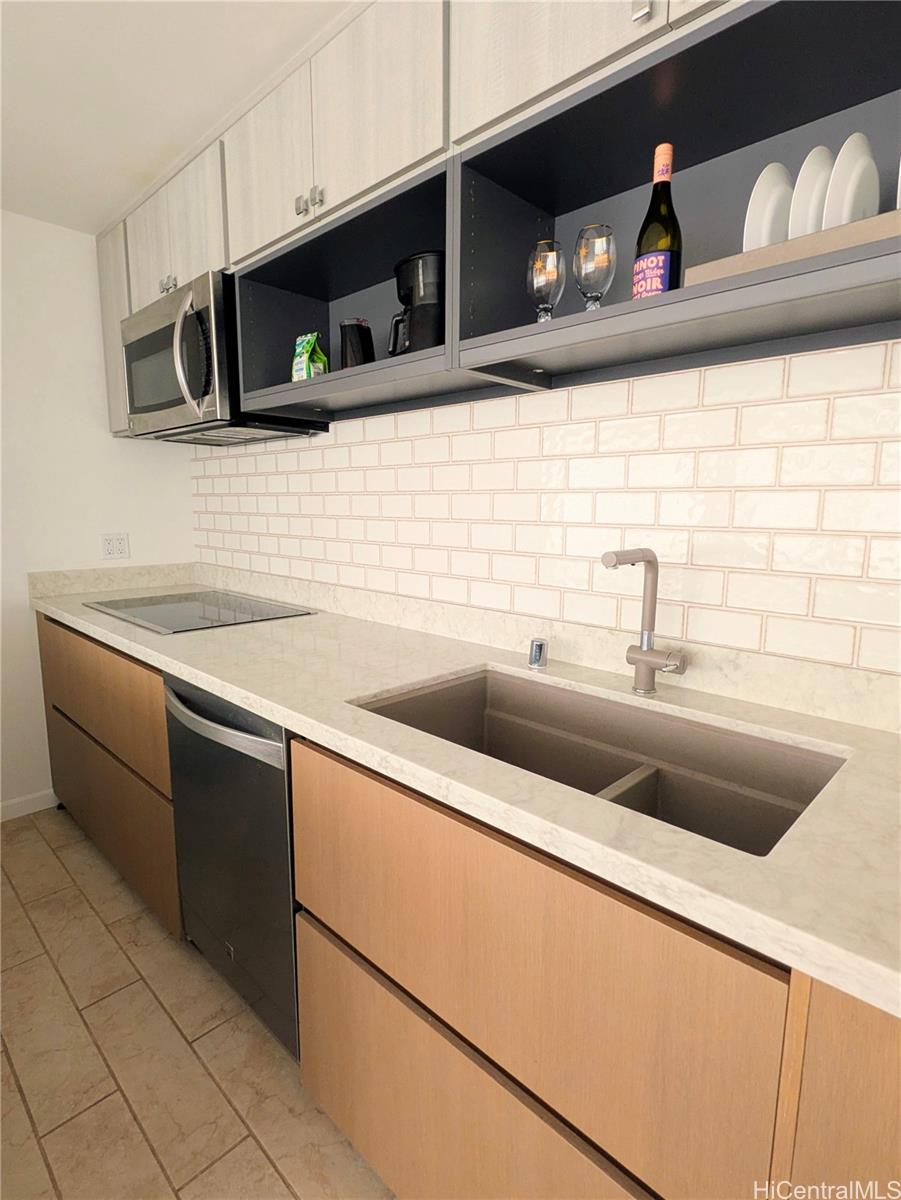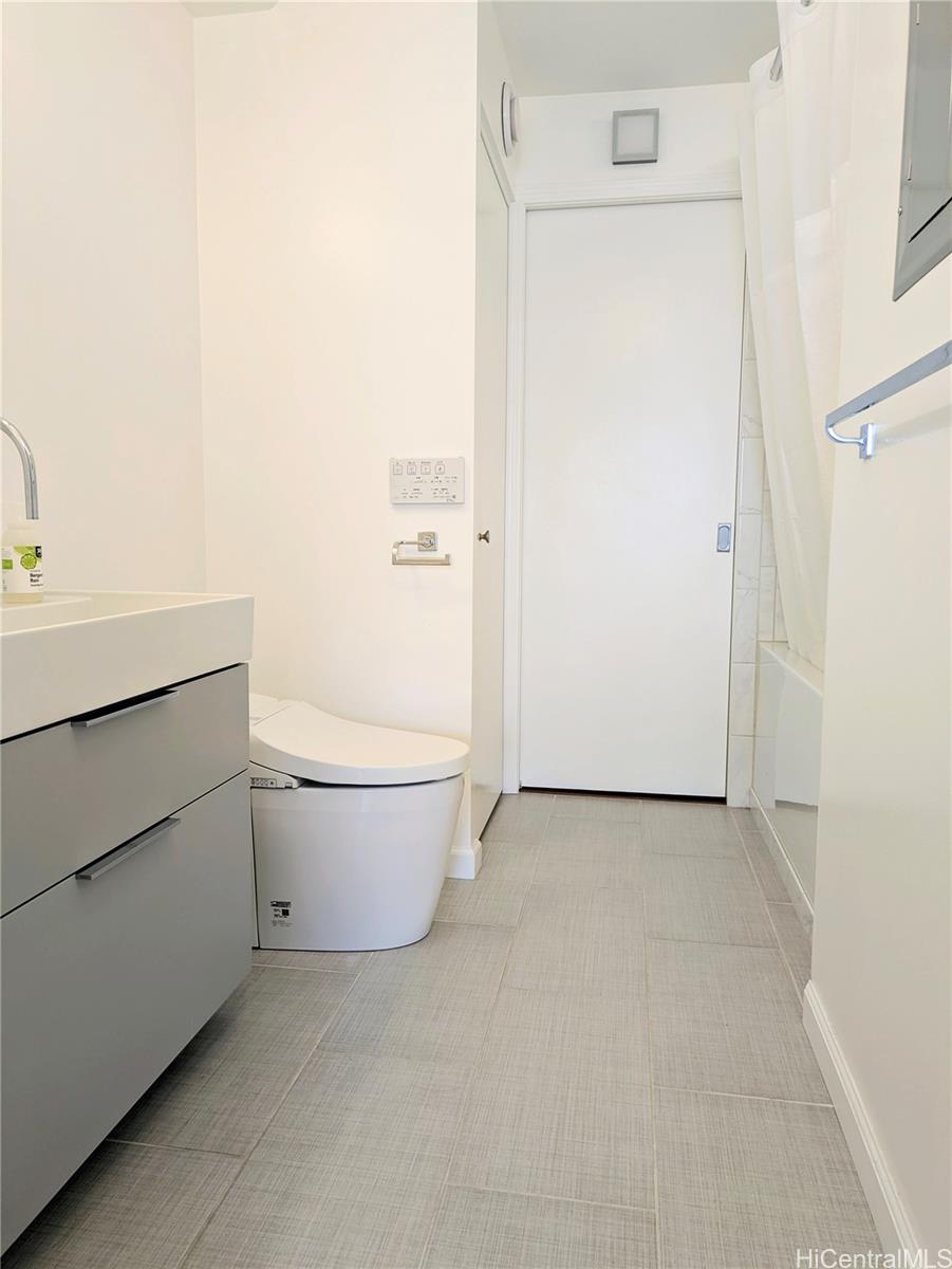 Perfectly renovated to modern Japanese style kitchen and bathroom, Introducing a beautifully renovated 1-bedroom, 1-bathroom condo at Discovery Bay. This unit, updated in 2019, showcases modern finishes and sleek appeal, and includes the rare convenience of an assigned parking stall—an exceptional feature in Waikiki. This near-complete ownership structure enhances the appeal, long-term equity, and financing flexibility. Perched in a secure, amenity-rich high-rise—complete with pool, sauna, fitness center, BBQ areas, and on-site resident management—the condo enjoys an ideal location close to Ala Moana Center, beaches, public transit, and world-class shopping and dining.
