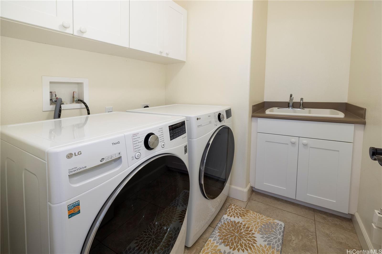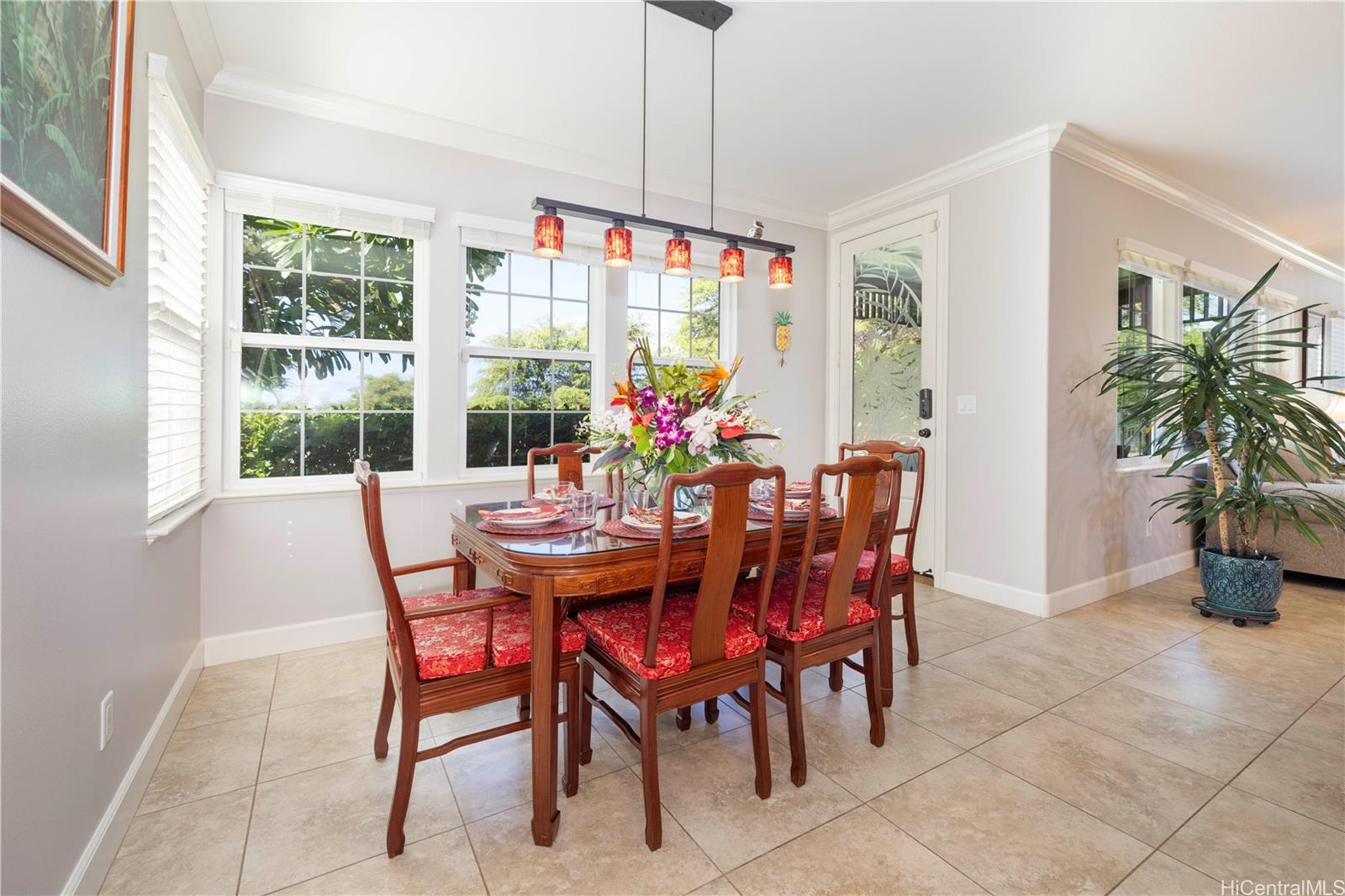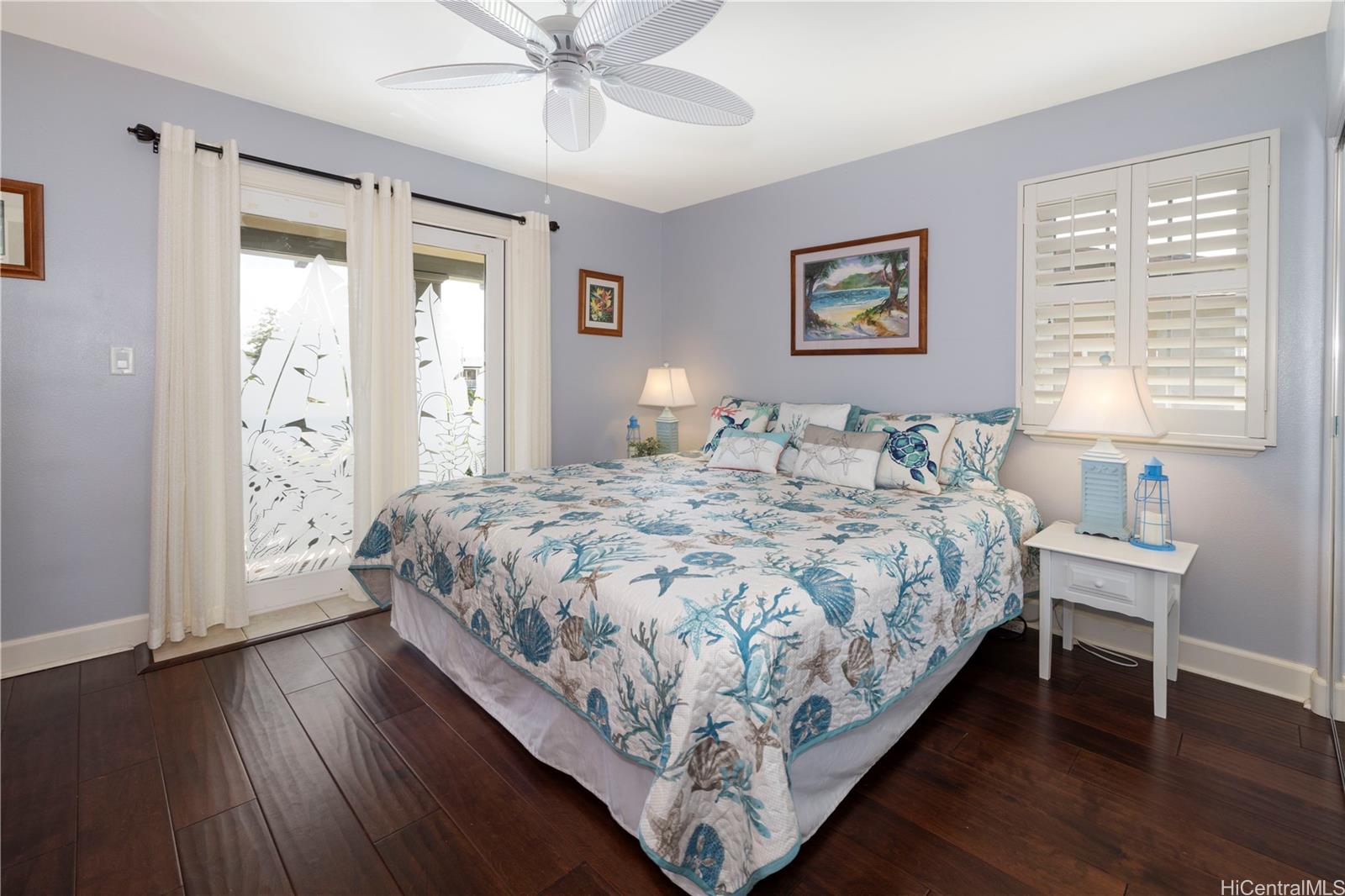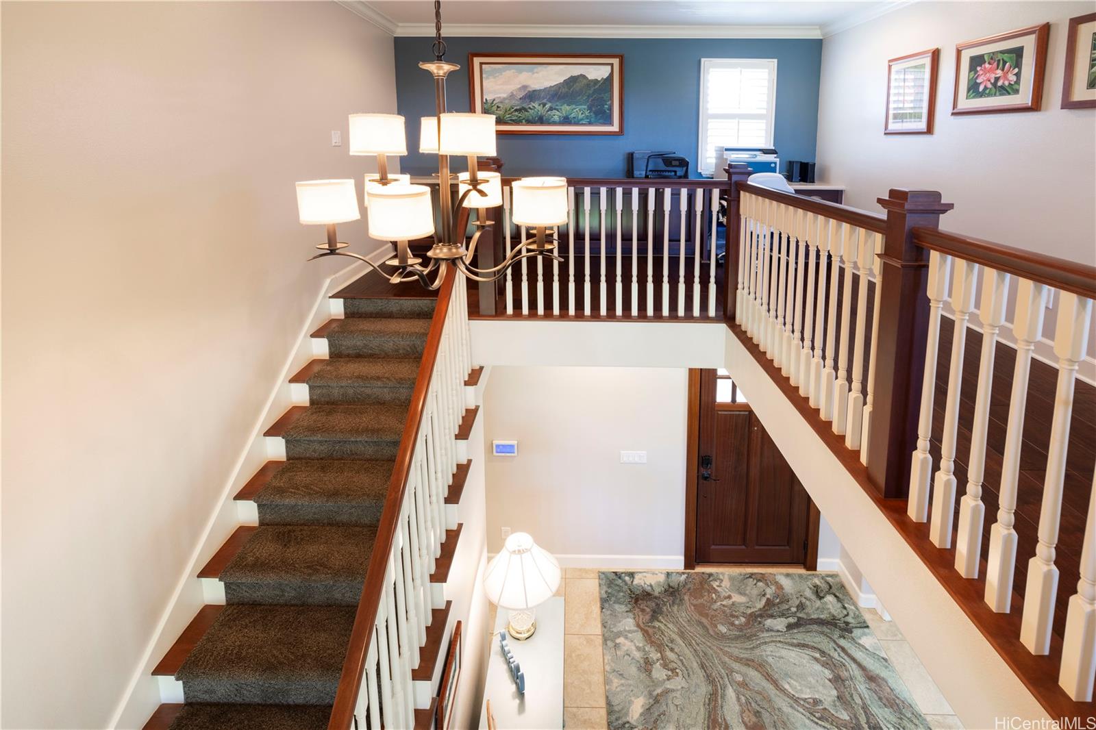 Fronting the Hoakalei Golf Course, this meticulous 4-bedroom home is refined island living! From the welcoming foyer, the French doors open to a bonus room—ideal as a private office, reading retreat, or den—along with a main-level bedroom & full bathroom, perfect for guests or multi-generational living. The modern kitchen has upgraded cabinetry, stainless steel appliances, granite counters, and a large island with additional seating.