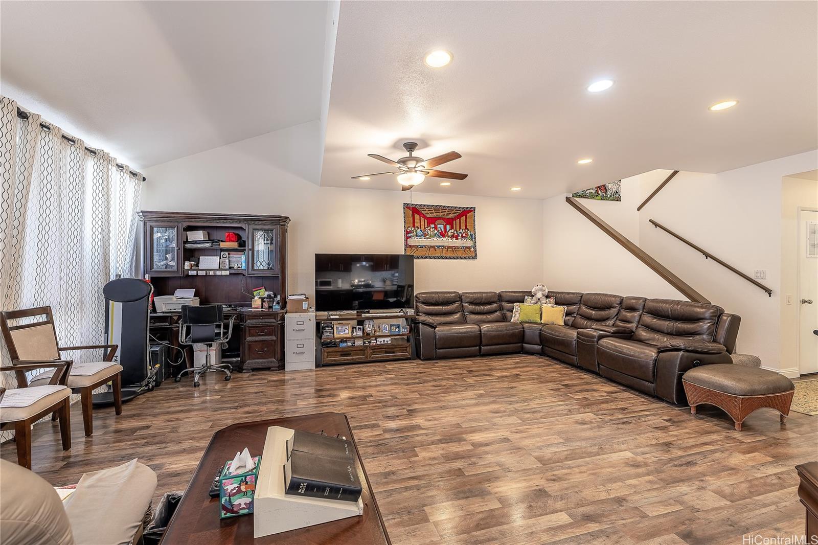 91-957 Laaulu Street #40F で夢のマイホームを見つけましょう。エワビーチの人気コミュニティ、アーバーズにある素晴らしい3ベッドルーム、3バスルームのタウンハウスです。1,616 平方フィートの思慮深く設計された居住空間と拡張 (許可済み) ラナイを備えたこの家は、モダンな優雅さと島の魅力が融合しています。室内は、リビング、ダイニング、キッチンエリアがシームレスにつながるオープンフロアプランで、IH オーブンと新しいシーリングファンを備えています。アップグレードされたスタイリッシュなファームハウスシンクと省スペースのスライド式パントリー納屋のドア。多目的に使える階下のベッドルームとバスルームは簡単にアクセスでき、ゲスト、ホームオフィス、または多世代生活に最適です。メインスイートはゆったりとしたクローゼットスペースを備えたプライベートな隠れ家であり、追加のベッドルームはホームジムや居心地の良い書斎など、ニーズに合わせて調整できます。このユニットは、プール、バーベキューエリア、居心地の良いクラブハウスなど、アーバーズのリゾートのようなアメニティがすぐそばにあり、ご友人やご家族との集まりに最適です。エヴァビーチの最高のロケーションに佇んでいます。