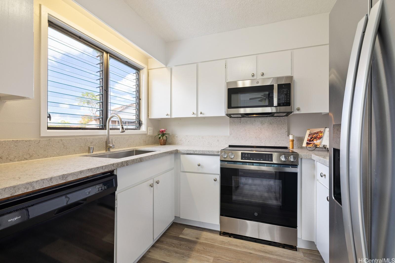 この物件をお見逃しなく…広々とした、新しく改装された平屋建ての1階建てタウンハウスは、2ベッドルーム、2バスルームを誇ります。最近、塗り替えられた塗装、新しいフローリング、新品のレンジ、電子レンジ、カウンター深さの冷蔵庫、新しいシンク付きの洗練されたクォーツカウンタートップ、再ガラス張りの浴槽とその周辺、そして新しい給湯器など、設備が充実しており、安心してご入居いただけます。開放的で風通しの良い間取りは、独立したダイニングエリアと広々としたリビングルームを備え、230平方フィートの巨大なスクリーン付きベランダへとスムーズに繋がります。エンターテイメントや屋内と屋外を繋ぐリビングに最適です。外に出れば、フェンスで囲まれた庭園エリアと豊かな緑が広がります。どちらのベッドルームもゆったりとした広さで、主寝室にはウォークインクローゼットが備わっています。この端のユニットには、屋根付きの並列駐車スペース2台分と大型の専用収納室が備わっています。居住者は、ミリラニ・ゴルフクラブとそのレストランに隣接する、人気のトロピカルコミュニティ内で、美しいプールと、集まりや会議にご利用いただけるレクリエーションルームをご利用いただけます。また、ミリラニ・タウン・アソシエーションの会員資格も取得でき、7つのレクリエーションセンターと様々なアメニティをご利用いただけます。