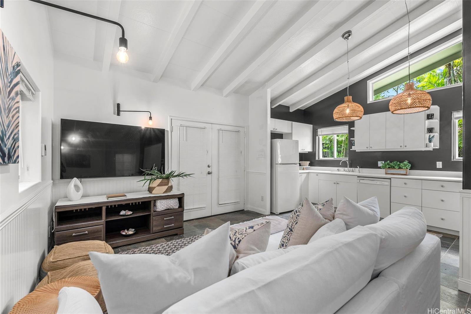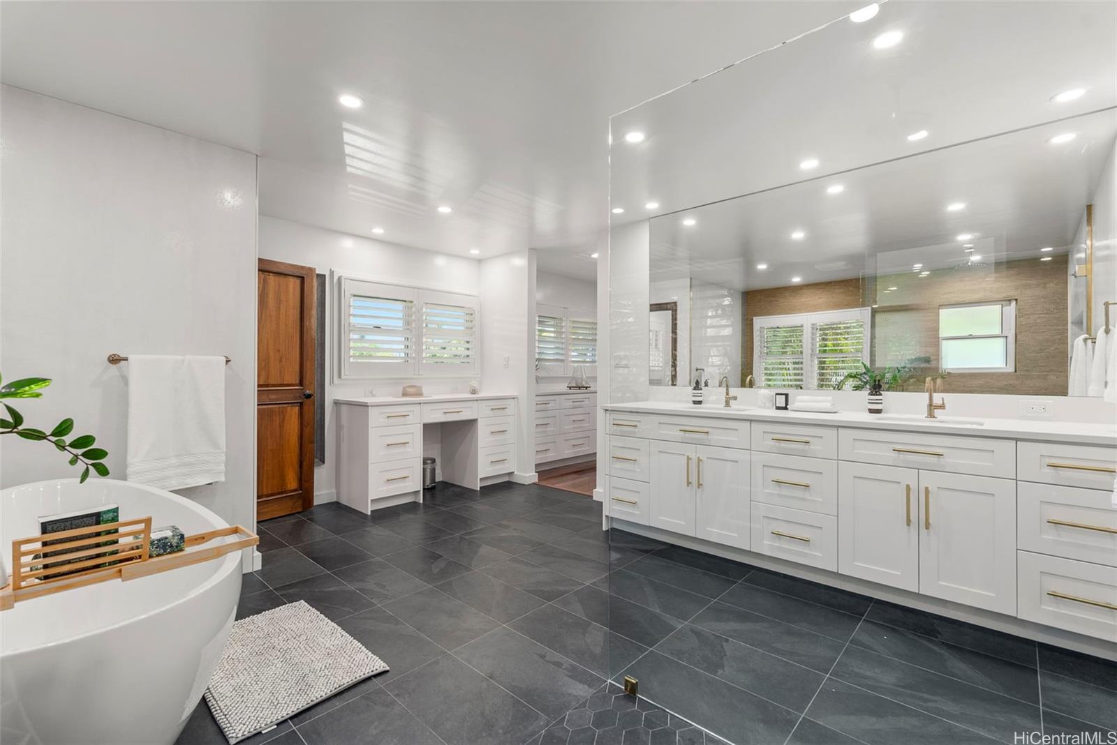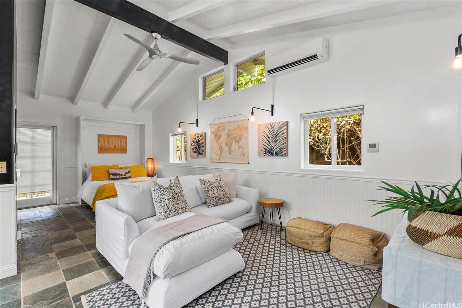 Located just steps away from the white sand beach of Lanikai, this luxury home represents quintessential beach living at its finest. This immaculate 2 story Estate sits on an ample beautifully-manicured tropical piece of paradise. A lovely streetscape precedes this stunning family residence which is cleverly designed to capitalize on the private pool, backyard, and separate Guest Cottage. Apart from the Guest Cottage, you will find another separate Pool Suite. The downstairs of the main home features open-plan living, dining and a gourmet kitchen seamlessly flowing out to a covered alfresco area and phenomenal entertaining space. As you ascend the stairs, you are met with a generous primary suite and 2 more gorgeous bedrooms. Extra state of the art touches like a sauna, gym, putting green, gourmet pizza oven & BBQ add to the splendor of this Estate. This is the perfect home to come back to after a day of work, day of swimming, snorkeling, paddle boarding, surfing or relaxing at this world famous beach location. So many more bells and whistles - come see for yourself. 40 Owned PV panels.