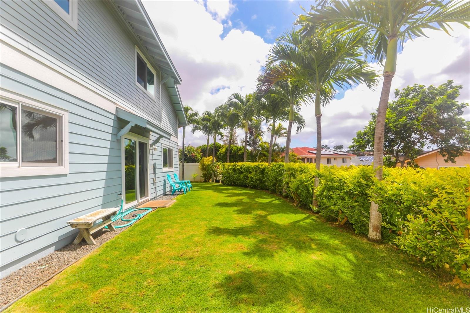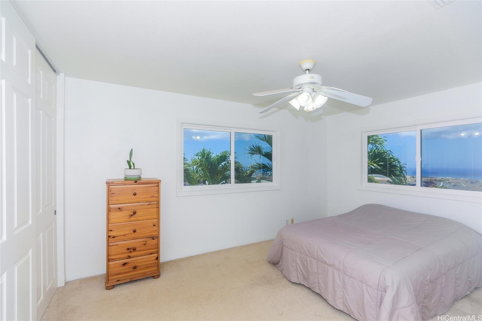 Oceanview Elegance in Seascape at Makakilo. A stunning 3-bedroom, 2.5-bath single-family home nestled in the gated community of Seascape at Makakilo in Kapolei. This contemporary home offers breathtaking ocean views from nearly every window. Spacious open floor plan with a cozy loft area, a Gourmet kitchen featuring stainless steel appliances. Central air conditioning for year-round comfort, an Expansive primary suite with panoramic ocean views, and a dual vanity ensuite. Huge fenced backyard with a sprinkler system — perfect for entertaining or relaxing. Eco-friendly 37 solar panels and newly upgraded energy-efficient windows. This home blends island charm with modern convenience, making it a true gem. HOA monthly cost includes unlimited use of water.