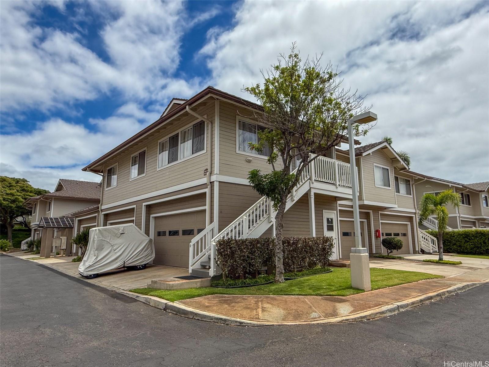 Highly desirable end unit at Ko Olina Fairways featuring 2 bedrooms, 2 full bathrooms, and a rare full-size 2-car garage with additional guest parking. Enjoy an open-concept living and dining area with split AC units in both the living room and bedrooms for year-round comfort. The home is well-positioned within the community, offering privacy and convenience. Residents can take advantage of excellent amenities including a pool, gym, BBQ area, and recreation facilities. Monthly fees also include exclusive access to the Ko Olina Beach & Sports Club, with fitness classes, tennis, and use of the pristine beach lagoons. Just minutes from world-class dining, shopping, golf, and resort lifestyle amenities, this home offers the perfect blend of comfort and resort-style living. Fees breakdown for 2025: $76.06 association fees, $672.96 maintenance fee, $64.61 beach and sports club and $37.90 reserve contribution