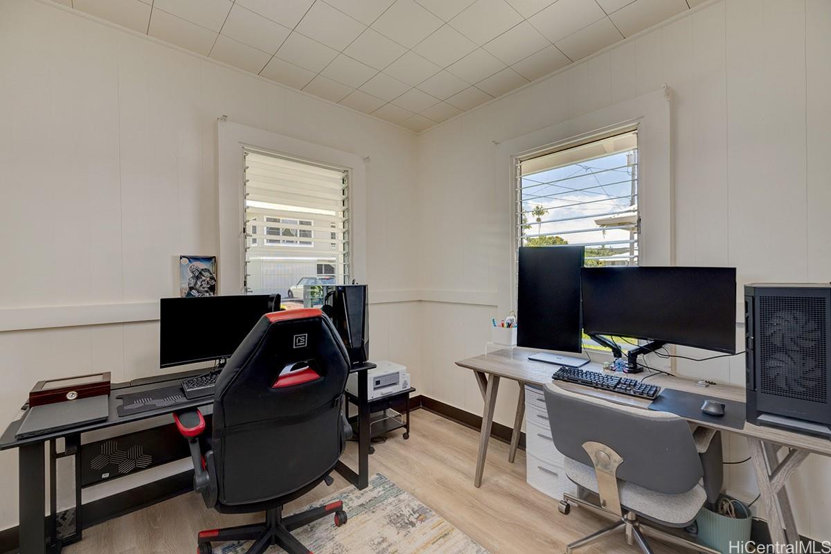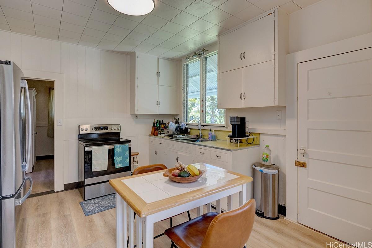 Approximately half of this sweet 9,000 sq.ft. parcel is a fenced area for family pets. There is a mature citrus orchard within this fenced space. Fenced area new in 2023. The front half of the parcel hosts a delightful plantation style home with 4 bedrooms and a nice full size bath. Accessible storage and work space downstairs, including a 2nd bath that appears to have always been there is yours to develop as you like. Freshly painted inside & out. Quality vinyl plank installed throughout the home in 2023. Rewired in 2023. Roof new in 2019. Appliances: Washer, dryer, refrigerator/freezer, stove & on-demand tankless water heater also new in 2023. Air conditioning new in 2025. Not to over use "new" but call your agent to make this your new home!