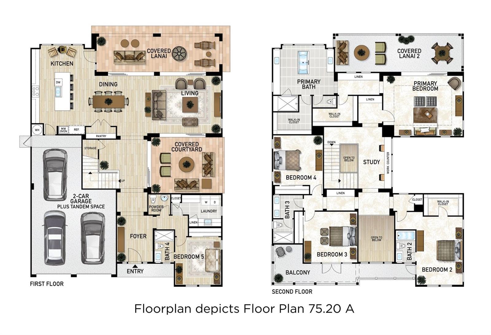 洗練された海辺のラグジュアリーを体感できる、広々とした新築レジデンス。4,000平方フィートを超える美しくデザインされた居住空間をご用意しています。5つのベッドルーム、4つ半のバスルーム、専用の書斎、屋根付きベランダ、そしてプライベートな中庭を備えたこの邸宅は、機能性と洗練さをシームレスに融合。静かな隠れ家としても、活気あふれるエンターテイメントとしても最適です。雄大な海の景色と、セントラルエアコン、120ガロンのソーラー給湯器、EV充電器の設置、太陽光発電システム設置など、充実した設備をお楽しみください。グルメキッチンには、最高級の家電製品が丁寧に備え付けられています。42インチのビルトインSub-Zero冷蔵庫、Wolf製IHクッキングヒーター、コンベクションオーブン、ドロップダウンドア付き電子レンジ、Energy Star認定のBosch製食器洗い機など、すべてが最高の料理のために設計されています。屋外には、プロが手入れした前庭と裏庭があり、自動灌漑システムを備え、緑豊かで手入れの手間もかかりません。集い、くつろぎ、あるいはただそよ風を楽しむのに最適な空間です。Pohinahina 75.20 フロアプラン Kekainani at Hoakalei | 高級住宅街クアパパ地区に残る最後の32戸の高級住宅の一つ