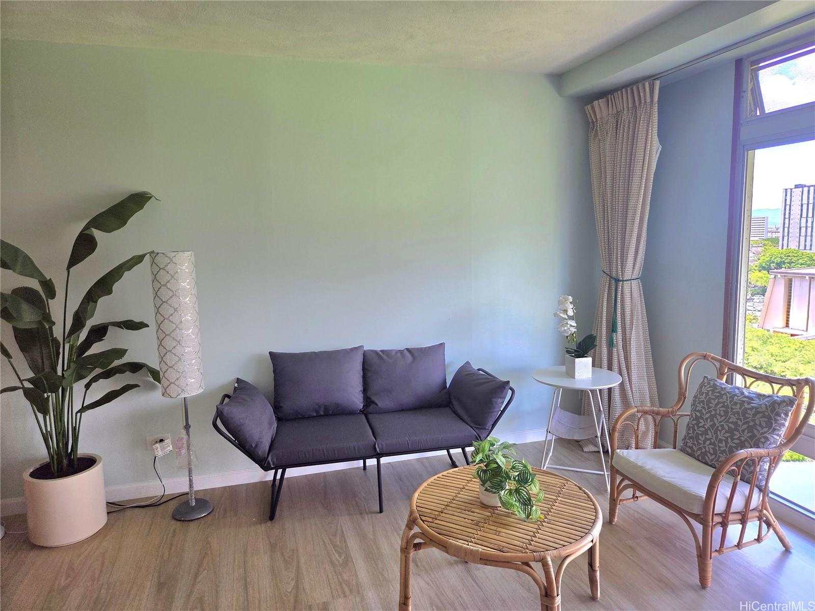 ホノルル・ダウンタウン中心部の閑静なクイーン・エマ・ガーデンズ・プリンスタワーにある1ベッドルーム/1バスルームのユニットで、都会暮らしの魅力と利便性をご体験ください。美しく手入れされた庭園、鯉のいる池、遊歩道を見渡すこのユニットは、都会の真ん中にありながら、静かな眺望とくつろぎの空間を提供します。室内は、ビニール製の板張りのフローリングと大きな窓がセンス良くまとめられており、庭園の眺望をお楽しみいただけます。キッチンは障子で仕切ることも、自然な流れで開け放つこともできます。建物からそれほど遠くない場所に、屋根付きの専用駐車場が1台分あり、来客用駐車場も十分に確保されています。居住者は、スイミングプール、子供用プール、バーベキューエリア、プライベートな集まりに最適なティーハウス、子供用プレイグラウンドなど、リゾートのようなアメニティをお楽しみいただけます。さらに、24時間体制のセキュリティで安心です。ダウンタウン、レストラン、ショッピング、医療センター、主要バス路線へのアクセスも良好で、快適さと利便性の両方を求める方にとって理想的な住まいです。初めての購入者、投資家、または活気のある都会のライフスタイルをお探しの方にとって、クイーン エマ ガーデンはホノルルの自然、文化、現代的な暮らしの完璧なバランスを提供します。