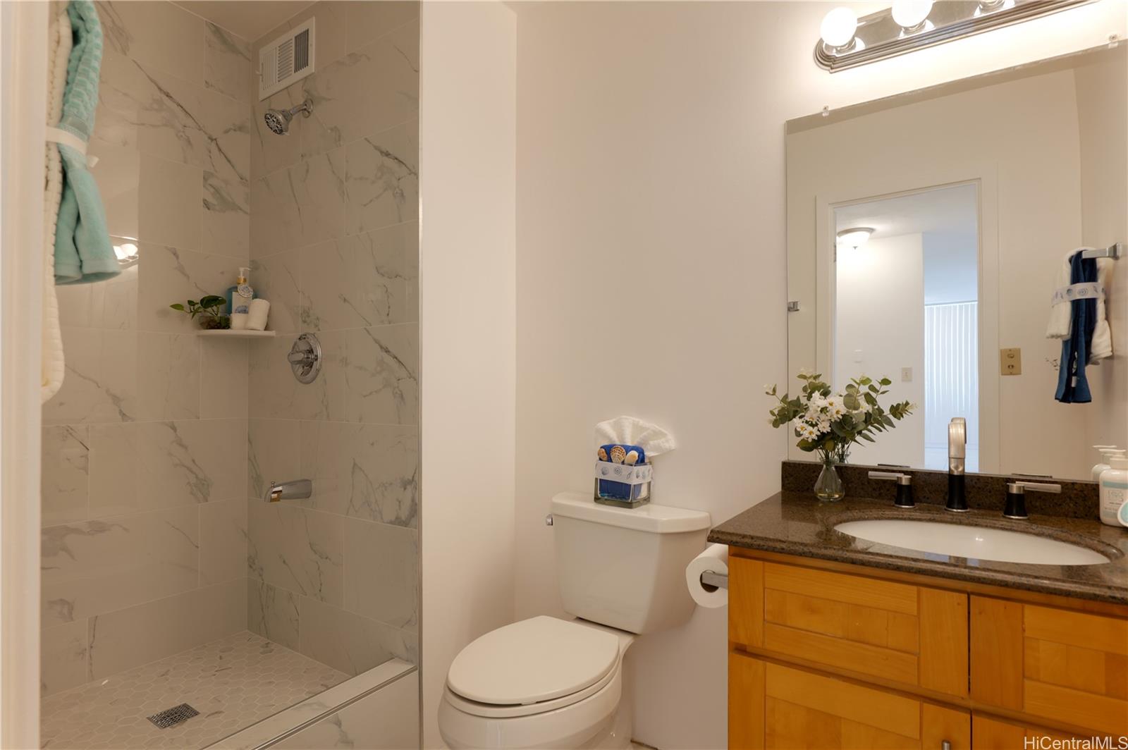 Excellent value condo in the heart of Waikiki! To live-in or for investment. This Bright & spacious 1 Bedroom 1 Bath unit comes with a covered parking located in gated garage, plus a locked storage located inside the building. Seaside Towers is a secured, well-managed, gated & w/keyed elevators. This unit features a great Layout, Large Sliding Windows, Tiled Flooring, New Paint throughout, a Brand-new shower just installed, Brand-new washer dryer; Granite--vanity top, kitchen & dining countertops (w/additional cabinets under). Living room & bedroom separated by partition shoji sliding doors which can be converted into a 2 bedrooms usage, comes with a spacious walk-in closet space that can be used as office or added storage. Amenities include swimming pool, BBQ area, surfboard storage, and a clean & nice seating lobby. Super convenient location-Near International Marketplace, Royal Hawaiian Shopping Center, Waikiki Beach, vast selection of restaurants & entertaining.