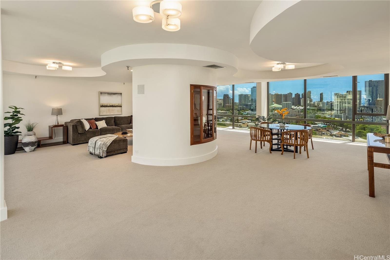 2,285 square feet of thoughtfully designed living space awaits in this exceptional Penthouse. Featuring 3 well-proportioned bedrooms and 3 bathrooms, this residence offers an abundance of versatility and comfort. The expansive layout features an open concept design, seamlessly integrating the living, dining, and kitchen areas. Abundant natural light fills the spaces through the expansive windows, creating a bright and airy ambiance. The Ohia flooring, newly installed Berber carpet, and modern lighting fixtures throughout add a touch of elegance and sophistication. The spacious kitchen boasts an abundance of countertop space and modern cabinetry, providing ample storage and preparation areas for the discerning chef. The primary bedroom and second bedroom offers an ensuite bathroom. Additional features include a spacious hallway, a private foyer, and breathtaking panoramic views of the city skyline and Diamond Head. Residents can also enjoy the on-site amenities, including a pool and tennis court, further enhancing the luxurious lifestyle. Meticulously maintained and tastefully updated, this condominium presents an ideal living opportunity in a desirable location.