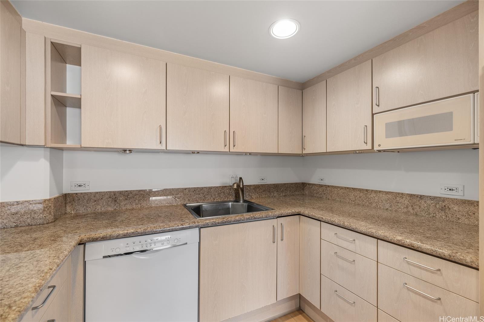 NEWLY ADJUSTED PRICING! LOWER FLOOR, MAKES THIS IDEAL! Uniquely designed unit with a built in closet system and a Kitchen table. ONE KALAKAUA SENIOR LIVING AT ITS BEST PRICE, BEST LOCATION ! NEWLY RENOVATED POOLSIDE CABANA AREA! Don't miss this opportunity to experience One Kalakaua 55+ Senior Living Community! Very affordable, large lower floor unit! Enjoy the senior lifestyle at One Kalakaua Senior Living (OKSL) including excellent daily meal service in the OKSL dining room, exercise classes, Tai-Chi classes, heated pool and jacuzzi, activities, events and excursions. Weekly doctor visits, OKSL assistance in living nursing services, Hale Ola Kino, an on-site 32-bed skilled nursing facility. Arts and crafts classes and game room activities. Weekly maid service and a professional staff of over 100 providing 24/7 emergency response service and daily bed checks. Relax and enjoy the One Kalakaua Lifestyle. Other fees include Club Dues- Verify exact amount. Some photos are virtually staged.