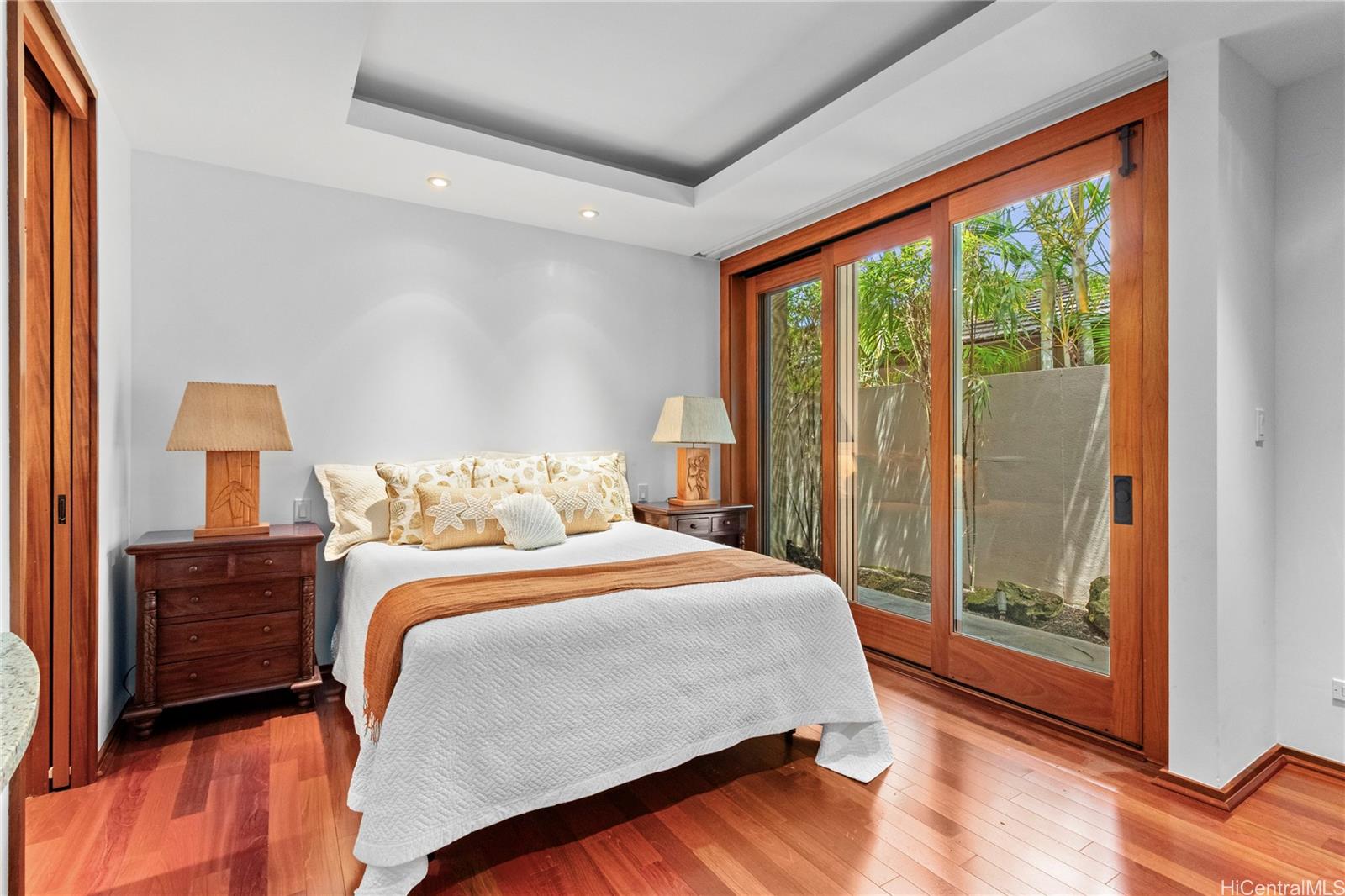 コンドミニアム暮らしに代わる、快適で贅沢でありながらメンテナンスの手間がかからないライフスタイルをご提供します。エレベーターでの待ち時間や廊下の心配もありません。専用ガレージに車で入り、プライバシーが守られたご自宅へ直行できます。カハラの中心に位置するモダンなアイランド サンクチュアリです。オープン フロア プランの 1 階建て住宅です。リビング、ダイニング、キッチン、主寝室はすべてプールと緑豊かな庭園に面しています。木製のトリムが施されたアーチ型天井、天窓、自然光を取り込むガラス張りの窓、家全体に施された美しい珊瑚石が建築の魅力を高めています。高級家電が揃った洗練されたシェフのキッチン。革新的な回転ガラス ドアから、滝と屋内水景のあるプールを見渡せます。屋内と屋外のシームレスな流れ。壁で囲まれているため、プライバシーも確保されています。メンテナンスが簡単な住宅です。鍵をかけて出かけましょう。アメリカ建築家協会ホノルル賞受賞デザイン。カハラ モールとカハラ ビーチまで数分です。