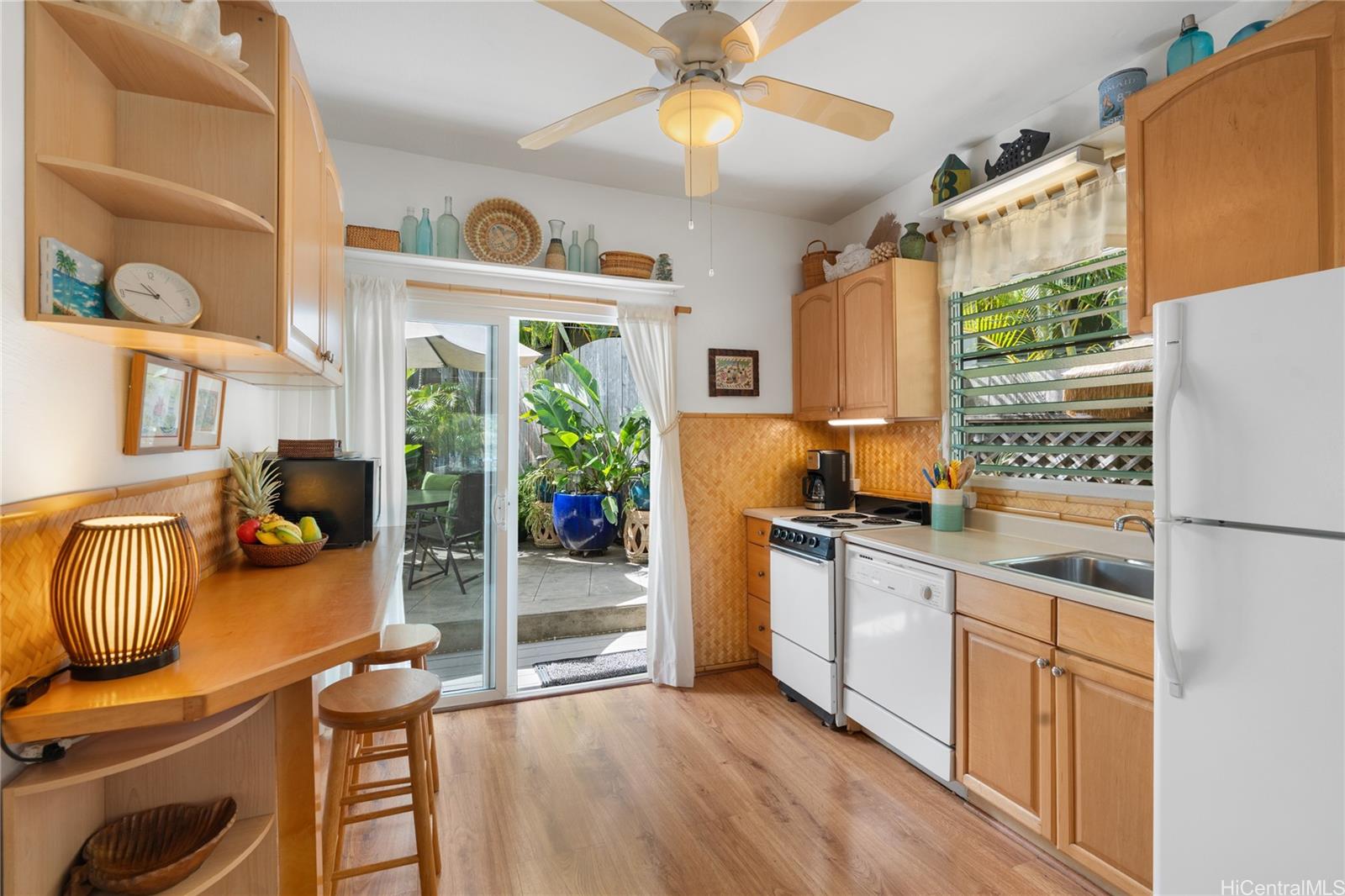 ターコイズブルーの海、柔らかな白い砂浜、そして典型的なアイランドライフスタイルへの玄関口!潮風に目覚め、通りを渡って世界的に有名なカイルアビーチへ。この魅力的な2ベッドルーム、2バスルームのコテージで、毎日がバケーションのような気分になります。メンテナンスの手間がかからない区画に建つ居心地の良い広さは、コンドミニアムのような管理費をかけずに、戸建て住宅のすべての利点を提供します。複数の部屋から公園と部分的な海の景色を楽しみ、プライベートベランダで屋外ダイニングをお楽しみください。カイルアビーチまたはラニカイビーチまで数分散策して、パドルボード、カイトボード、カヤック、シュノーケリング、オープンウォータースイミングをお楽しみください。正面玄関から自転車道、レストランまで徒歩圏内、公立チャータースクール、プライベートカントリークラブも近くにあります。このコテージは、カイルアのアクティブなアウトドアライフスタイルの中心に位置しています。