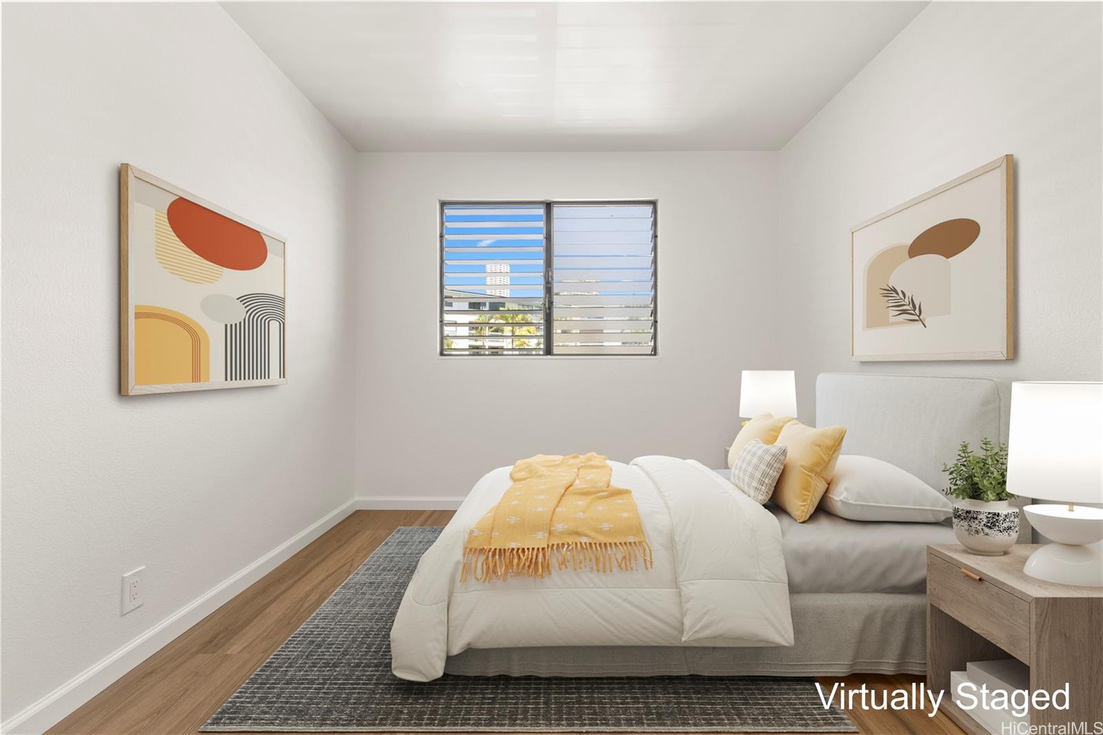 Welcome to Pearl Horizons, where modern design meets everyday convenience. This beautifully renovated 2-bedroom, 1-bath residence offers 794 sq ft of thoughtfully updated living space with classic & timeless finishes throughout. This residence also comes with two assigned parking stalls providing both convenience and practicality. Move-in ready, the home features a bright and open layout that feels fresh and inviting, highlighted by no popcorn ceilings for a clean, modern look. Enjoy the comfort of gentle cross breezes creating a light and airy atmosphere year-round while taking in the views of Pearl Harbor. Living at Pearl Horizons also means access to great community amenities, including a swimming pool and BBQ area - perfect for relaxing or spending time with friends. Conveniently located in the heart of Aiea just moments from Pearlridge Center, dining, schools, and freeway access. Whether you're a first-time homebuyer, investor or looking for a beautifully updated home in a prime location, this residence delivers the perfect blend of style, function and lifestyle convenience.