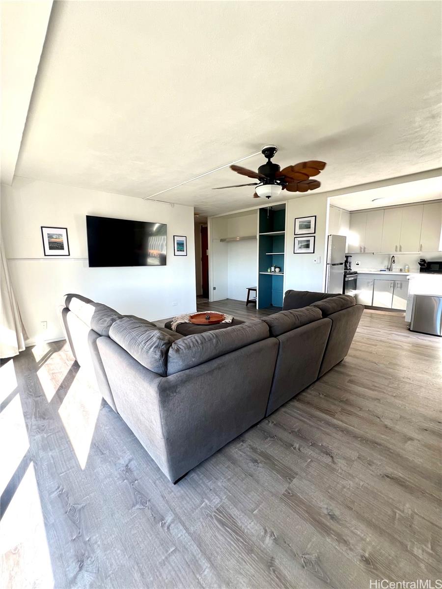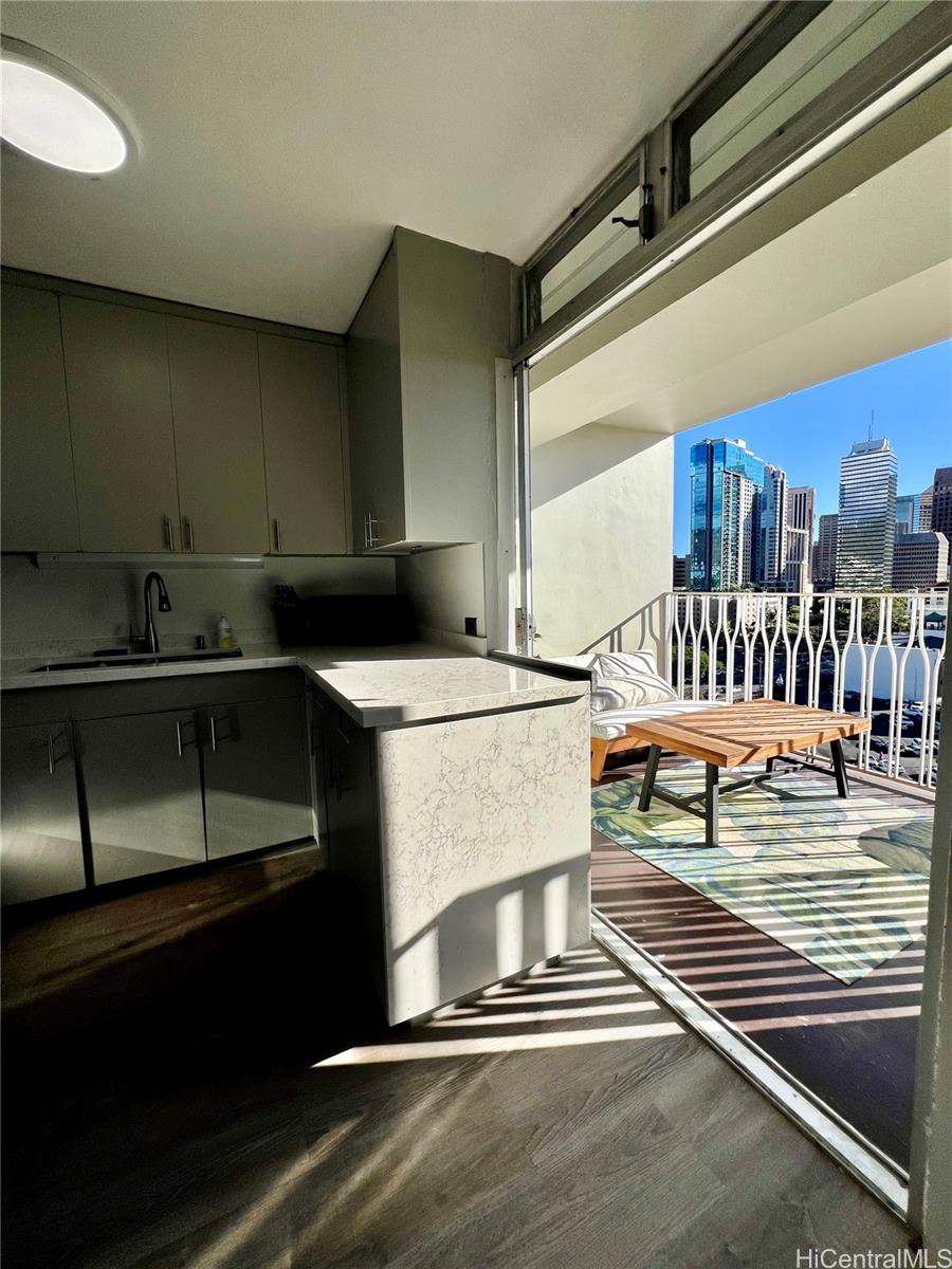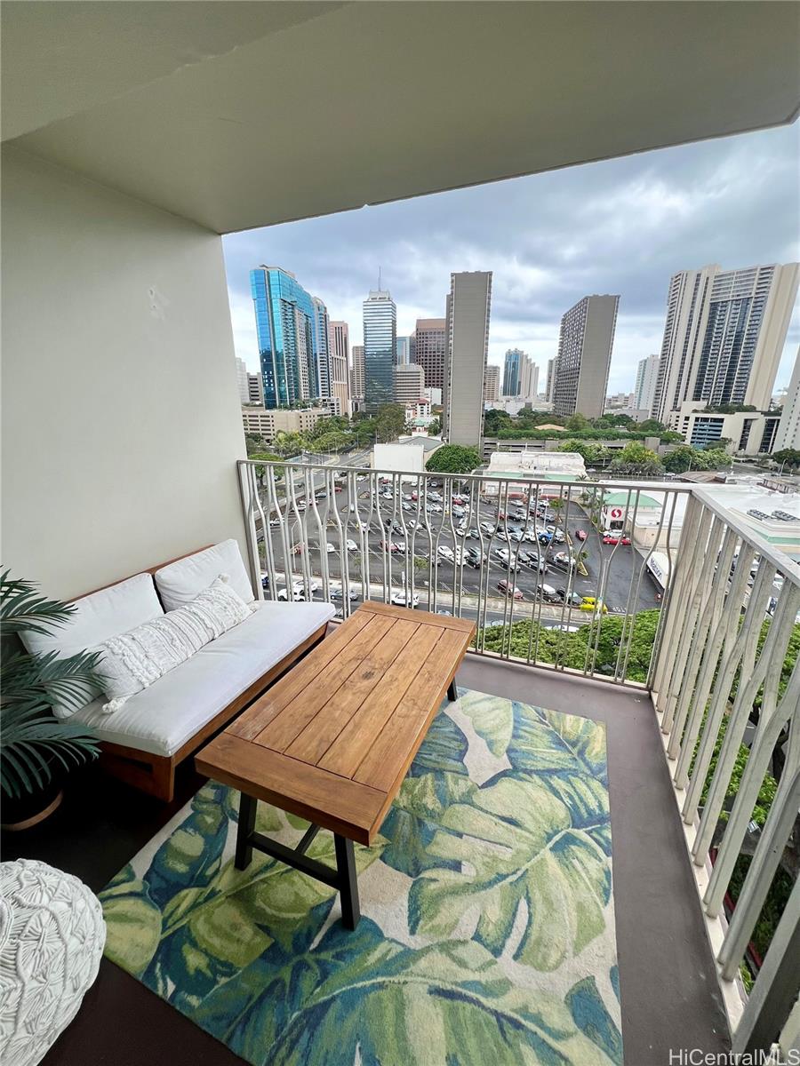 Enjoy breathtaking panoramic views of the mountains, ocean, sunset, and Aloha Tower from this spacious 674 sq. ft. corner unit on the 10th floor. Updated in 2021, the home features two bedrooms with window A/C units, a bright, breezy layout, and plenty of natural light. Experience refreshing trade winds and a comfortable, open living space perfect for relaxing or entertaining. This unit also includes 1 covered parking spot conveniently located right across the elevator, adding ease and security to your daily routine. Plenty of guest parking for your family and friends. Pet friendly for dogs under 45lbs and up to two cats.