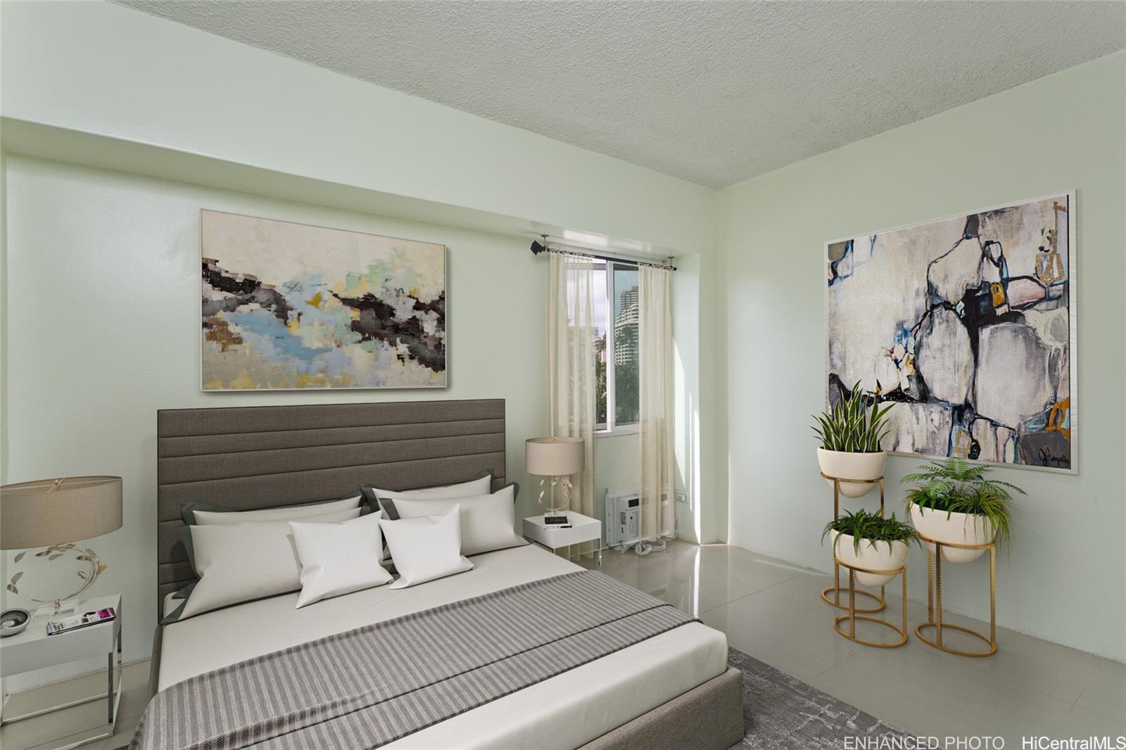 Bright, breezy 2-bed/1.5-bath on the preferred Fort DeRussy side of Keoni Ana, with elevated city and park views. Feels like a 6th-floor unit with tile floors, U-shaped kitchen, and a roomy lanai. Secure, VA-approved building with recent system upgrades; single monthly HOA covers internet, cable, water, sewer & more. Vacant, easy to show—motivated seller.