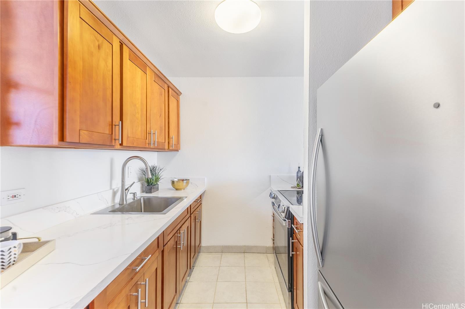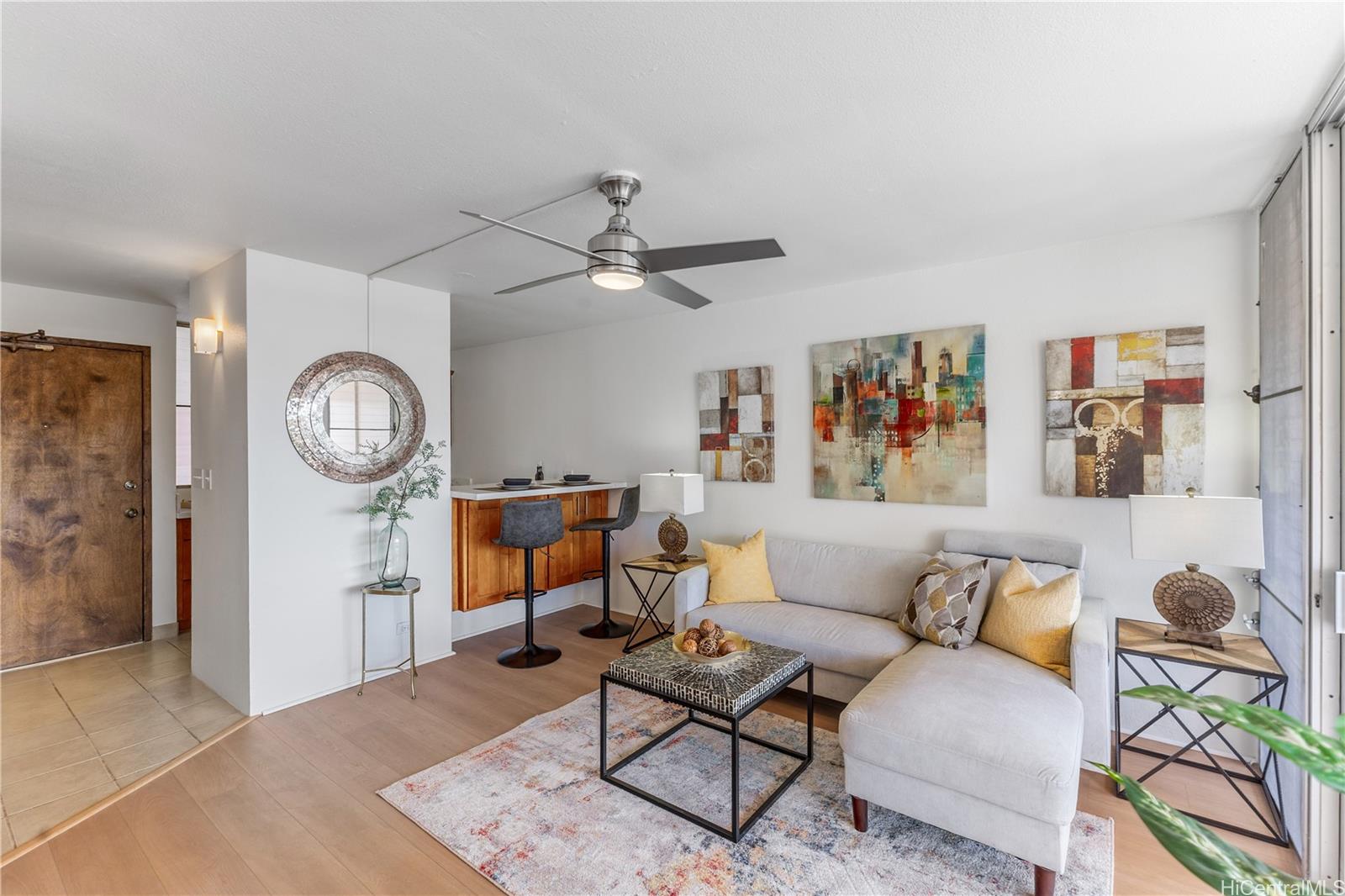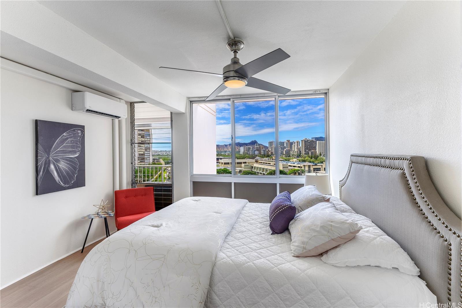 Welcome to this stunning gem in the heart of Honolulu. This fully remodeled, turn-key unit offers 2 bedrooms and 1 bathroom. Enjoy the luxury of a split AC system, sleek new vinyl flooring, fresh paint, and no popcorn ceilings, ensuring modern comfort and style. The kitchen and bathroom shine with quartz countertops and new appliances, making this home truly move-in ready. Step outside to your large private lanai and take in the spectacular views of Diamond Head—a perfect backdrop for relaxation. Amenities include a covered and secured parking stall, an association pool for those relaxing swims, and a pet-friendly environment for your furry companions. You’ll also love the convenience of having a washer and dryer right in your unit. Plus, the building has just started exciting updates with fresh paint and spalling work, ensuring everything looks and feels refreshed. Best of all, the HOA fee covers electricity, water, sewer, hot water, cable TV, and hazard insurance—giving you peace of mind and excellent value. Situated in a prime location, you’re just moments away from the vibrant life of Waikiki and the University of Hawaii, with easy access to city attraction.