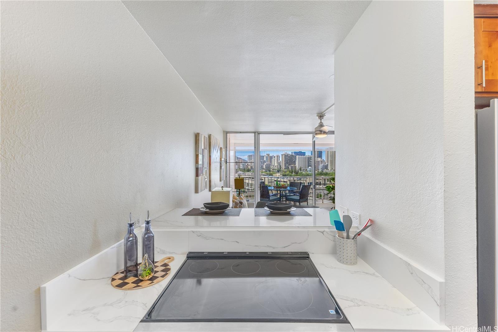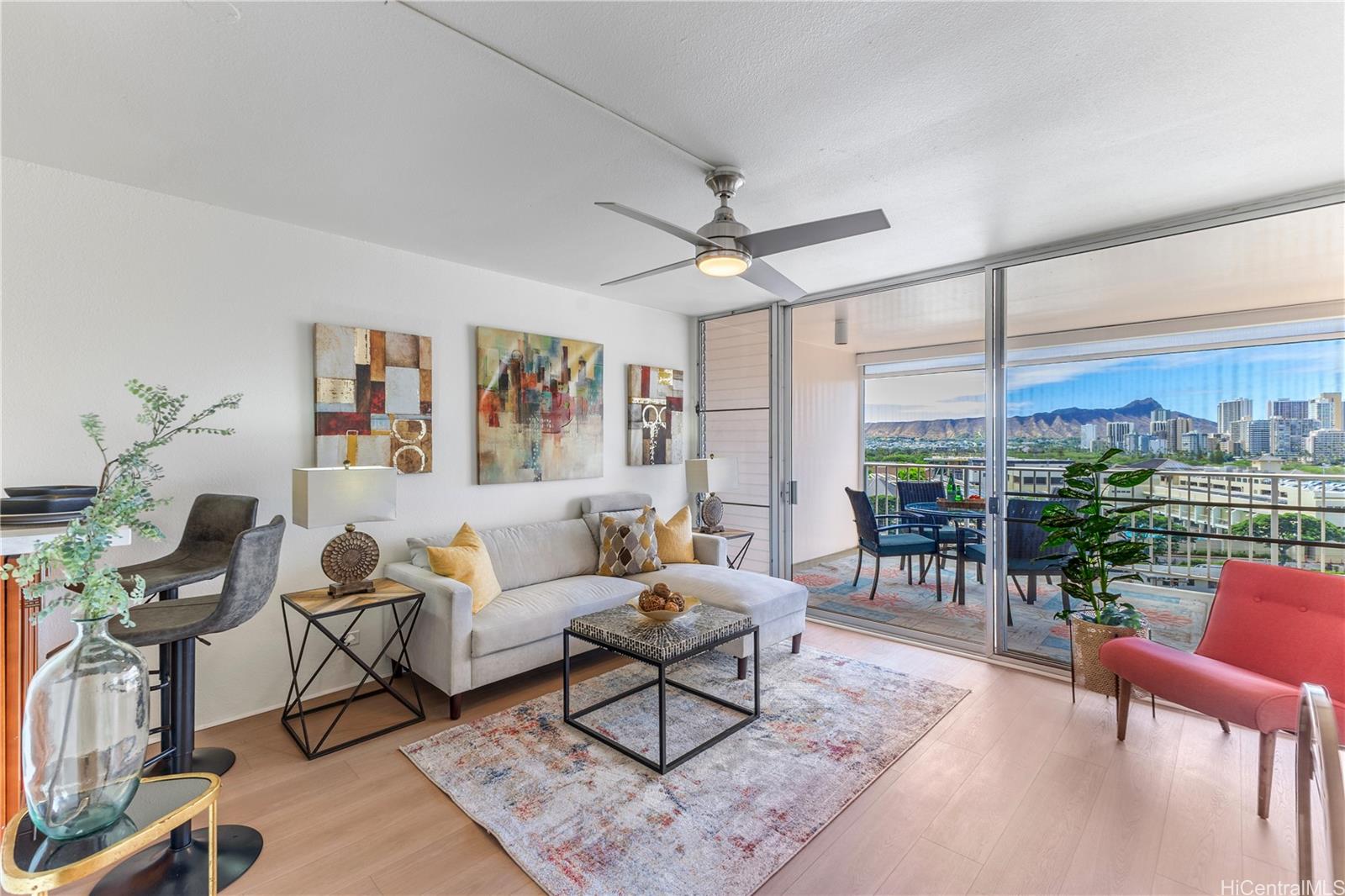 ホノルル中心部にあるこの素晴らしい物件へようこそ。全面改装済みのターンキーユニットは、ベッドルーム2室、バスルーム1室を備えています。スプリットエアコン、洗練された新しいビニールフローリング、塗り替えたての塗装、そしてポップコーン天井のない快適な空間で、モダンな快適さとスタイルをお楽しみいただけます。キッチンとバスルームはクォーツのカウンタートップと新しい家電が輝き、すぐにでもご入居いただけます。広々としたプライベートラナイに出れば、ダイヤモンドヘッドの壮大な景色が広がり、リラックスするのに最適な空間です。アメニティには、屋根付きの安全な駐車スペース、ゆったりと泳げる共同プール、そしてペットフレンドリーな環境などが含まれます。ユニット内に洗濯機と乾燥機が備え付けられているのも嬉しいポイントです。さらに、建物は最近、塗り替えと剥離工事などのエキサイティングな改修工事を開始しており、見た目も手入れもリフレッシュされています。何より、HOA(管理組合)費には電気、水道、下水道、給湯、ケーブルテレビ、そして災害保険が含まれており、安心してご利用いただけます。最高のロケーションに位置し、ワイキキの活気ある生活やハワイ大学からすぐの距離にあり、市内の観光スポットへも簡単にアクセスできます。