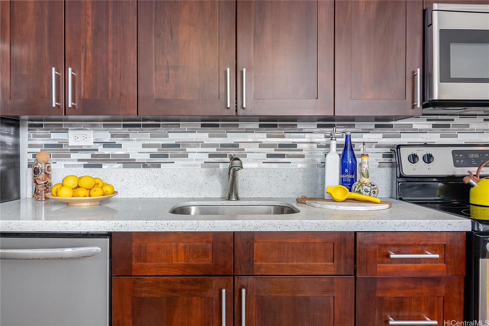 Experience the best of island living in this 1-bedroom, 1-bath home in the heart of Waikiki. Blending modern comfort with unbeatable convenience, this residence features stainless steel appliances, quartz countertops, and durable vinyl flooring in an open-concept kitchen perfect for both everyday living and entertaining.