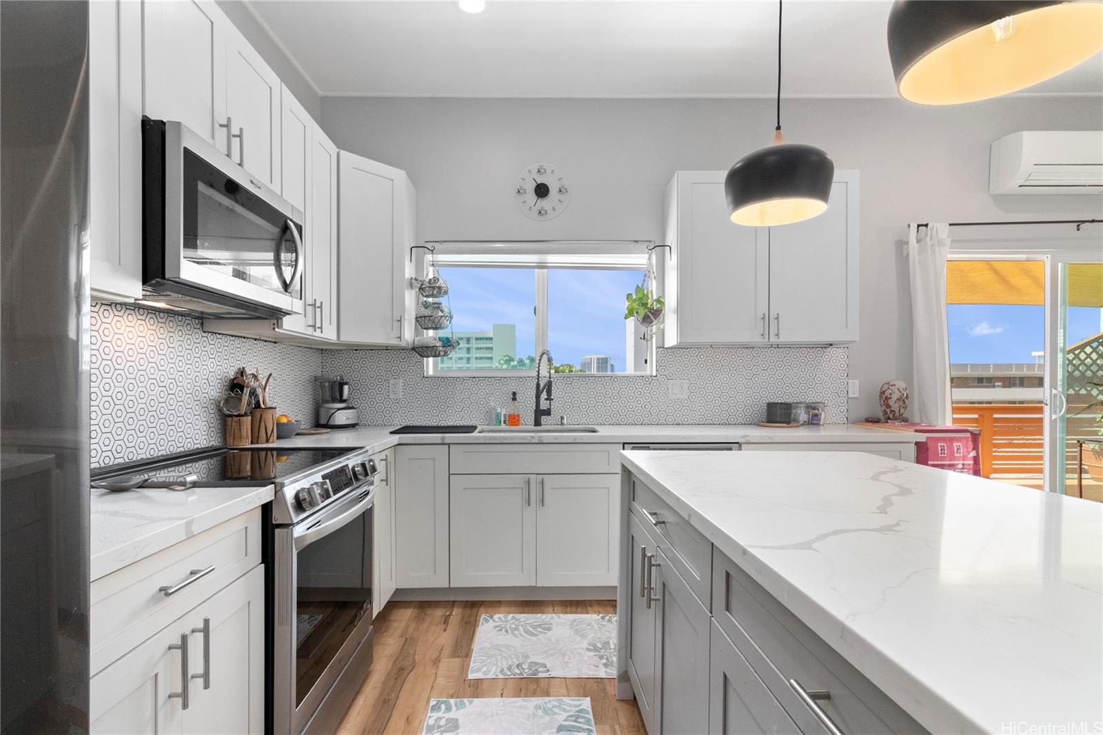and private entrance. Imagine entertaining with your modern kitchen of stainless steel appliances, induction range, open floor plan that flows out to the deck overlooking Honolulu with Diamond Head and peek-a-boo ocean views. Location is ideal with easy