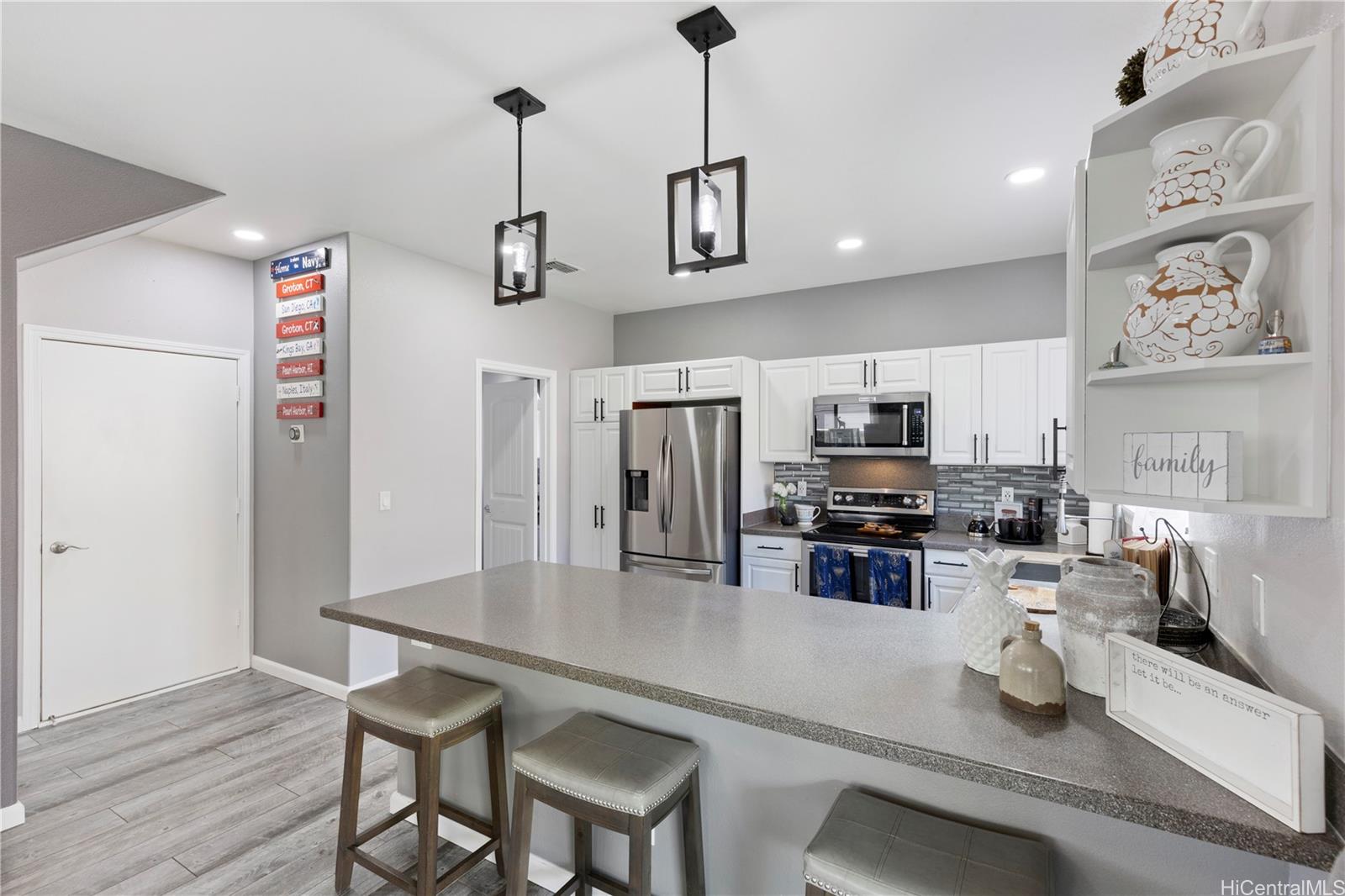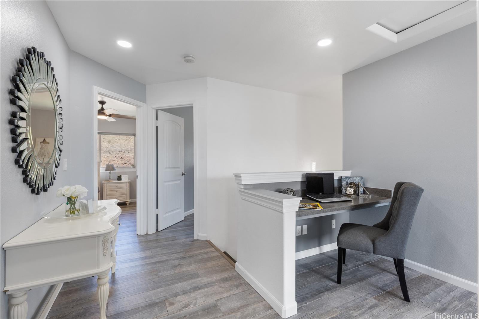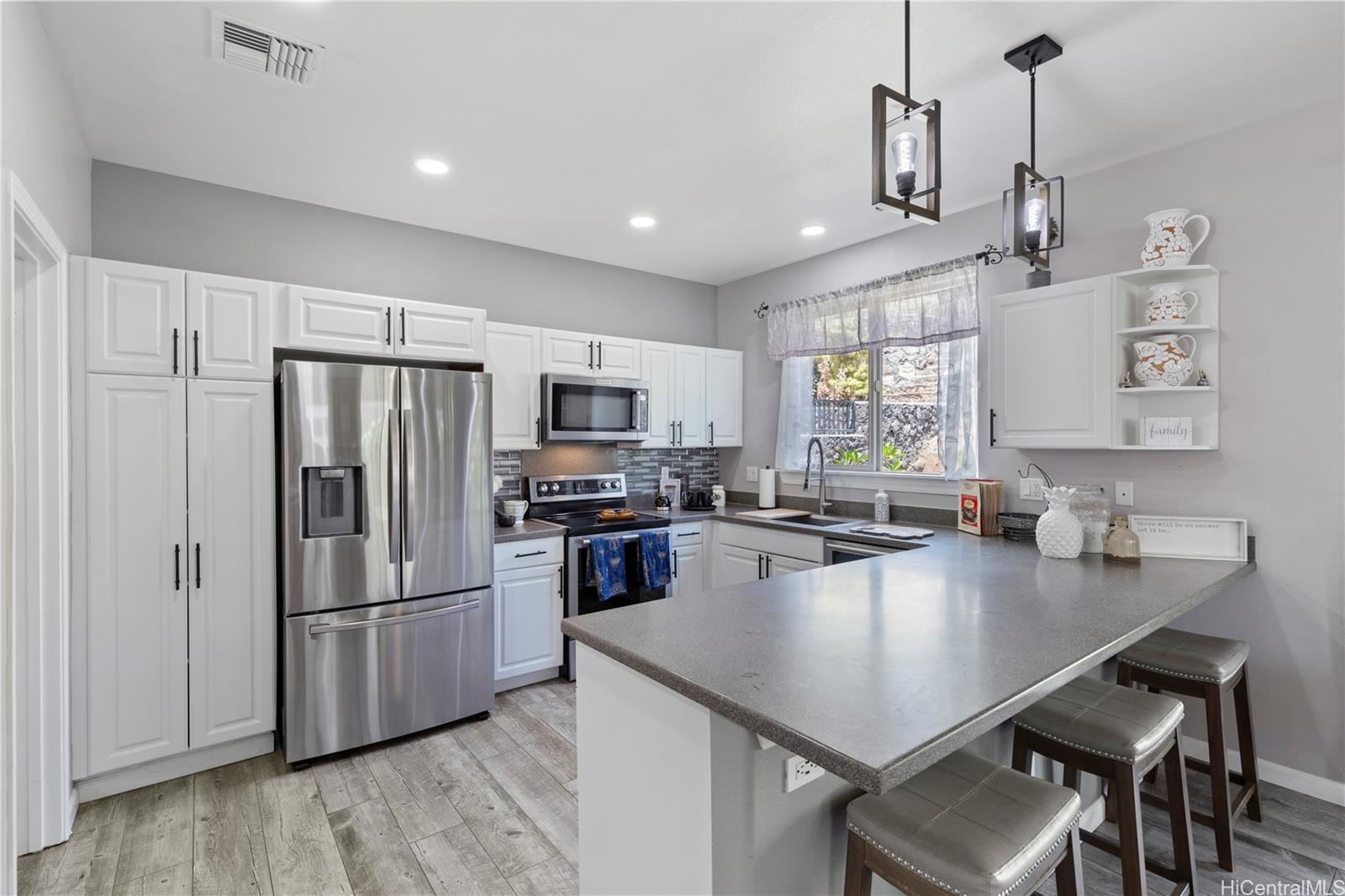 マカキロの人気エリア、カヒウェロにある静かな隠れ家へようこそ。美しく手入れされた2階建てのこの家は、広々としたリビングエリア、明るいオープンキッチン、快適なプライマリースイートを備えた思慮深いレイアウトが特徴です。涼しい風、渓谷の景色、そしてリラックスしたり、お客様をもてなしたりするのに最適なプライベートな裏庭で、アイランドライフをお楽しみください。家全体にモダンなアップグレードが施されており、全面改装されたキッチン、カスタムメイドの窓回り、そして26PVソーラーパネルと2つのバッテリーストレージ、太陽熱温水器、スマートサーモスタットを備えた省エネ設備が備わっています。ガレージは駐車と収納に十分なスペースがあり、私道にはゲスト用のスペースもあります。管理の行き届いたコミュニティの静かな袋小路に位置するこの物件は、静けさ、プライバシー、そして利便性を提供します。近くには学校、公園、ショッピング、高速道路へのアクセスがあります。