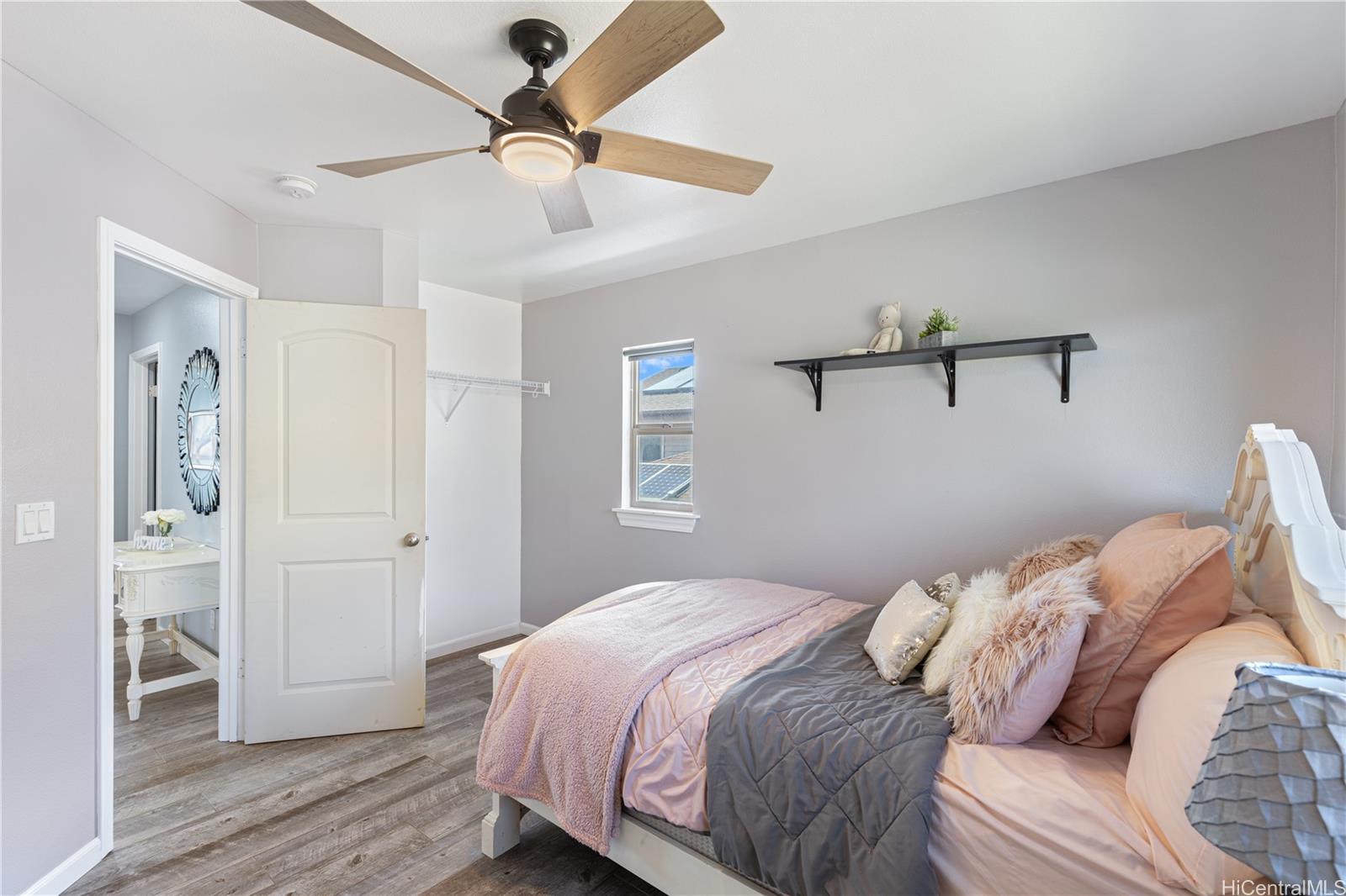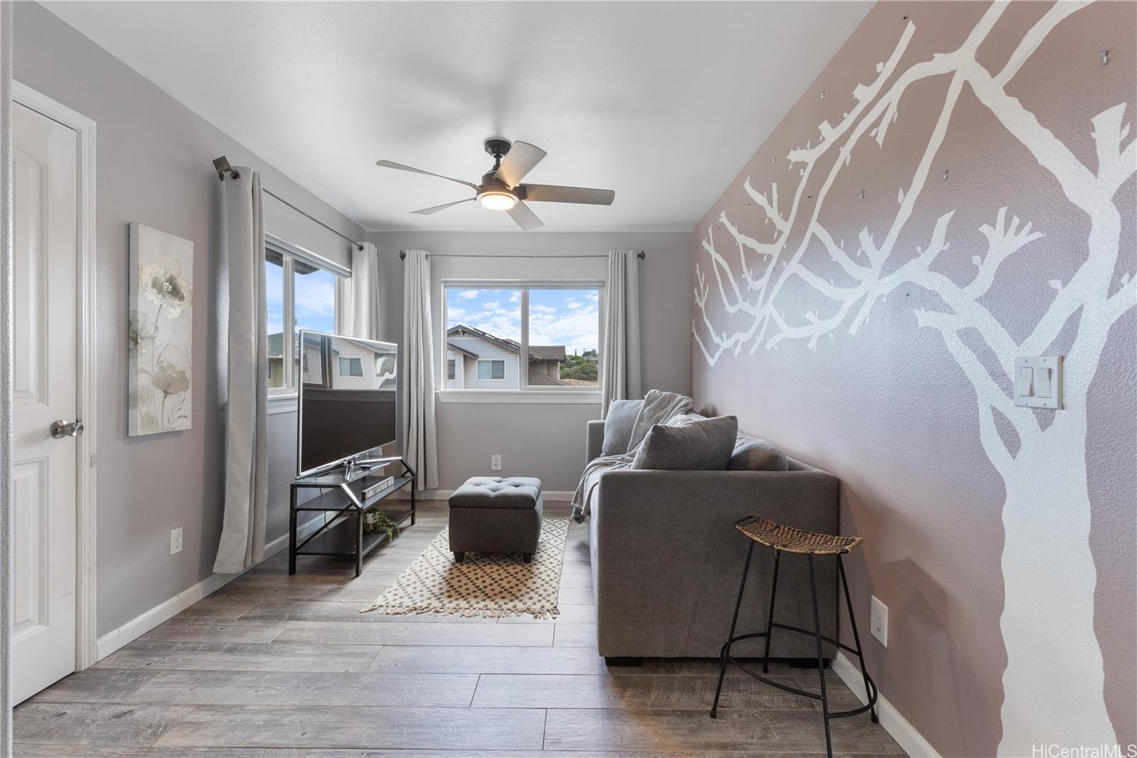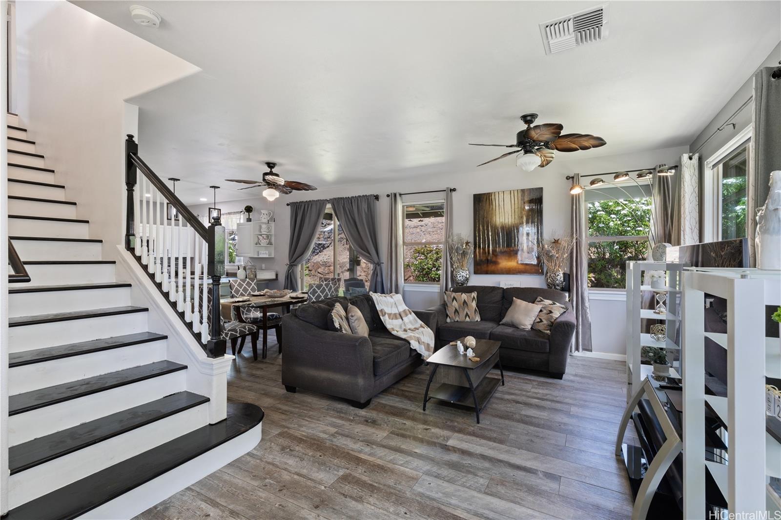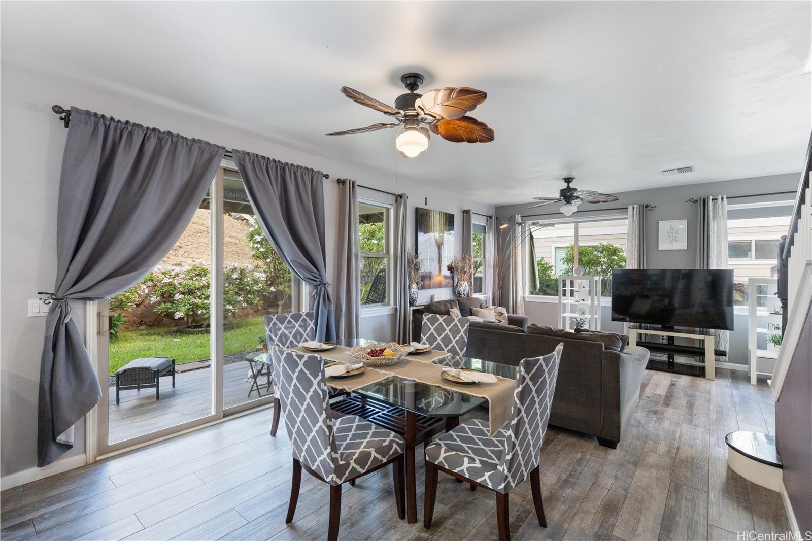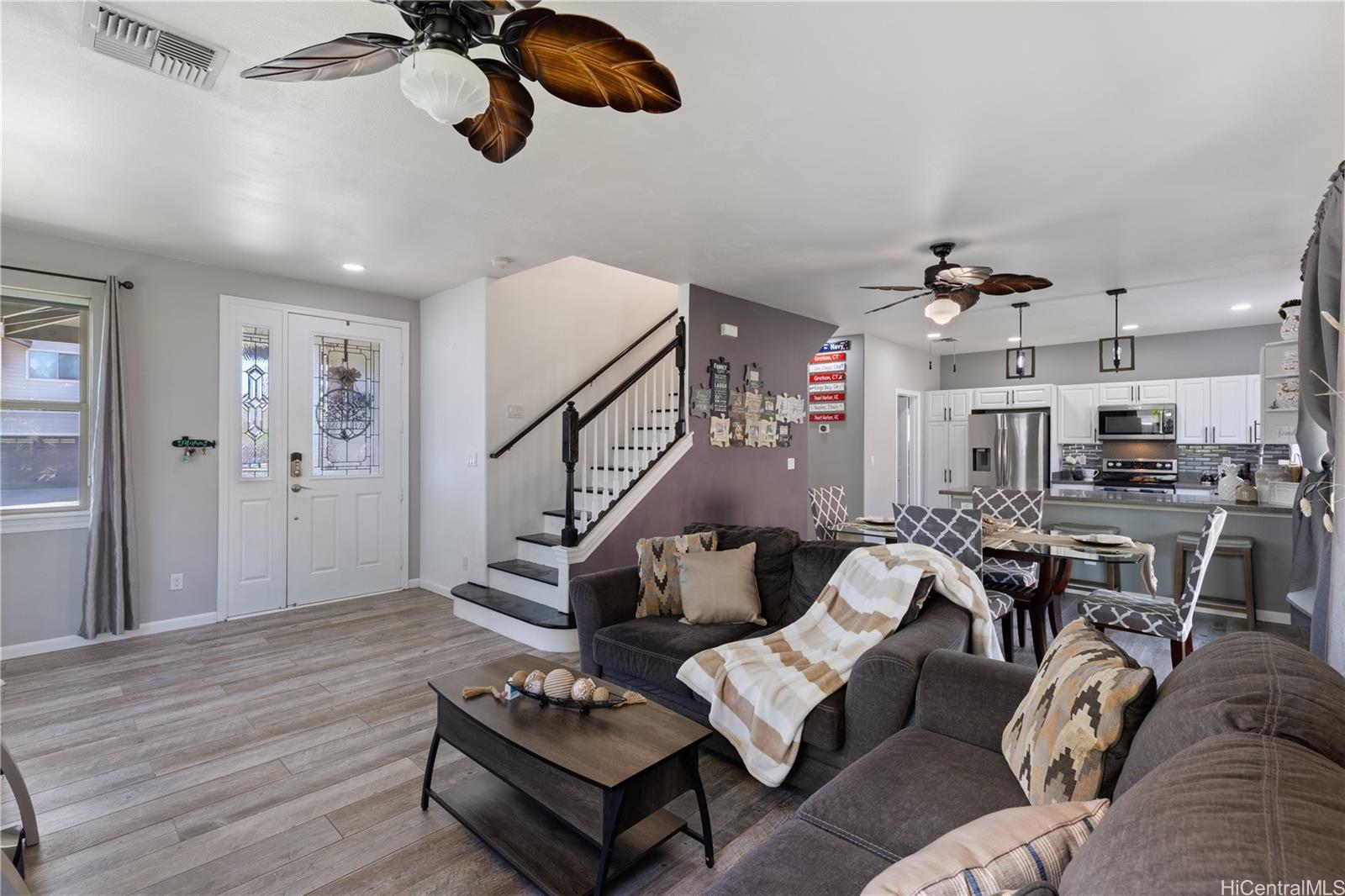 Welcome to your serene retreat in the desirable Kahiwelo neighborhood of Makakilo. This beautifully maintained two-story home offers a thoughtful layout with spacious living areas, a bright open kitchen, and a comfortable primary suite. Enjoy island living with cool breezes, valley views, and a private backyard perfect for relaxing or entertaining.