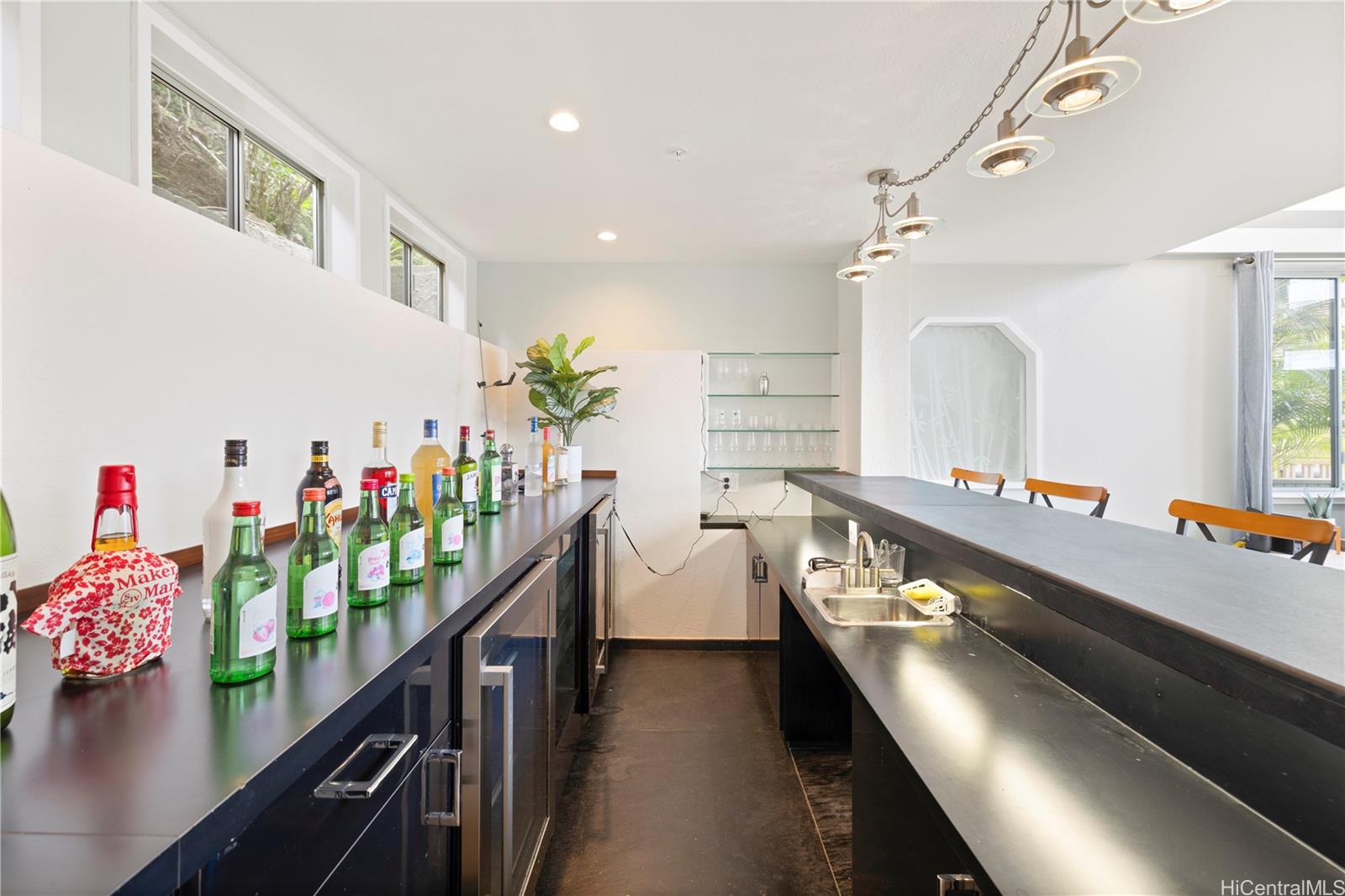 Welcome home - to your hillside retreat on almost half an acre with views and privacy that you will appreciate and enjoy. The spacious floor plan has 3 bedrooms, (including a generous primary bedroom with ocean views, walk in closets, and spacious en suite bath), 2.5 baths plus a very good size home office. There is an oversized living room complete with a bar and multiple lanai spaces which are ideal for entertaining. The back yard is an oasis with lava rocks terracing, waterfalls, and over 1,500 sq. ft. of deck space to complete a tropical island lifestyle. This home is just minutes from dining, entertainment, and quick access to H3 / Likelike / Pali hwys. PC system with battery backup is owned.