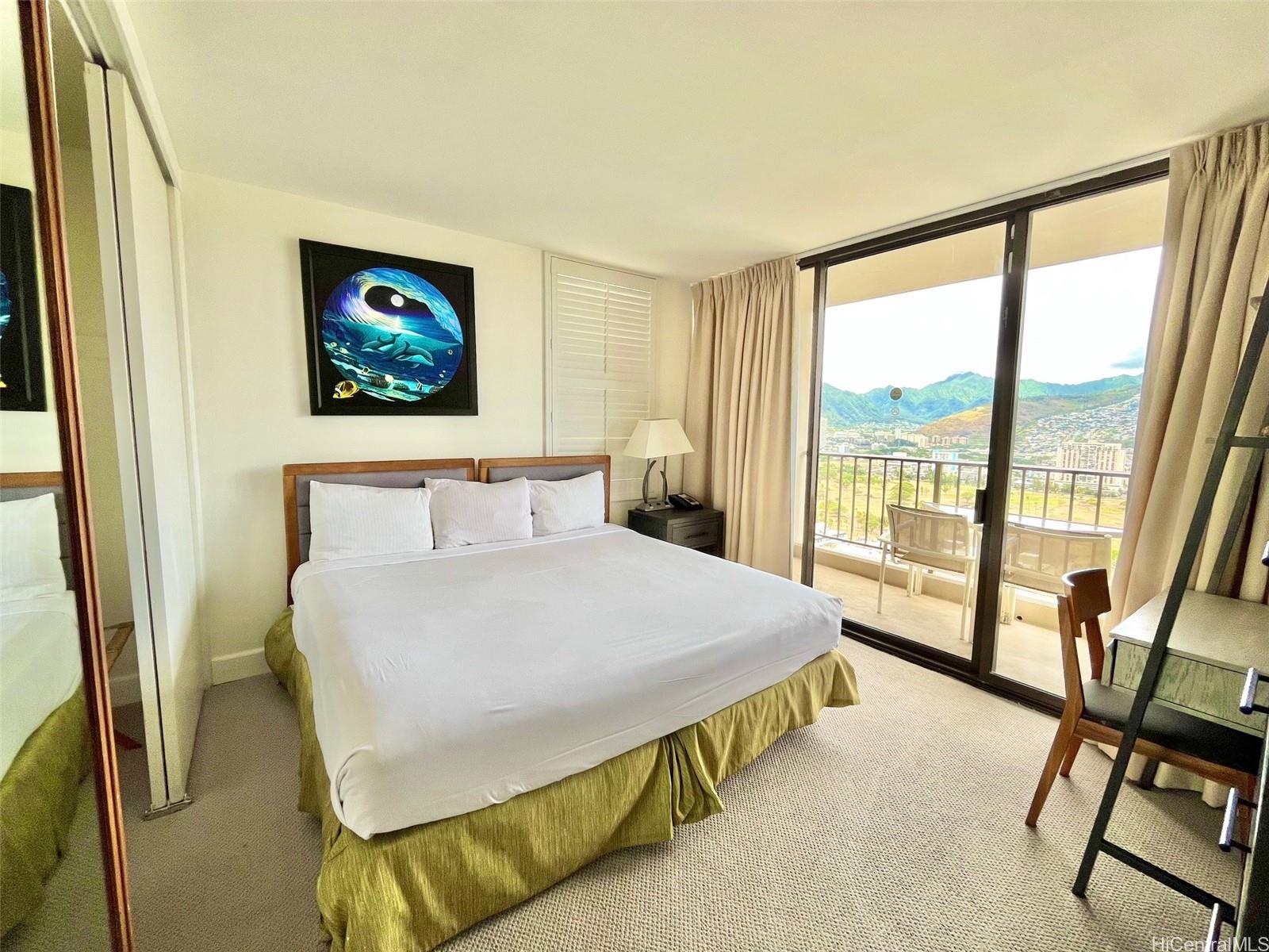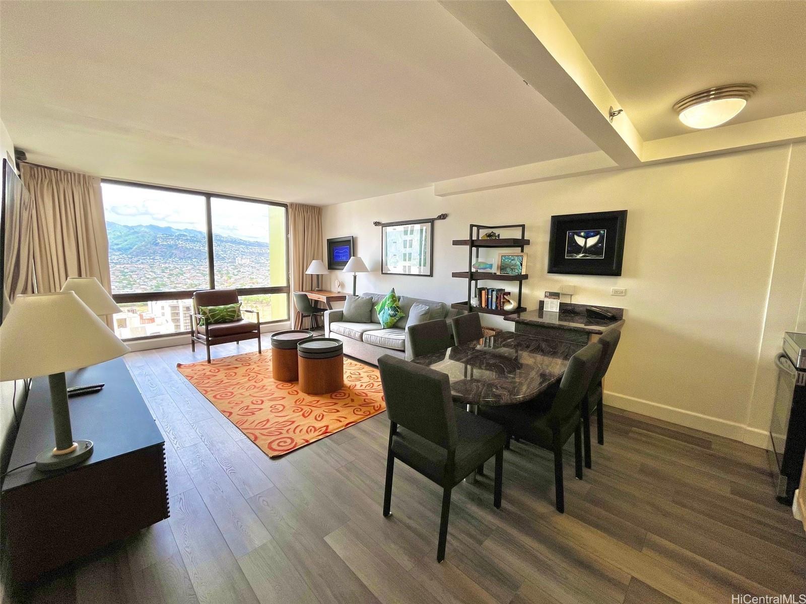 High floor, newly renovated, modernized corner unit with a great view and a nice cool breeze from the mountains. Renovations were done in 2024 and completed in 2025. Fully furnished 1 bedroom, 1 bathroom. Comes w/an NUC vacation rental permit and currently in the hotel rental program! Convenient location near the beach, park, zoo, shop and restaurants.