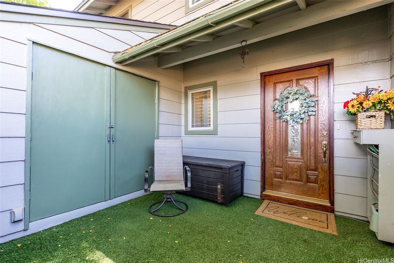 Welcome to Makakilo Hale One! This unique 3-bedroom, 2-bath home offers stunning ocean and garden views with a beautiful breeze that Makakilo is known for. Thoughtfully designed with charming architectural details, the home features built-in Murphy beds, ample storage throughout, and an oversized attic space, perfect for all your storage needs. The layout brings in natural light and cool breezes, creating a comfortable and inviting atmosphere. Enjoy the convenience of a full bathroom on the first floor, in-unit washer and dryer, and two assigned parking stalls. You'll also have access to a community pool and a great park just across the street. Located in Kapolei, you'll have everything you need in terms of shopping, dining, and entertainment, all just minutes away. Don’t miss this opportunity to own a one-of-a-kind home in beautiful Makakilo!