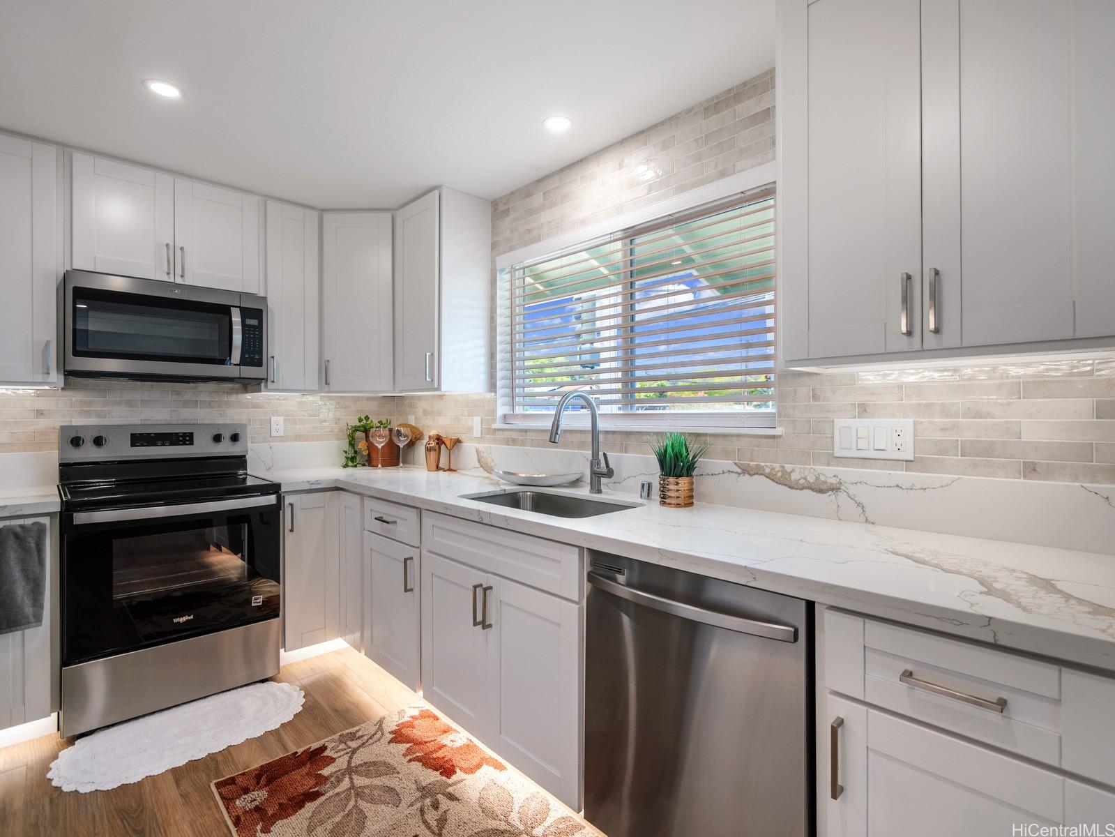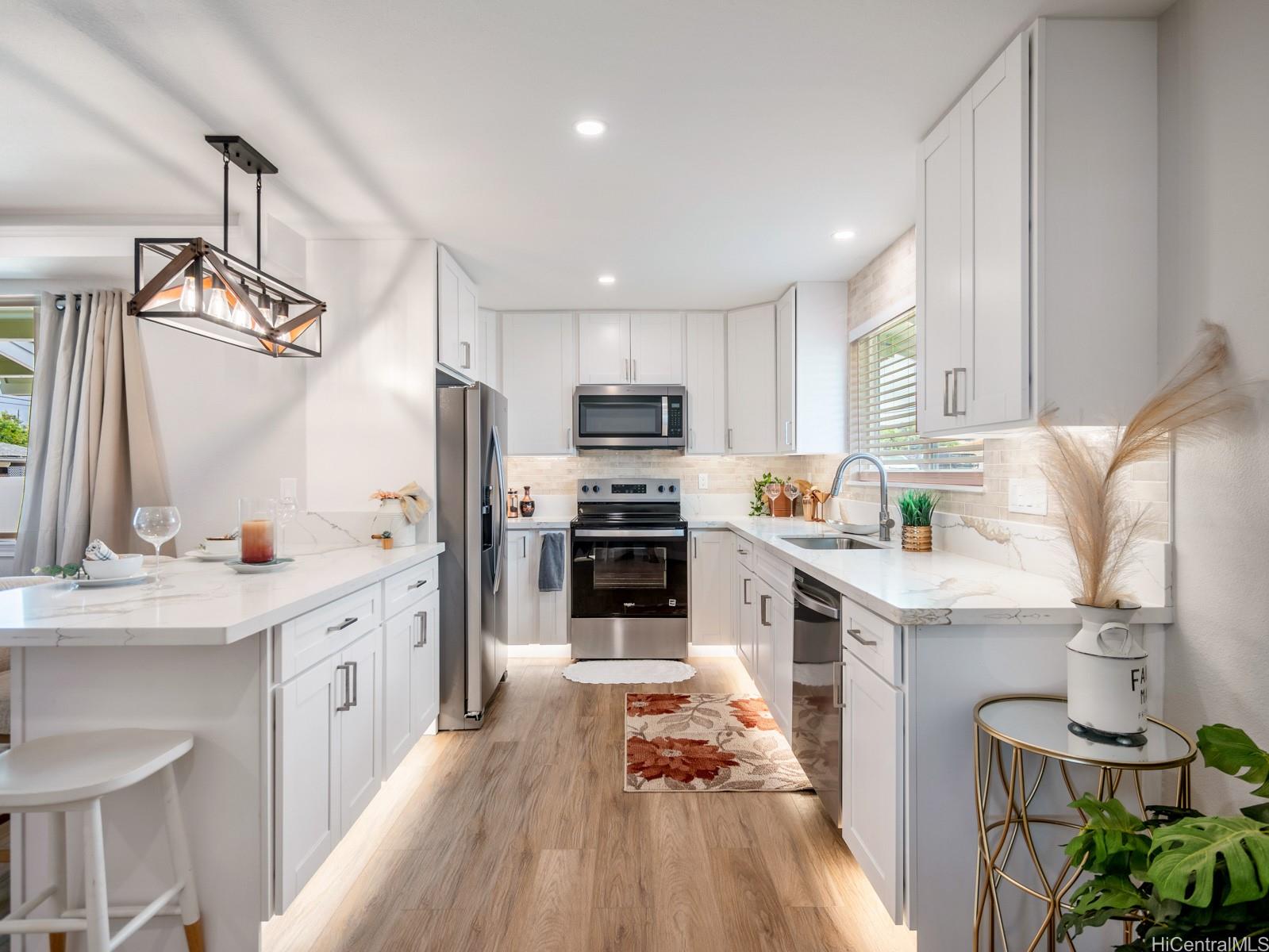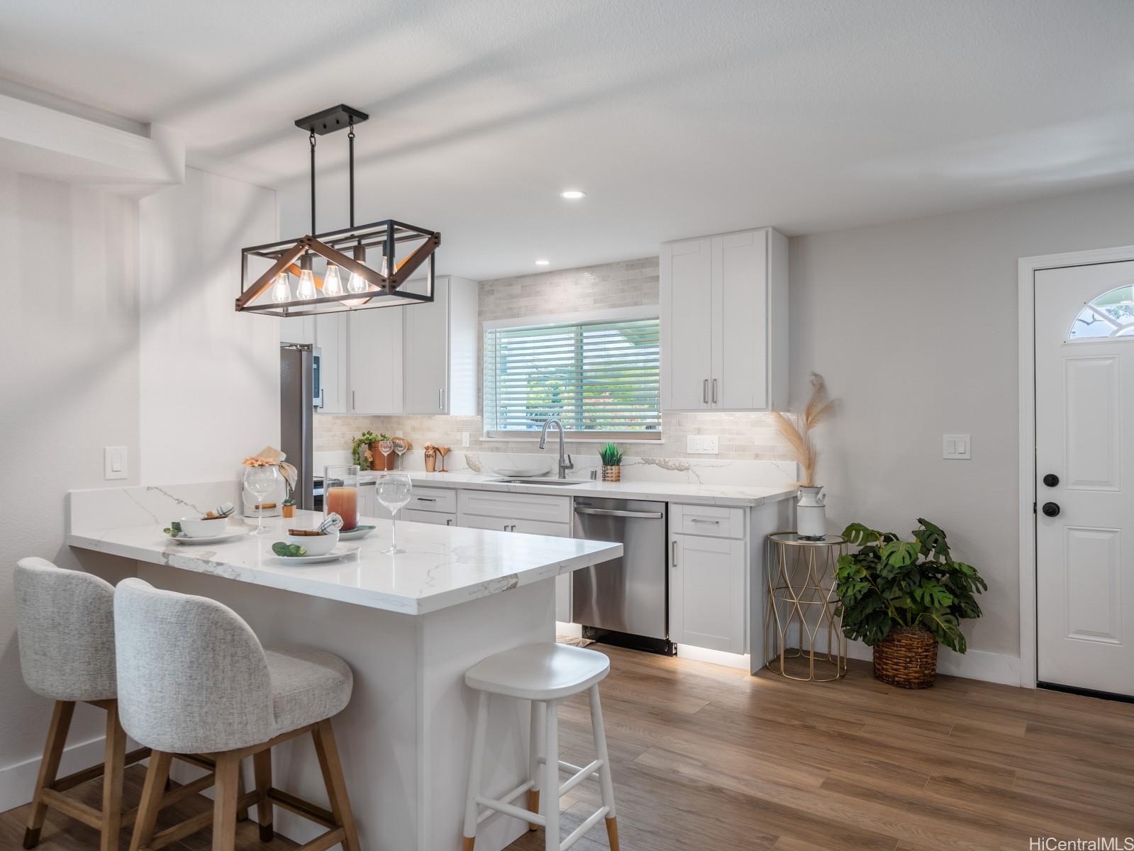 改装済みの素敵な平屋住宅。広々とした5ベッドルーム、3バスルームの住宅。ゲスト用の屋外ハーフバスも備えています。中心街に位置し、学校区、公園、ショッピングモール、レストラン、ジム、病院へのアクセスも便利。高速道路へのアクセスも良好です。全面改装済みのこの住宅は、モダンなデザイン、快適さ、機能性を兼ね備えています。中に入ると、ラミネートフローリング、スプリットエアコン、洗練されたクォーツカウンタートップと最新のワールプール製家電を備えた最新鋭のキッチンを備えた、居心地の良いオープンフロアプランが広がります。魅力的な主寝室は、男女別のウォークインクローゼット、ダブルシンク、広々としたダブルシャワーを備えた、まさに隠れ家のような空間です。収納やパーティーに最適な大型カーポートと、屋外での生活に最適な、美しく整備された庭も魅力です。テスラの太陽光発電システムをリースしているので、エネルギー効率も抜群です。この珍しい平屋住宅は、近代的なアップグレード、十分なスペース、そして他に類を見ない利便性を兼ね備えており、現代のライフスタイルに完璧にマッチしています。
