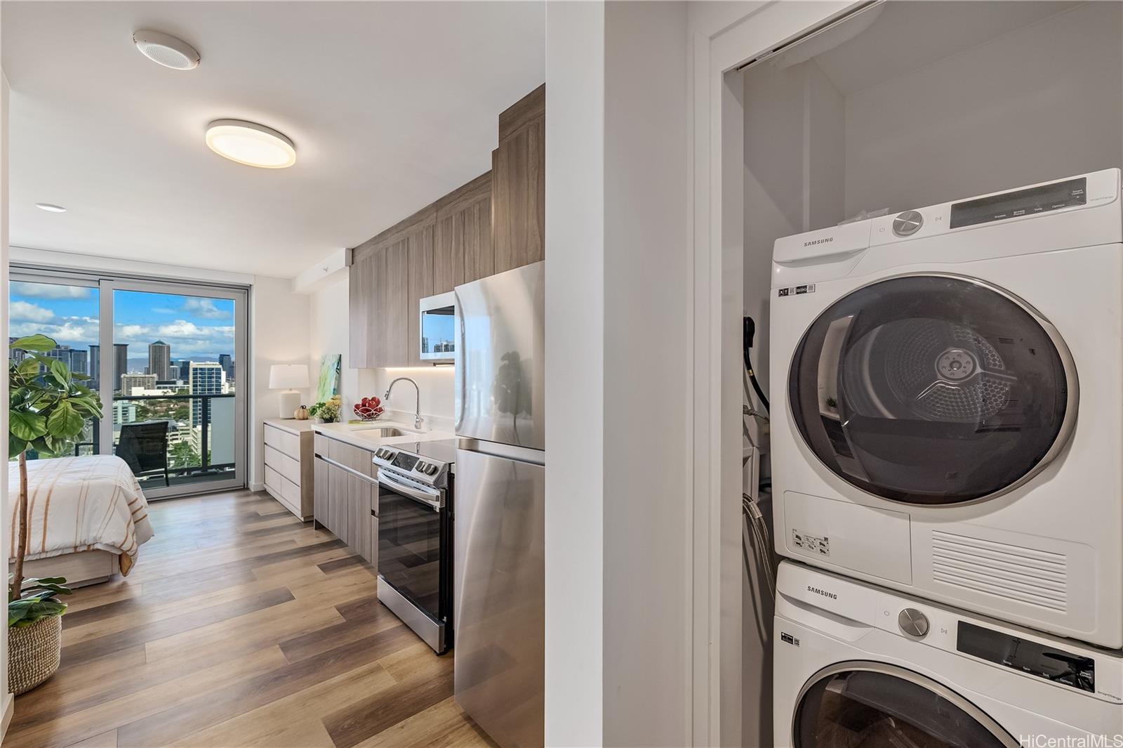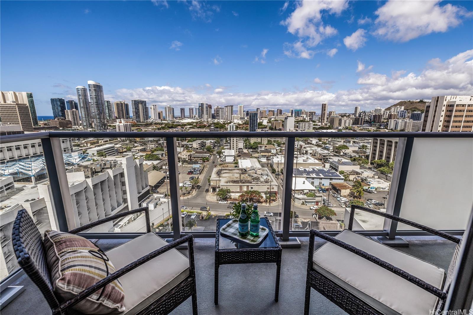 Discover urban living at The Park on Keeaumoku, a brand-new community in the heart of Honolulu. This rare studio in the Liona Tower features 324 sq. ft. of interior space plus a 71 sq. ft. lanai, creating a versatile retreat for relaxing, working, or entertaining. Modern design elements include floor-to-ceiling windows, quartz countertops, luxury vinyl flooring, split A/C, and energy-efficient appliances. Natural light fills the home, seamlessly blending indoor comfort with outdoor living. Located just minutes from Ala Moana Center, Ala Moana Beach, shopping, entertainment and dinning at your vicinity. Easy access to Waikiki and Kakaako, and Freeway. Resort-style amenities elevate daily life with an infinity pool, spa, fitness and yoga studios, co-working lounge, BBQ pavilions, a movie theater, sauna, and a landscaped central park. Offering comfort, convenience, and lifestyle, this home is a unique opportunity in one of Honolulu’s most exciting new developments.