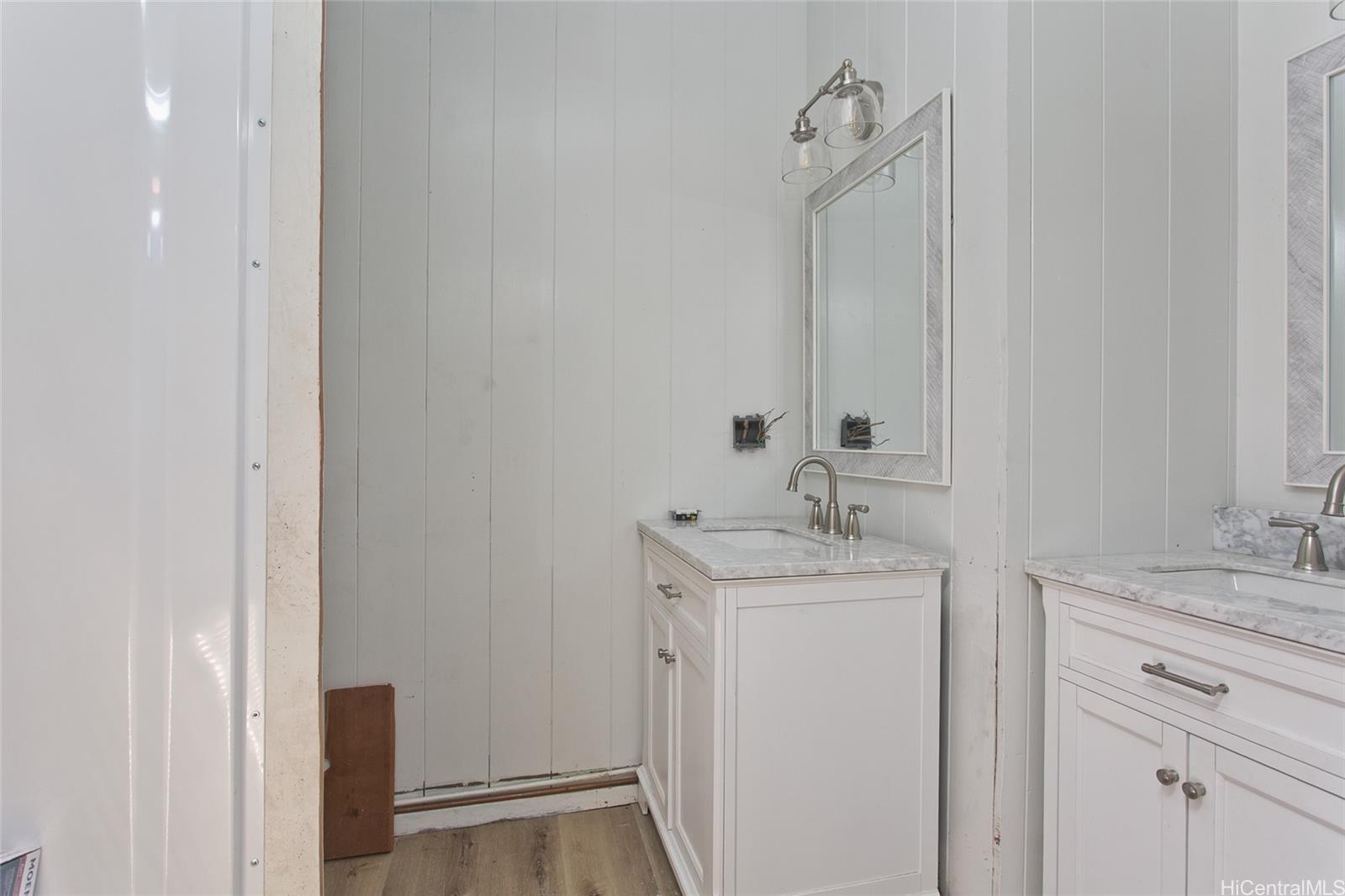 This uniquely spacious 4-bedroom, 3-bath home offers versatile living ideal for multigenerational households. This home features two separate washer/dryer hookups for added convenience. The extra-large covered recreation area/room with ensuite full bathroom is perfect for gatherings, guests, or a large den/home office/keiki play space. A fenced yard provides privacy (or pets), while the newly installed garage door allows for flexible use as additional living space, recreation area or covered parking. Conveniently located near sandy beaches and turquoise waters, you'll have easy access to swimming, surfing and year-round fun. This home offers both comfort and the best of the island lifestyle you've been dreaming of. Sq ft does not match tax records.