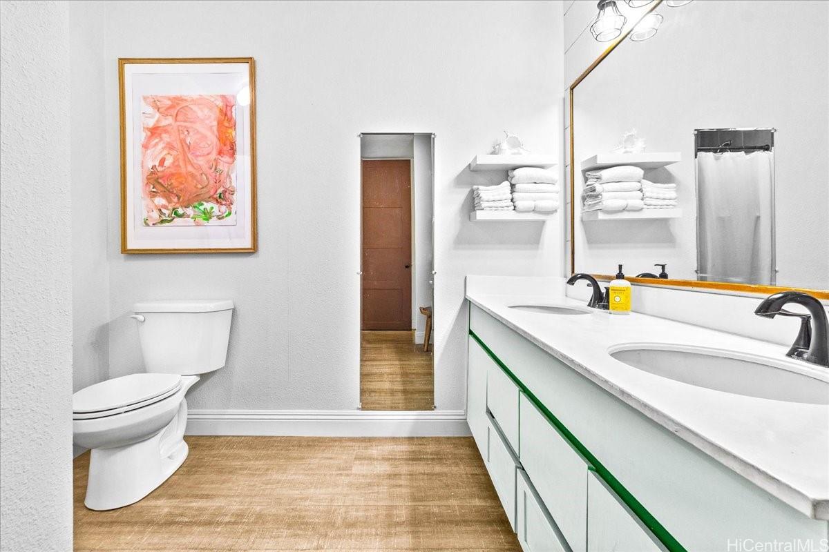 This beautifully updated 2-bedroom, 2-bathroom condo comes with 2 side-by-side, covered parking stalls and a storage unit, offering both comfort and convenience in the heart of Kailua. The home features an oversized 266 sq ft lanai overlooking lush green space and gardens—perfect for relaxing or entertaining.