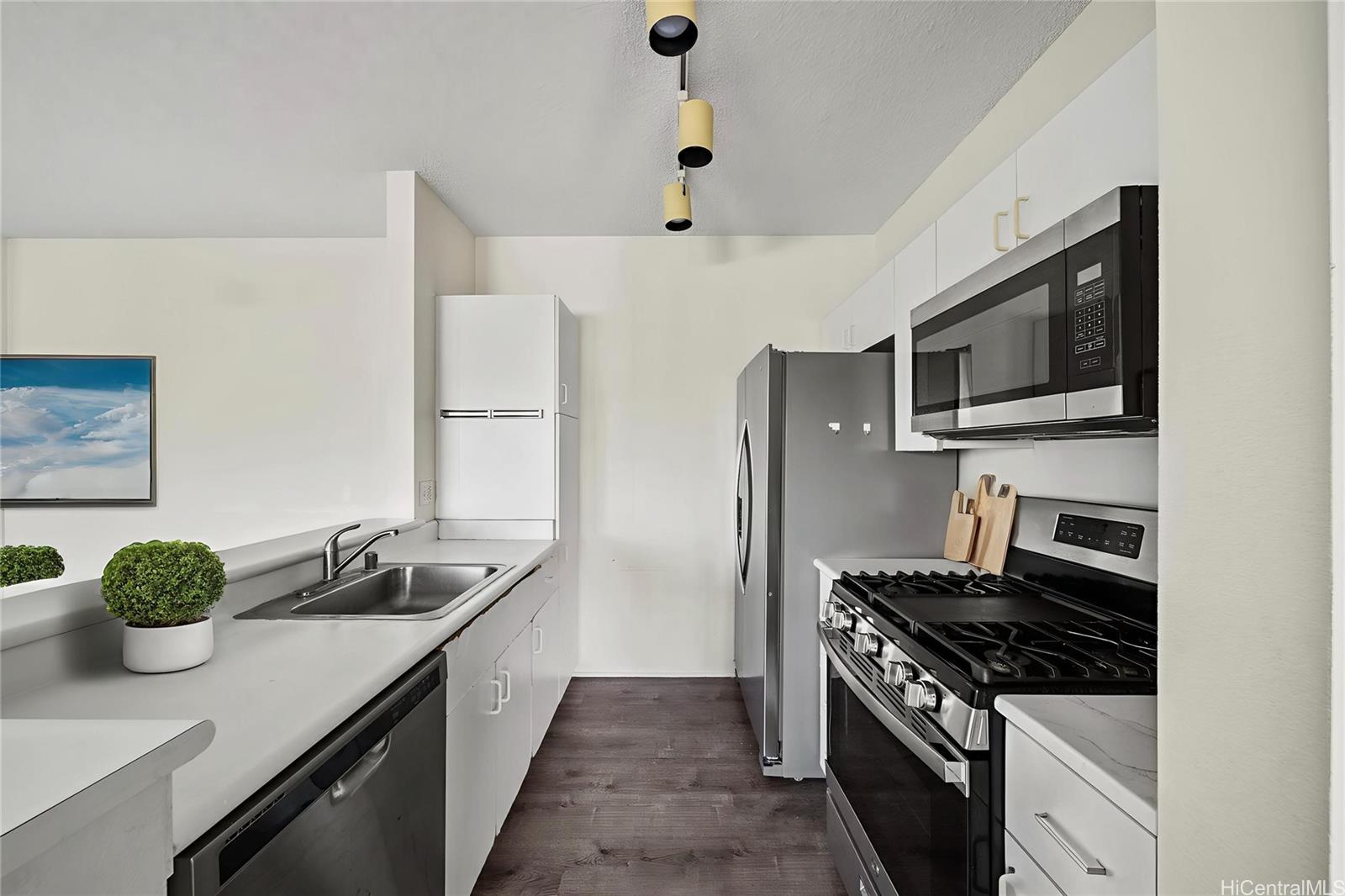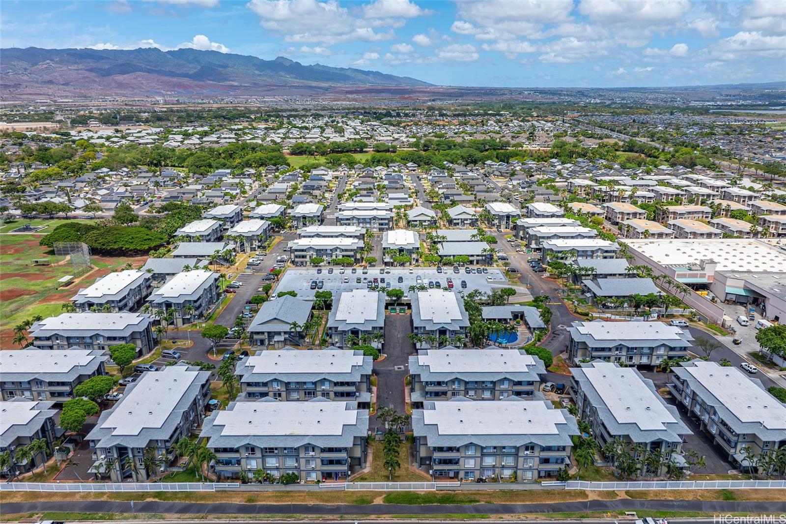 Welcome to Sun Rise in Ewa Beach! This beautifully maintained 2-bedroom, 2-bath condo is located on the third floor, offering extra privacy, improved airflow, and no upstairs neighbors. The open-concept living area is bright and inviting, featuring high ceilings, durable luxury vinyl plank flooring, and access to a private lanai with mountain views—perfect for relaxing after a long day. The kitchen is designed with function in mind, featuring ample cabinet storage, a gas stove, stainless steel refrigerator, built-in microwave, and dishwasher. Both bedrooms are generously sized, with the primary suite offering its own ensuite bath for added privacy. Additional highlights include two parking spaces (one assigned and one carport), in-unit laundry hookups, and well-kept community grounds. Residents of Sun Rise enjoy access to amenities including a pool, BBQ areas, car wash station, and recreation facilities. Centrally located near shopping, dining, schools, and parks, this home combines comfort and convenience in one of O'ahu’s fastest-growing neighborhoods, just minutes from the “Second City” of Kapolei.