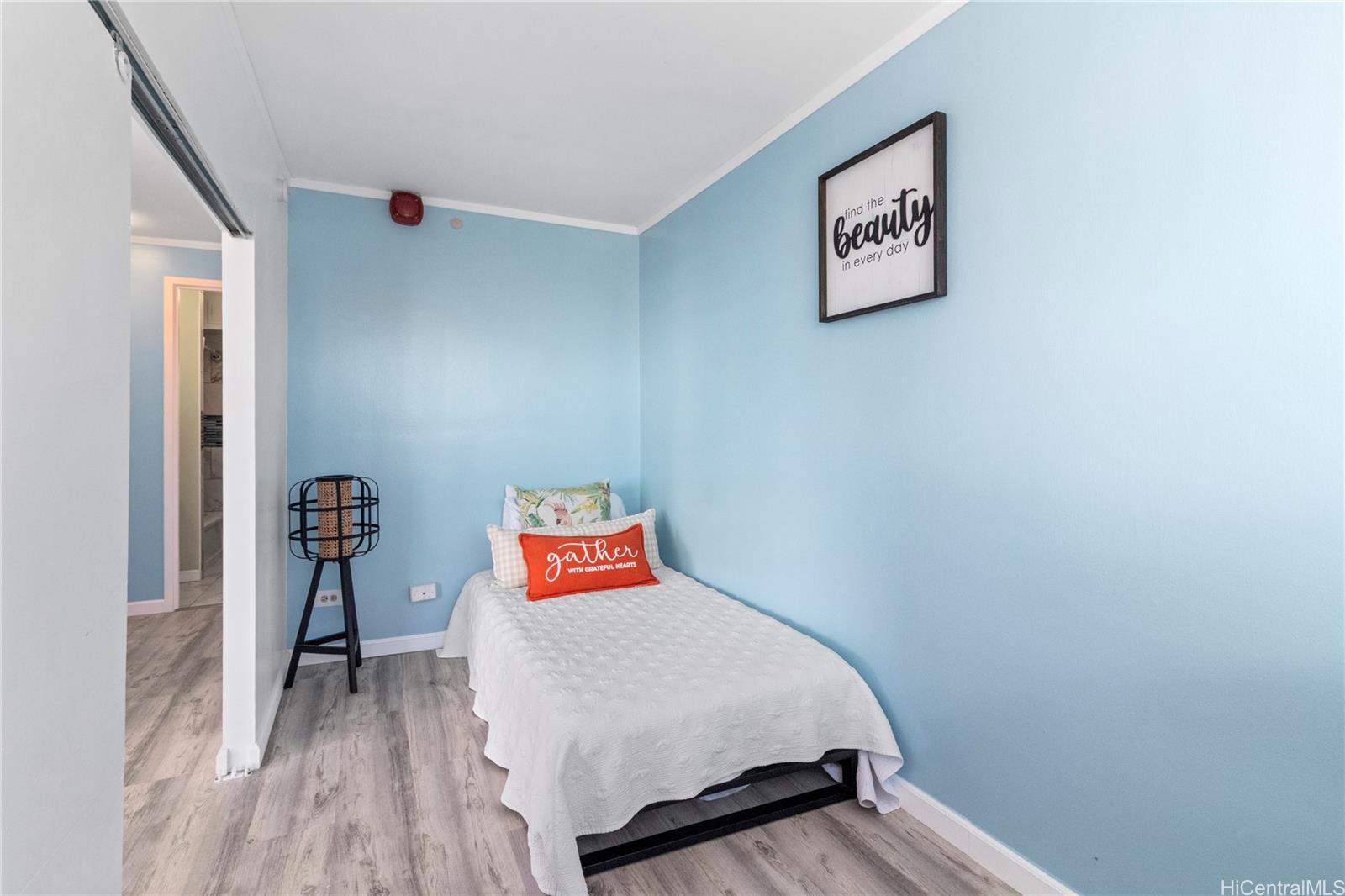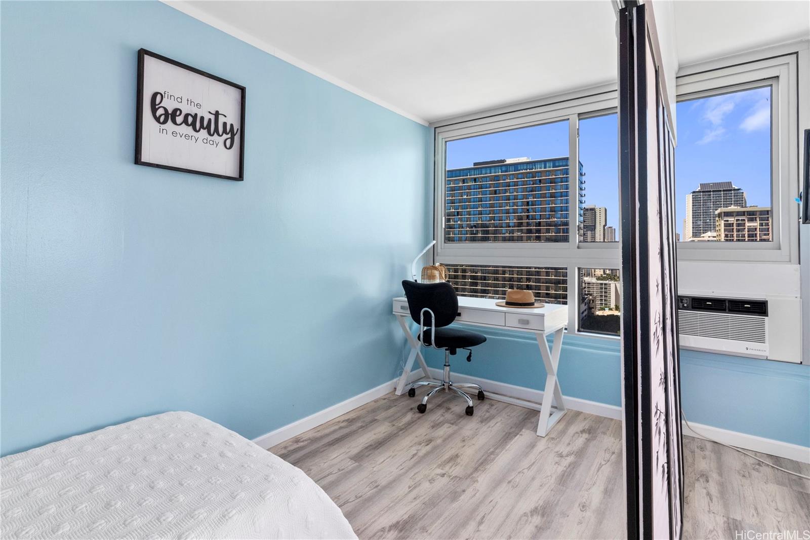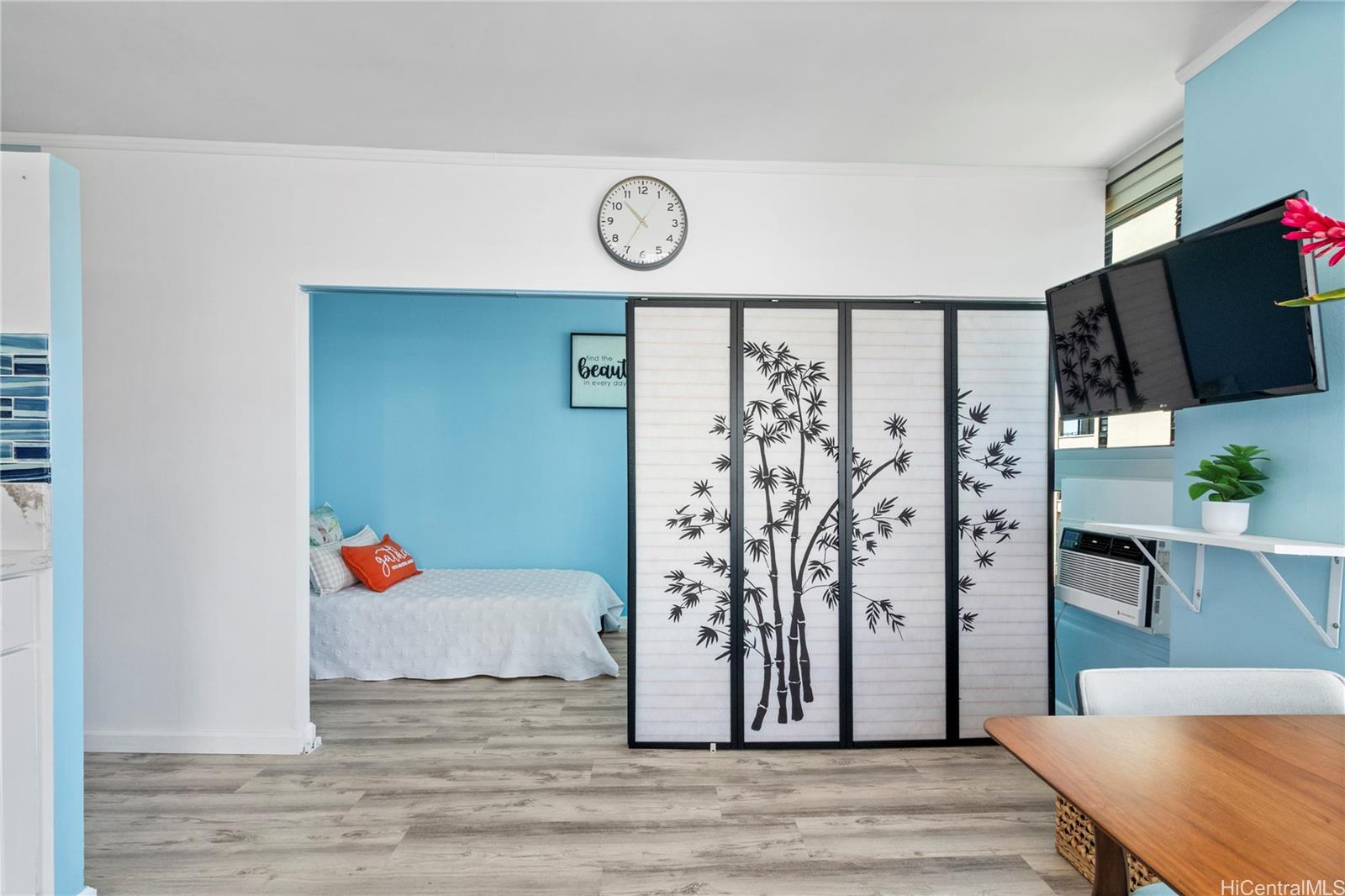 Enjoy ocean, mountain, city, canal & golf course views from this fully furnished, move-in ready condo. Easy to show! Experience the best of island living at Waikiki Townhouse, a secured, pet-friendly building in the heart of Waikiki with only four units per floor. All special assessments are paid off. No sandwich lease-Fee Simple ownership. This spacious corner/end 1BR/1BA has been fully renovated and includes a versatile bonus room with rolling shoji doors, perfect for a second bedroom or office space. Recent upgrades include popcorn ceiling removal, new windows/railings, fresh paint, luxury vinyl flooring, tiled bath and shower, updated kitchen and bath with new cabinets, countertops, backsplash, custom A/C housing units, and much more! Electrical panel will soon be upgraded and paid for by the Seller. The enclosed lanai extends the living space, while signature large windows showcase panoramic views. Relax on the rooftop deck with breathtaking 360° views, ideal for sunsets after a day at world-famous Waikiki Beach, just minutes away. Building amenities include a full-time resident manager, guest parking, and surfboard/bike storage. Assigned parking available via short waitlist.