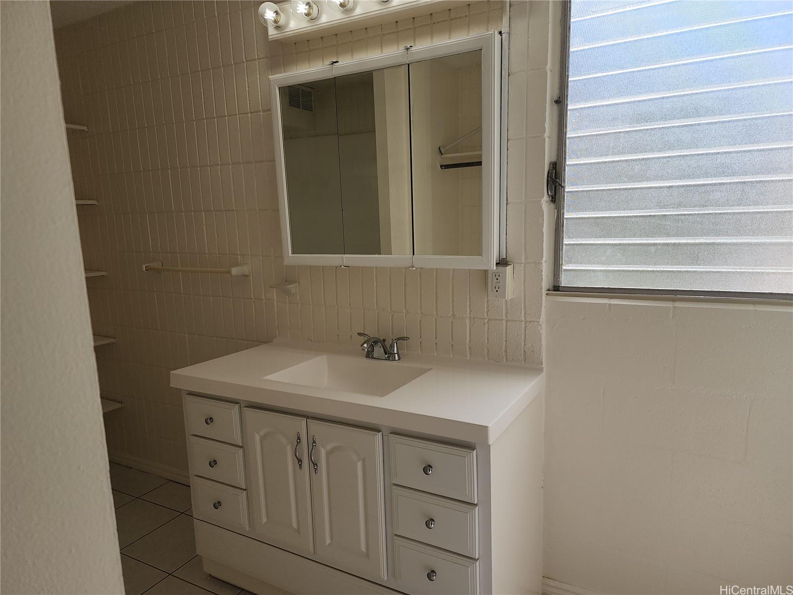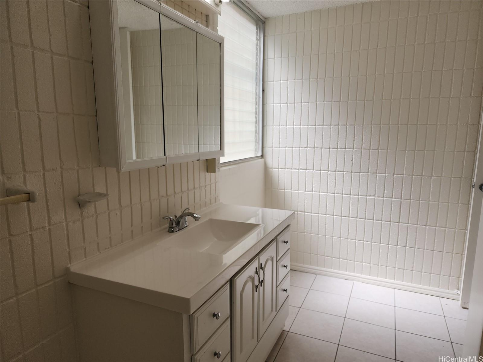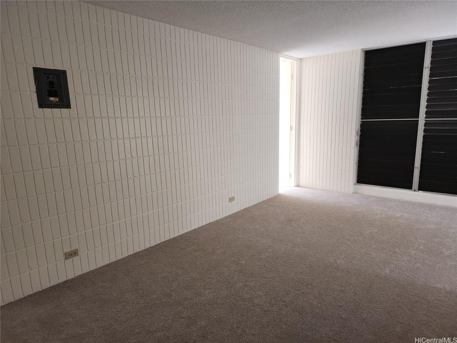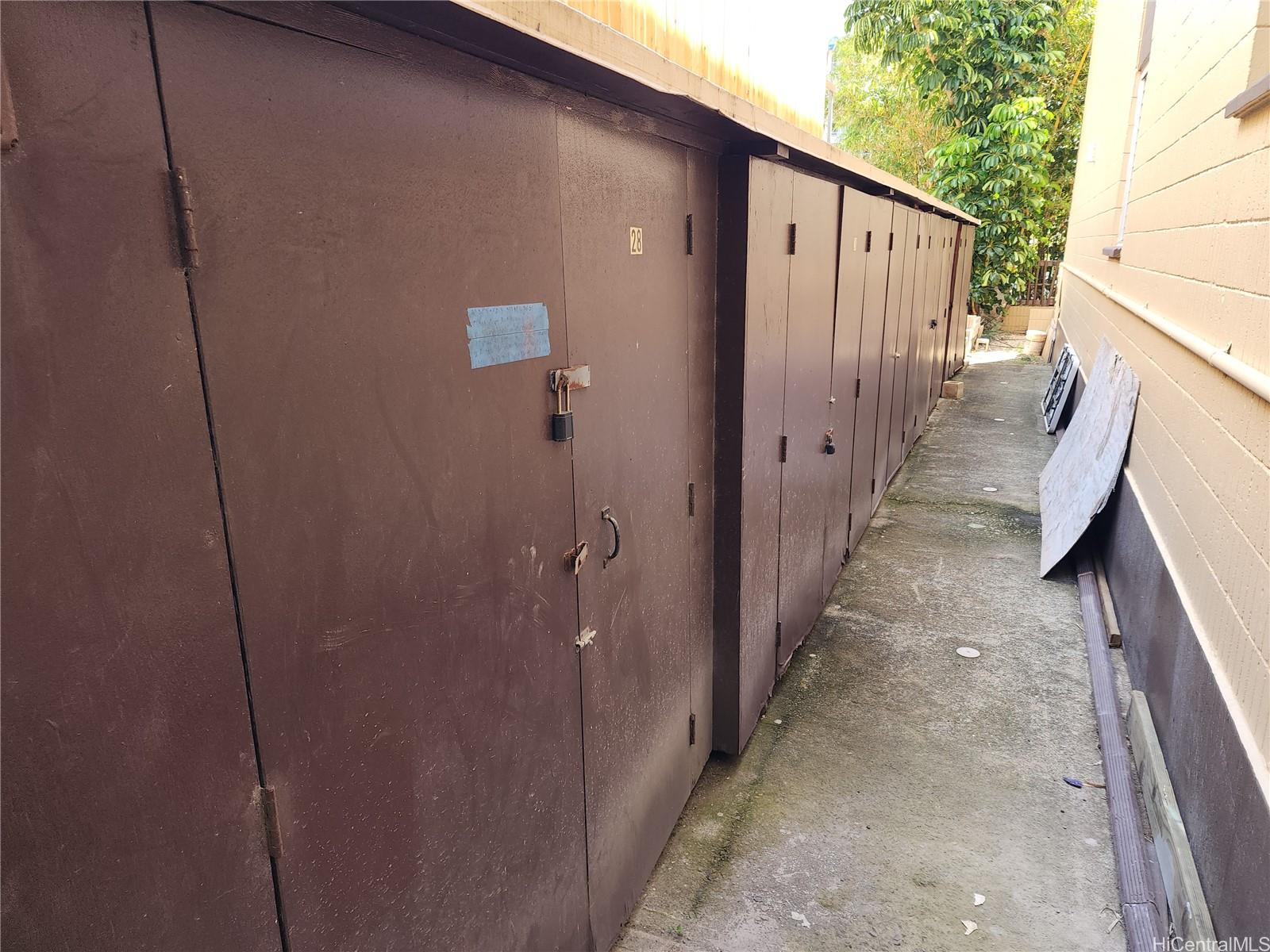 Corner unit with spacious exterior storage unit. Near entrance to freeway heading west and few minutes to downtown and Ala Moana Shopping Center. Unit repainted, new carpet, new bathroom sink, re-glazed tub/shower, credit $1,500.00 for range and refrigerator. Just move in. Community laundry on ground floor, Plumbing and electrical completed (verify).