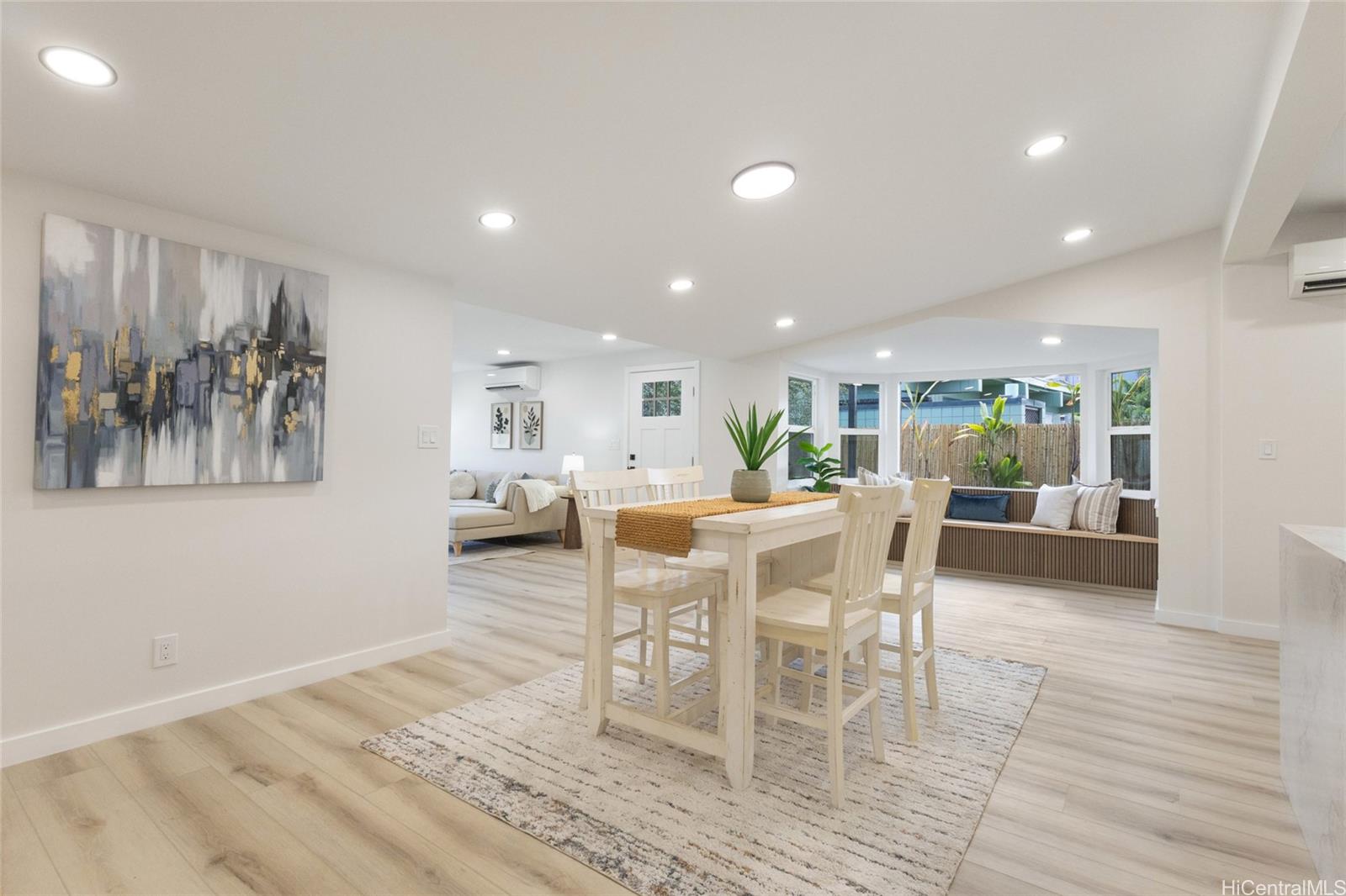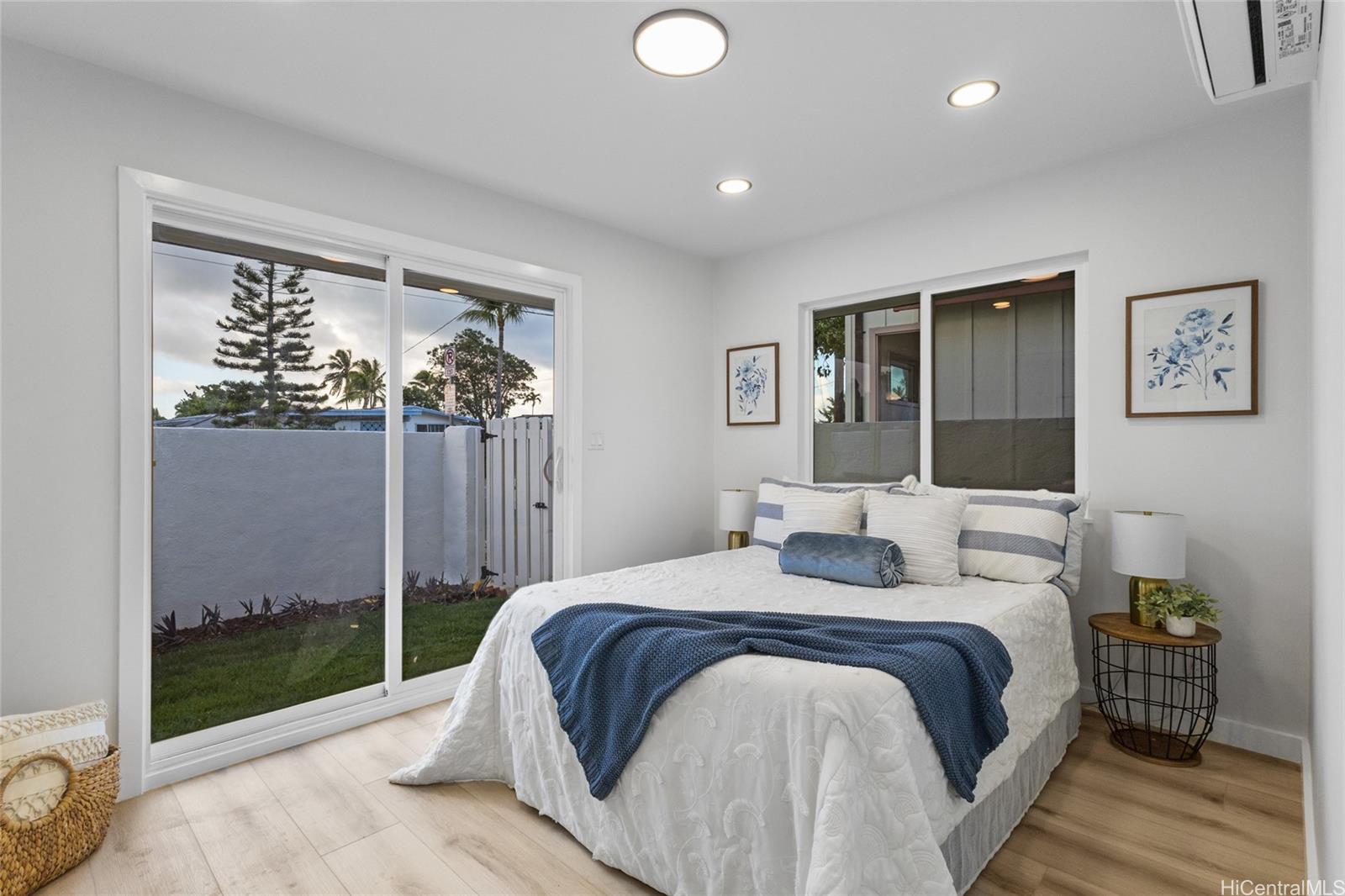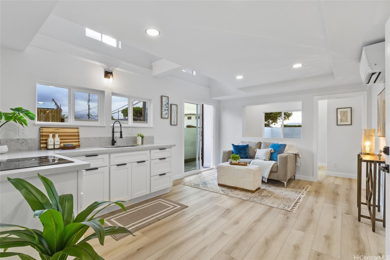 Recent upgrades include new laminate flooring, quartz countertops in kitchen and baths, walk-in tiled showers, and a bright open kitchen with sliding glass doors opening to a large backyard—ideal for entertaining or relaxing. Mitsubishi split AC systems provide quiet, energy-efficient comfort throughout.
