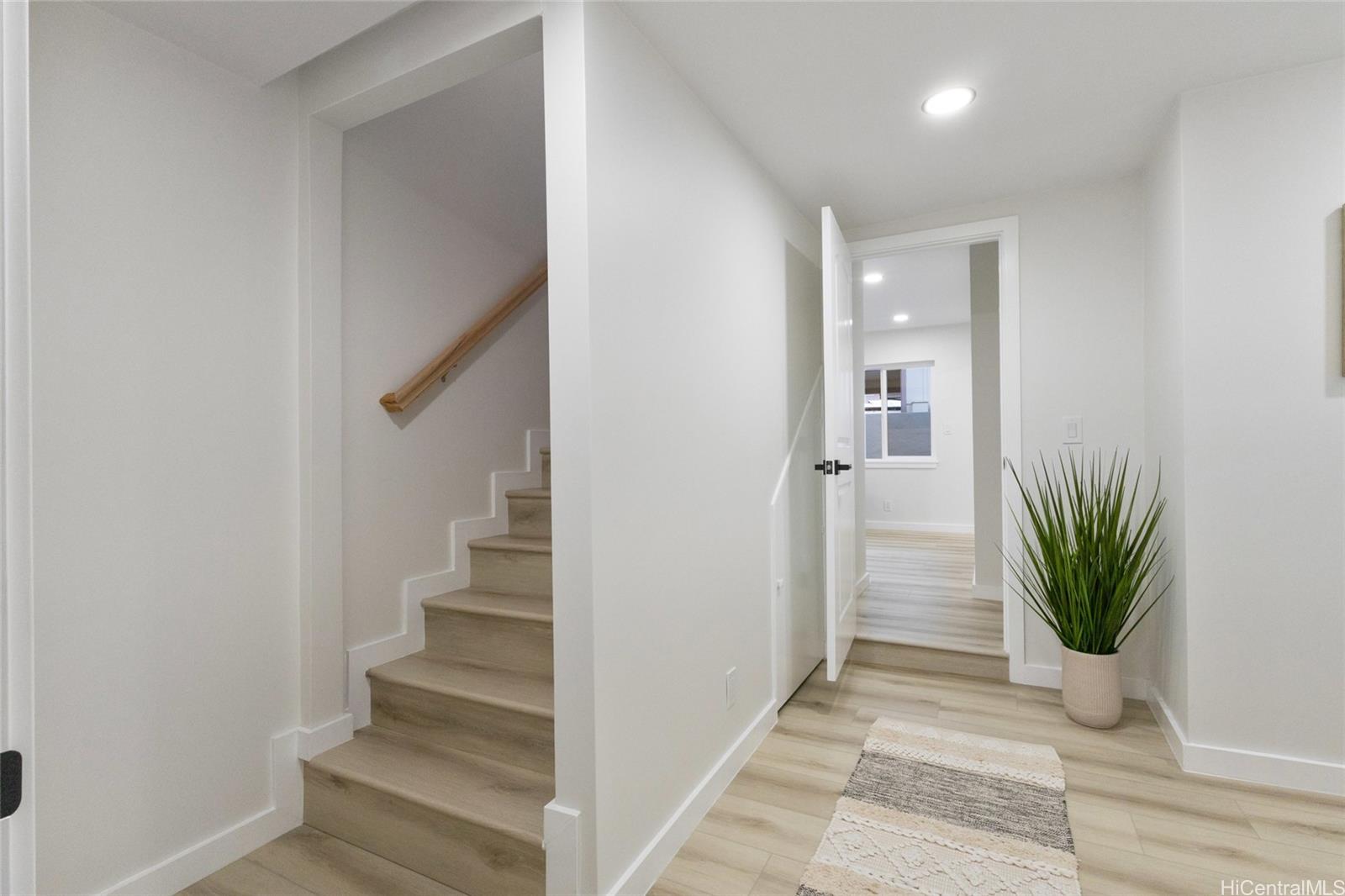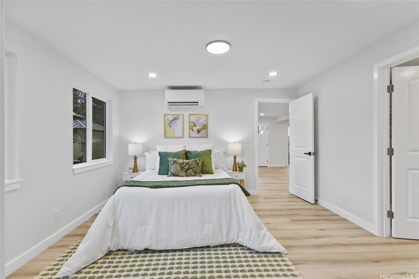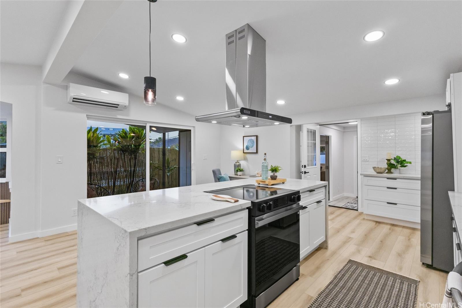 Recent upgrades include new laminate flooring, quartz countertops in kitchen and baths, walk-in tiled showers, and a bright open kitchen with sliding glass doors opening to a large backyard—ideal for entertaining or relaxing. Mitsubishi split AC systems provide quiet, energy-efficient comfort throughout.