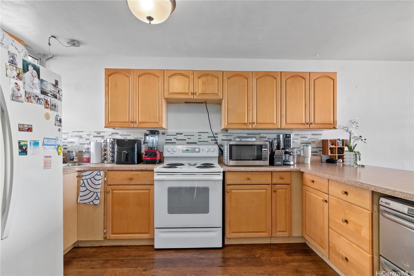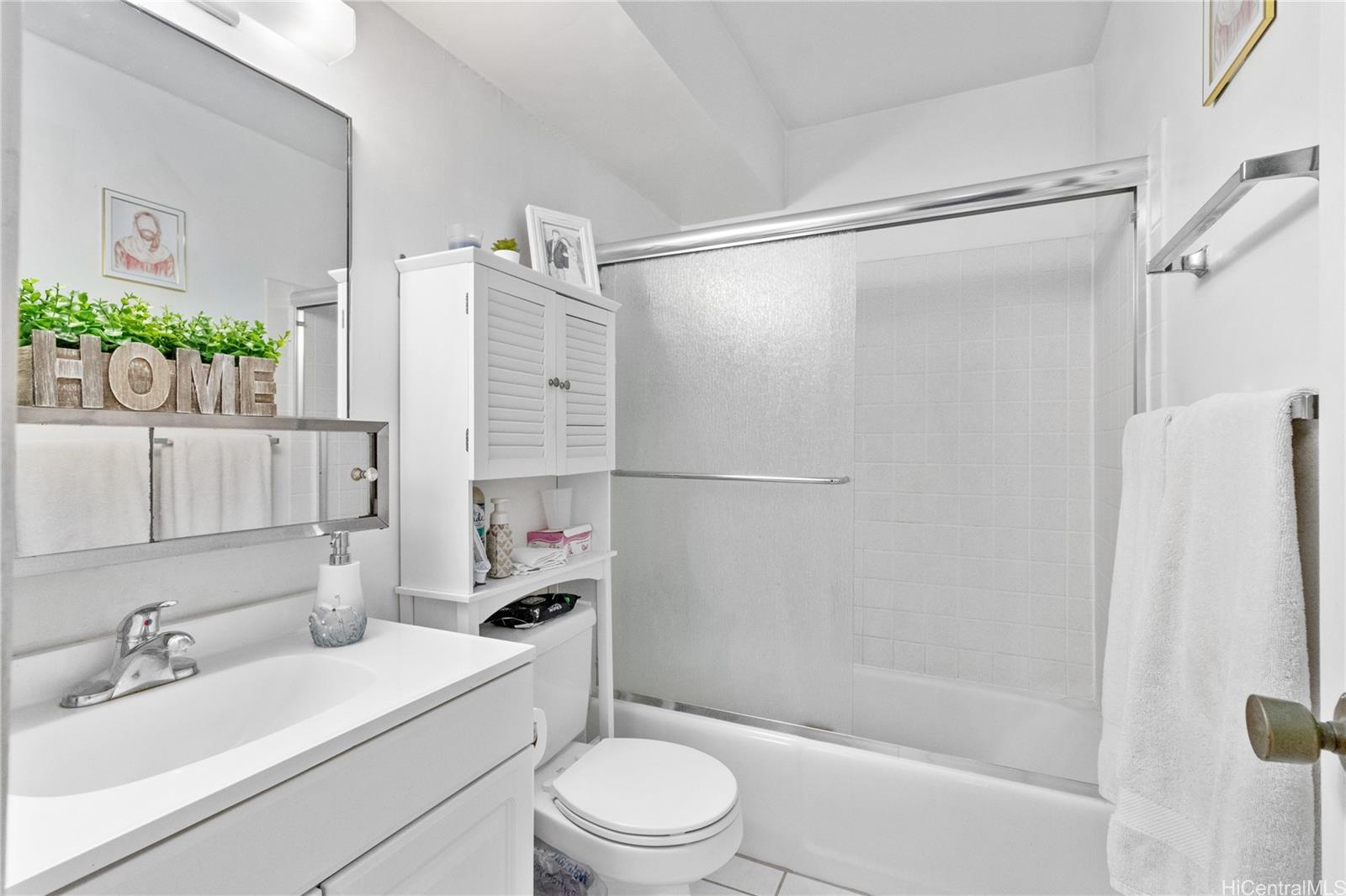 Top-Floor Unit with Breathtaking Ocean Views! This bright, airy top-floor unit offers excellent cross-ventilation and a spacious layout. The large, usable lanai is perfect for enjoying the stunning Diamond Head and Ocean Views. Side-by-side washer and dryer in-unit for added convenience. Moanalua High School, a highly desirable school, is literally next door. Prime location with easy access to Tripler Hospital, Pearl Harbor, and the airport. Sale subject to tenant lease ending June 2025.