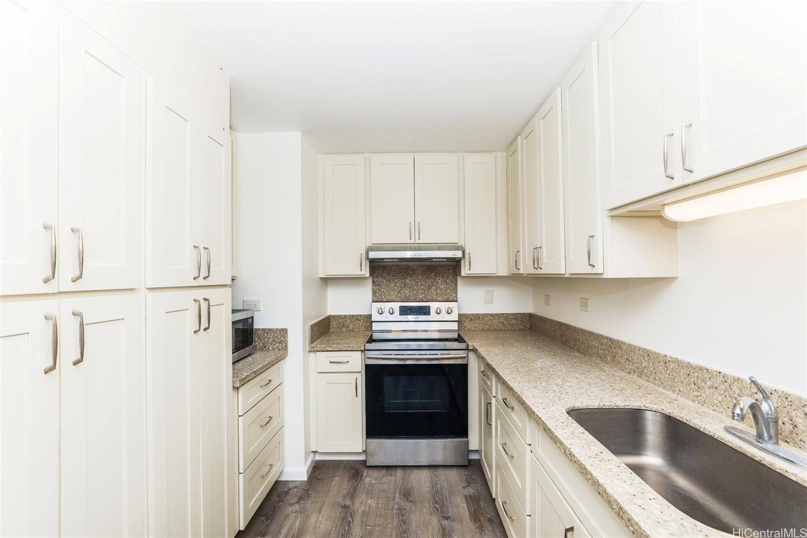 Newly renovated, large 3-bedroom unit on the cool side of the building with two full baths. New flooring, paint, kitchen, and appliances. Central air conditioning was installed in all rooms in 2019, and building plumbing was completely replaced in 2019. Two parking spaces are included, one covered. Great location, walking distance from Ala Moana Center, Walmart/Sam's Club, and Don Quijote. Secure building with guest parking, fitness center, and swimming pool.