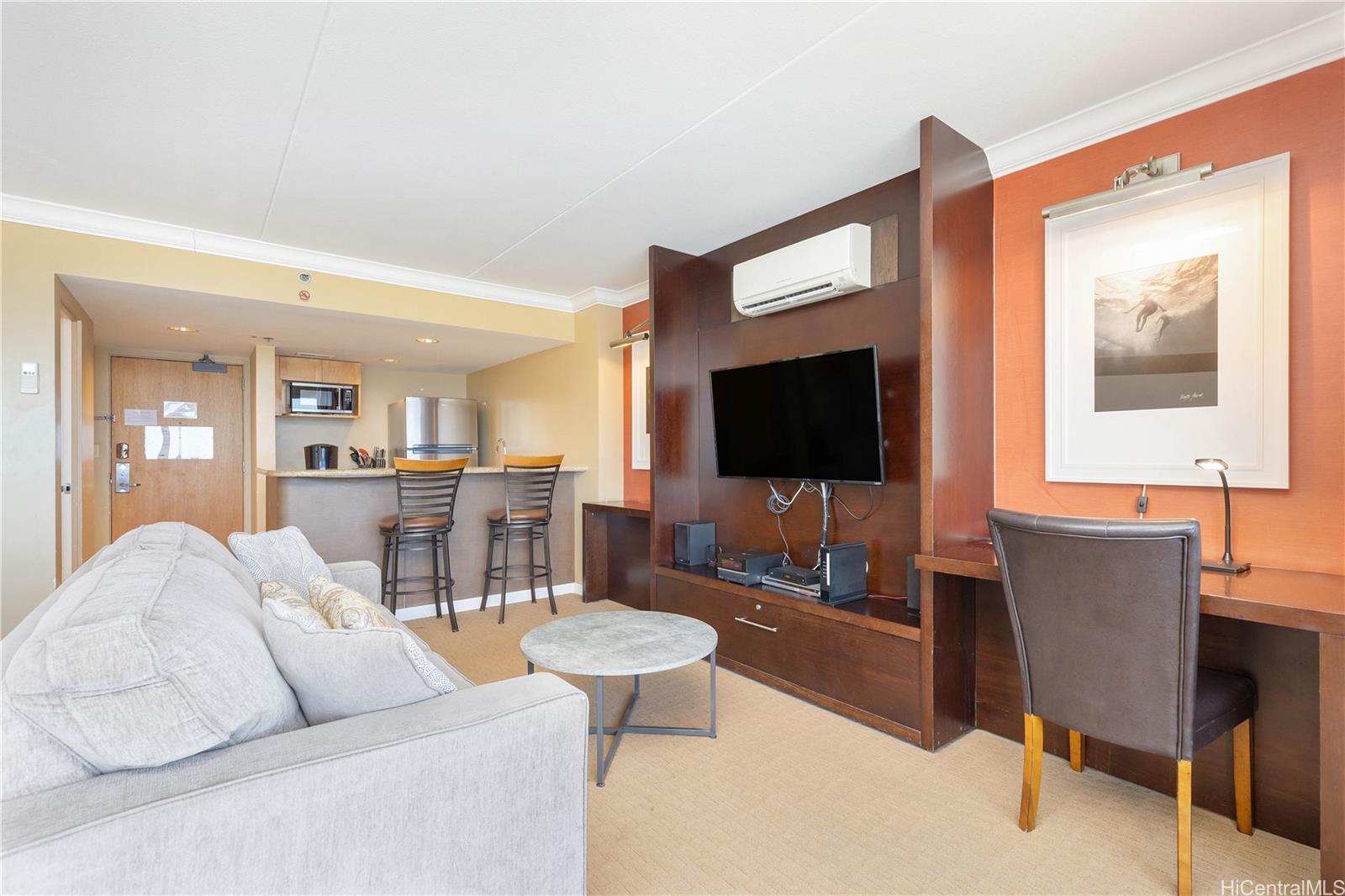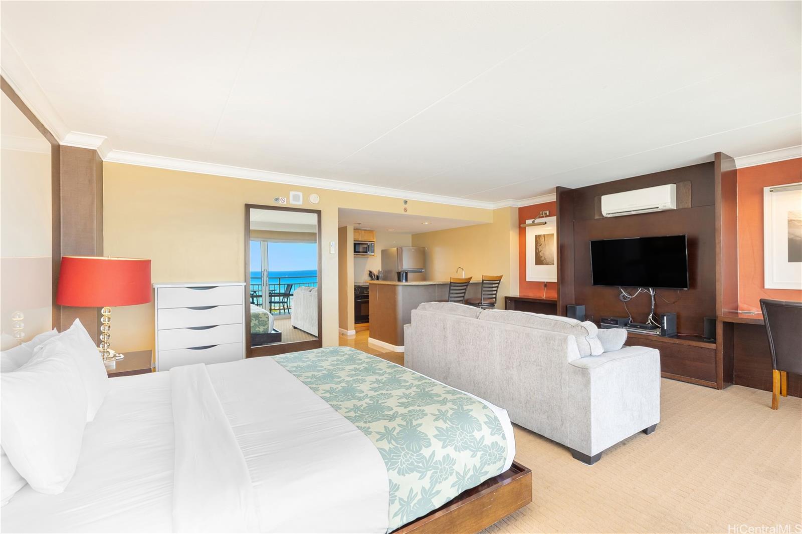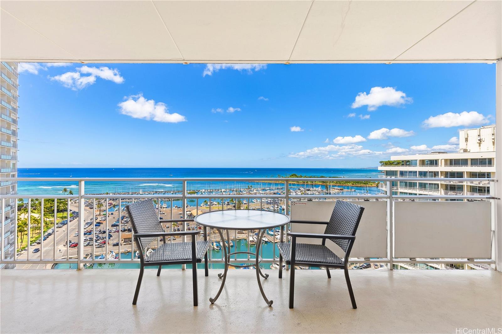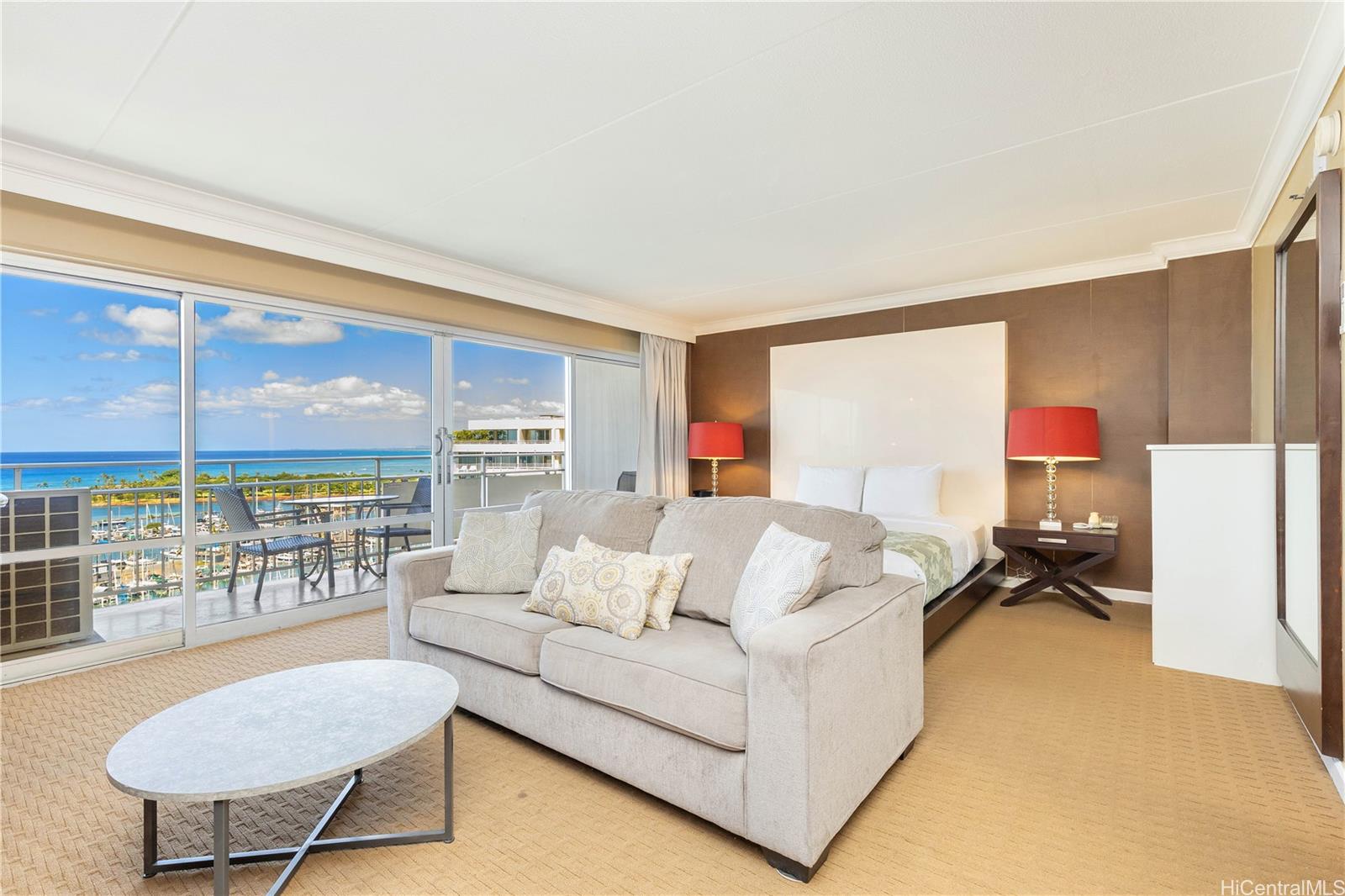 16階に位置する1ベッドルームの物件。オーシャンビューとヨットハーバーの眺望をお楽しみいただけます。敷地内には常駐管理人オフィスがあり、セキュリティも万全です。プール、共用ランドリーエリア、ショップ、レストランなどのアメニティも充実しています。ワイキキビーチとアラモアナへは徒歩圏内です。